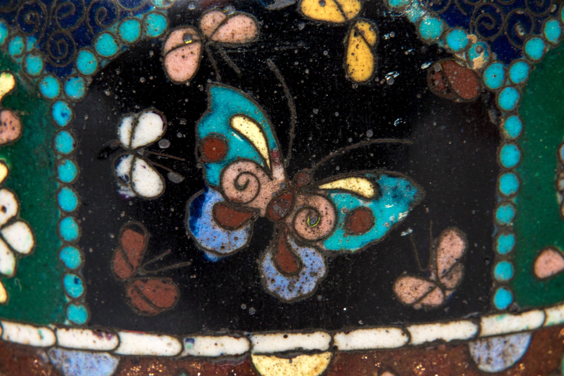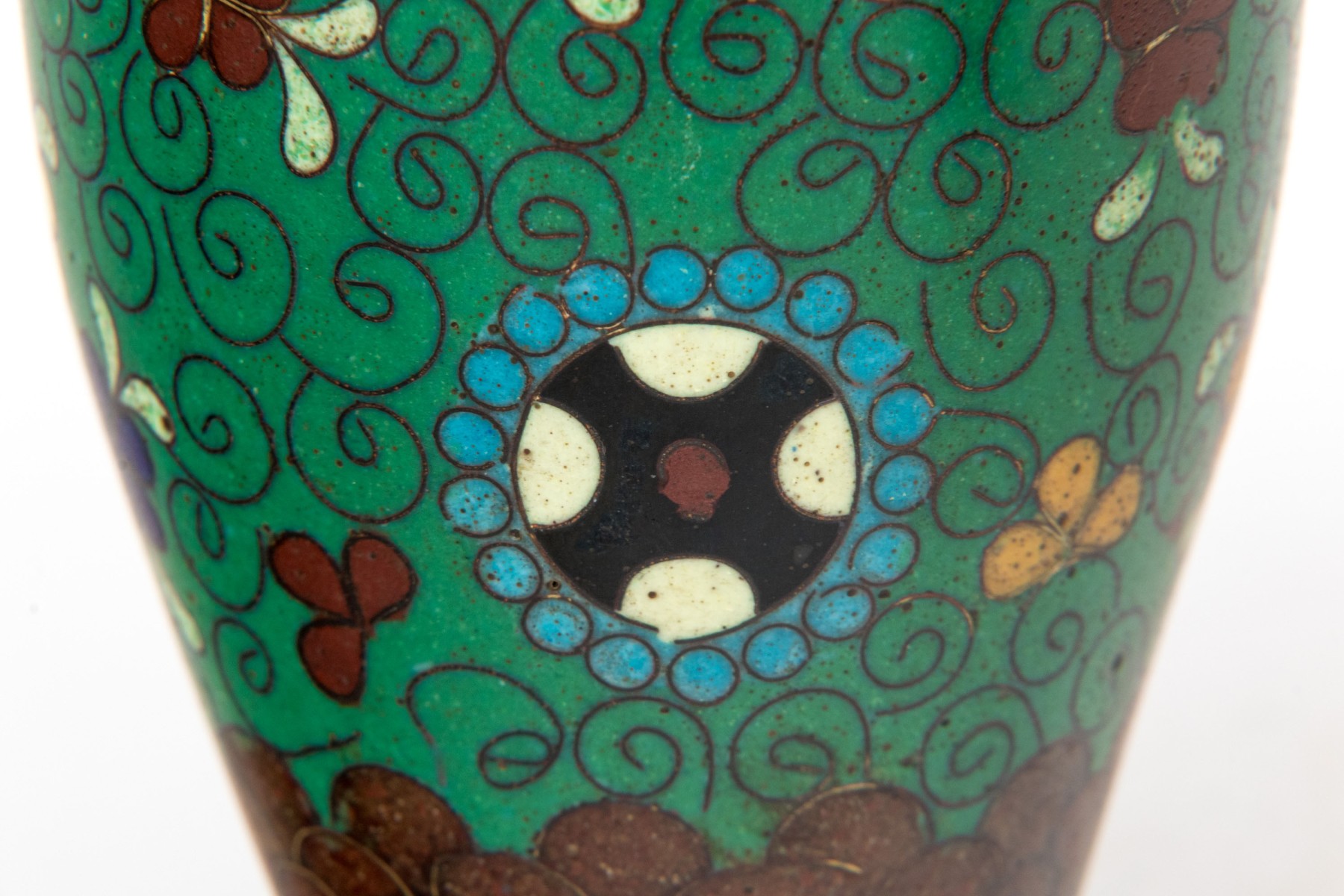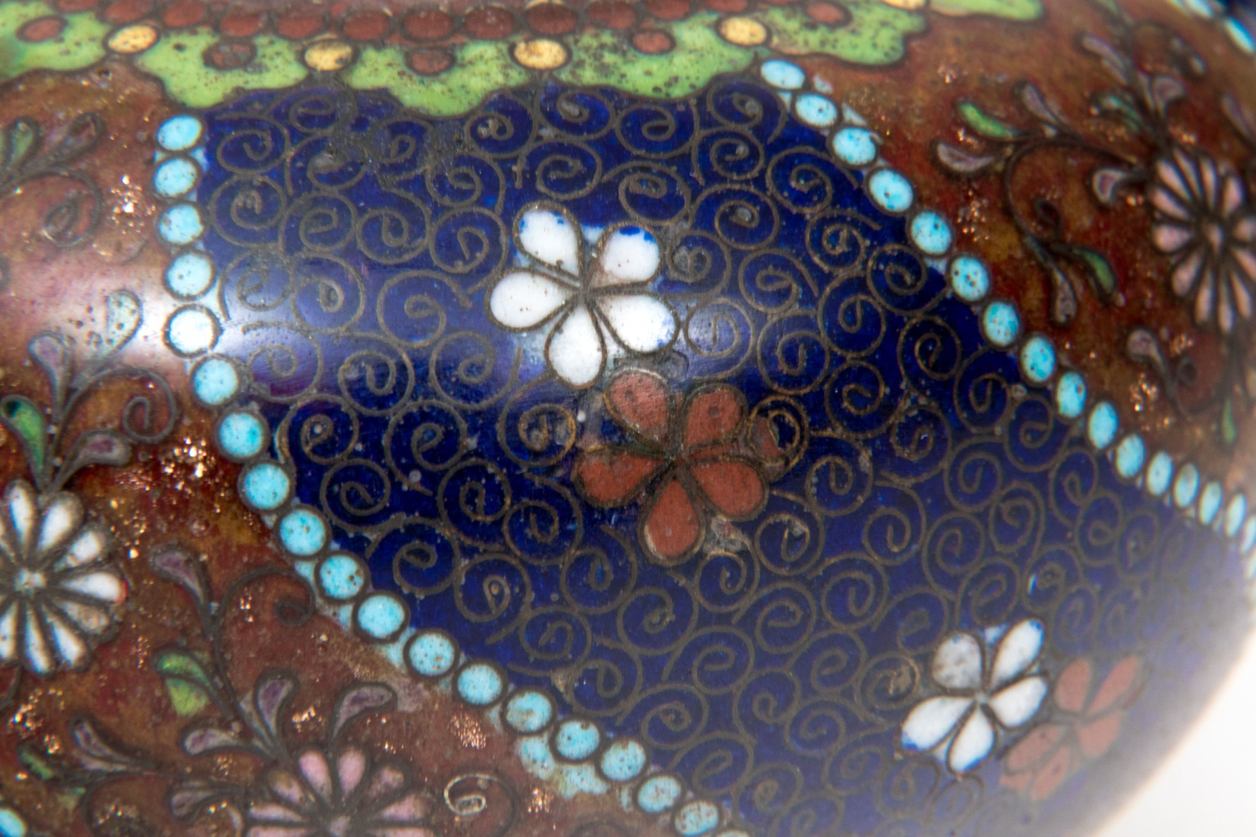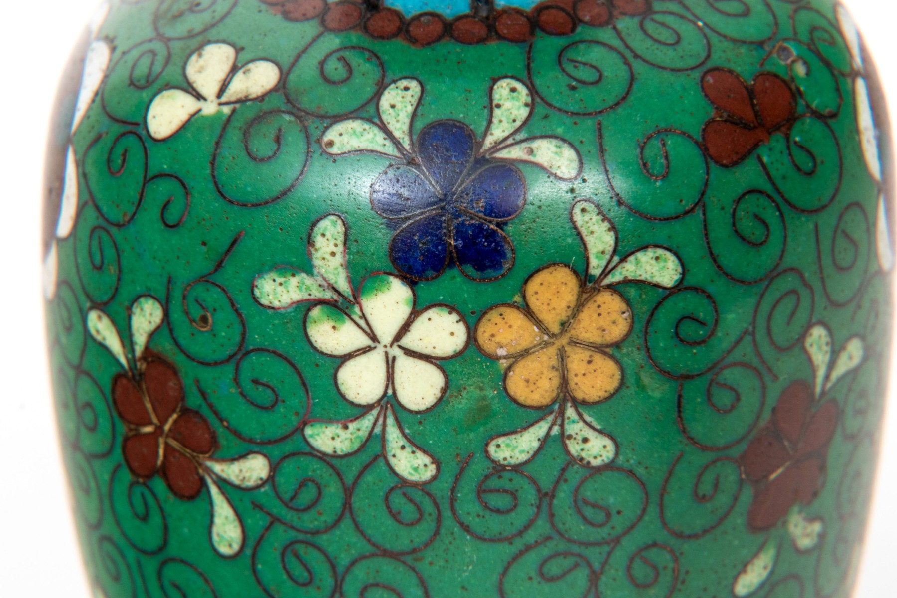 Lot of four beautiful diminutive vintage Japanese and Chinese cloisonne pieces, in multi colored tones