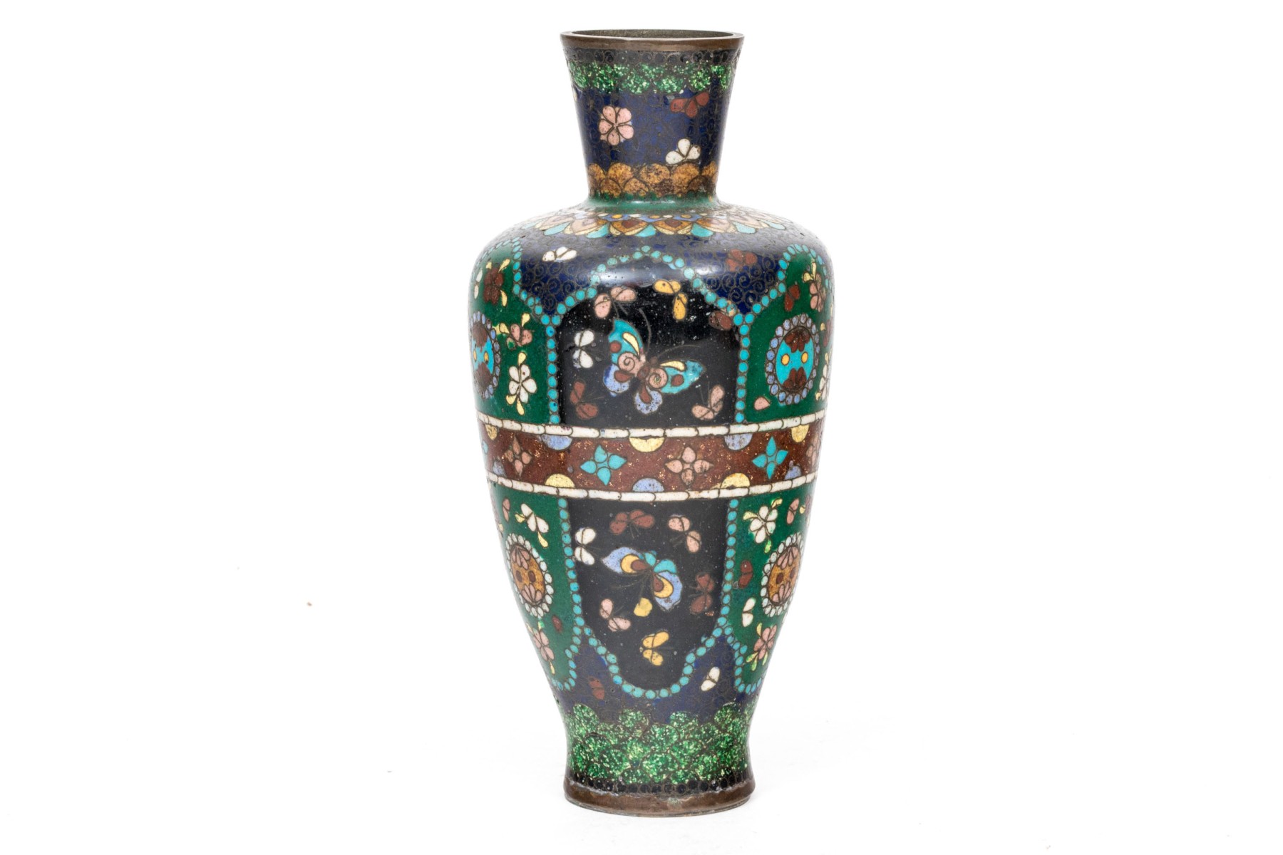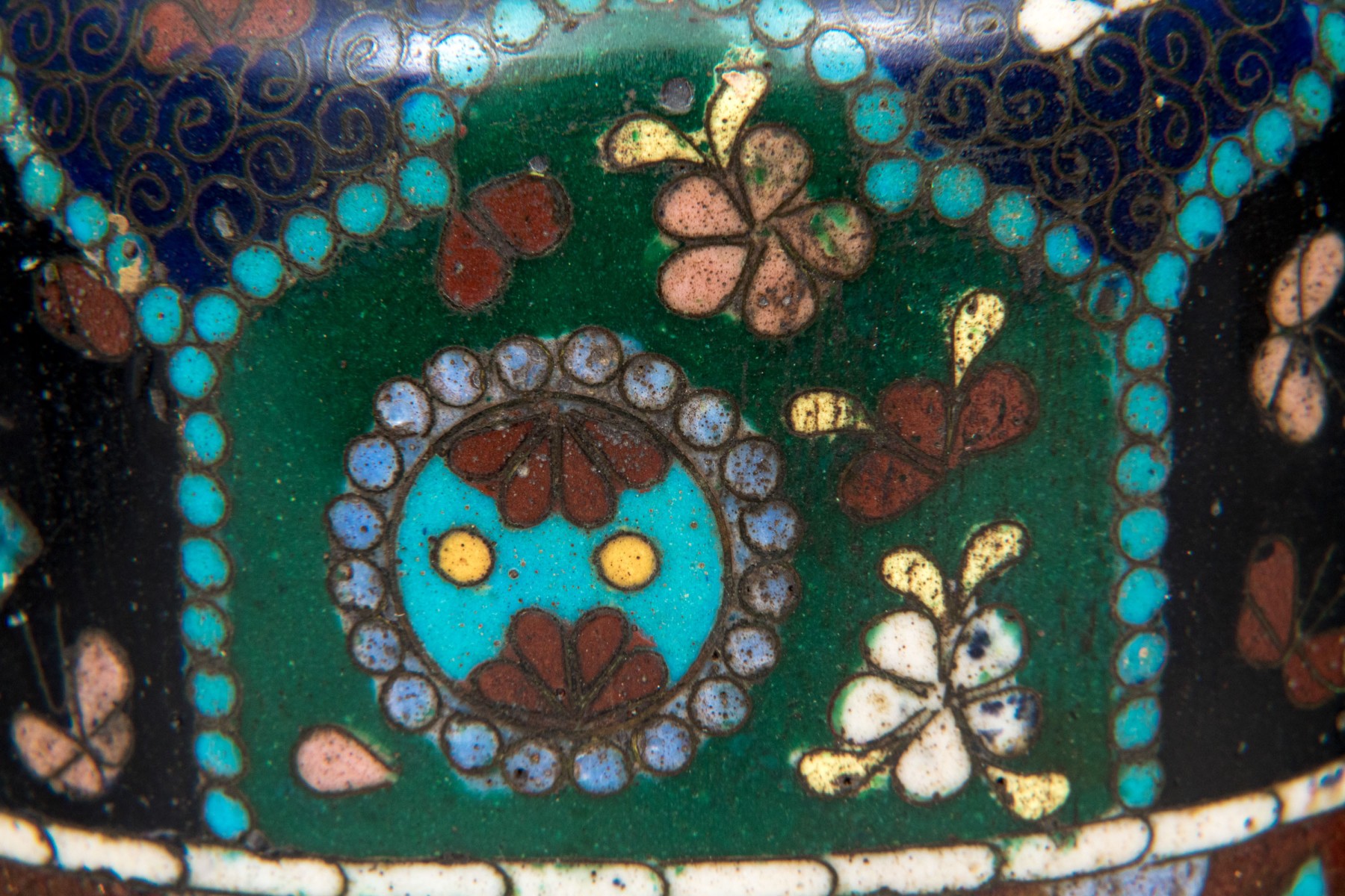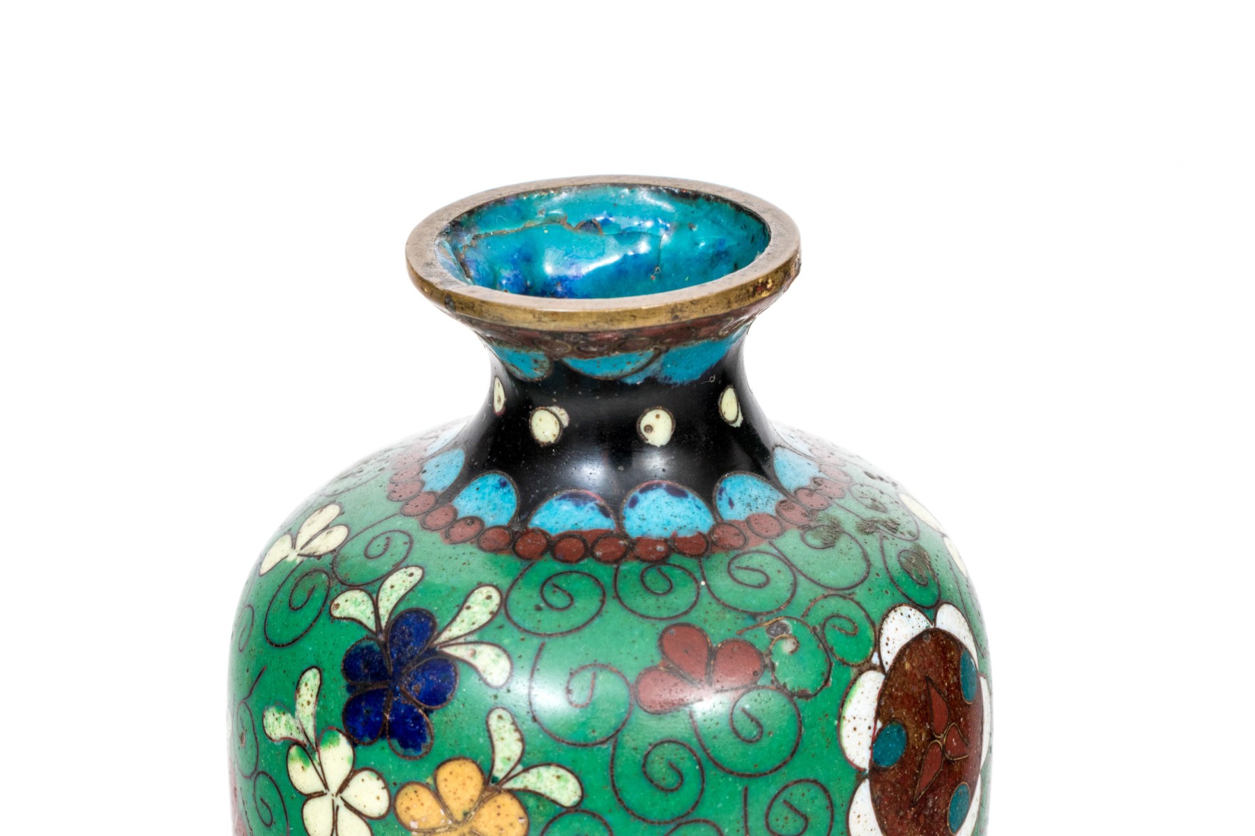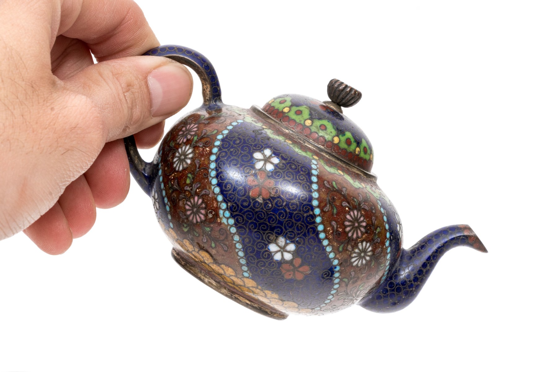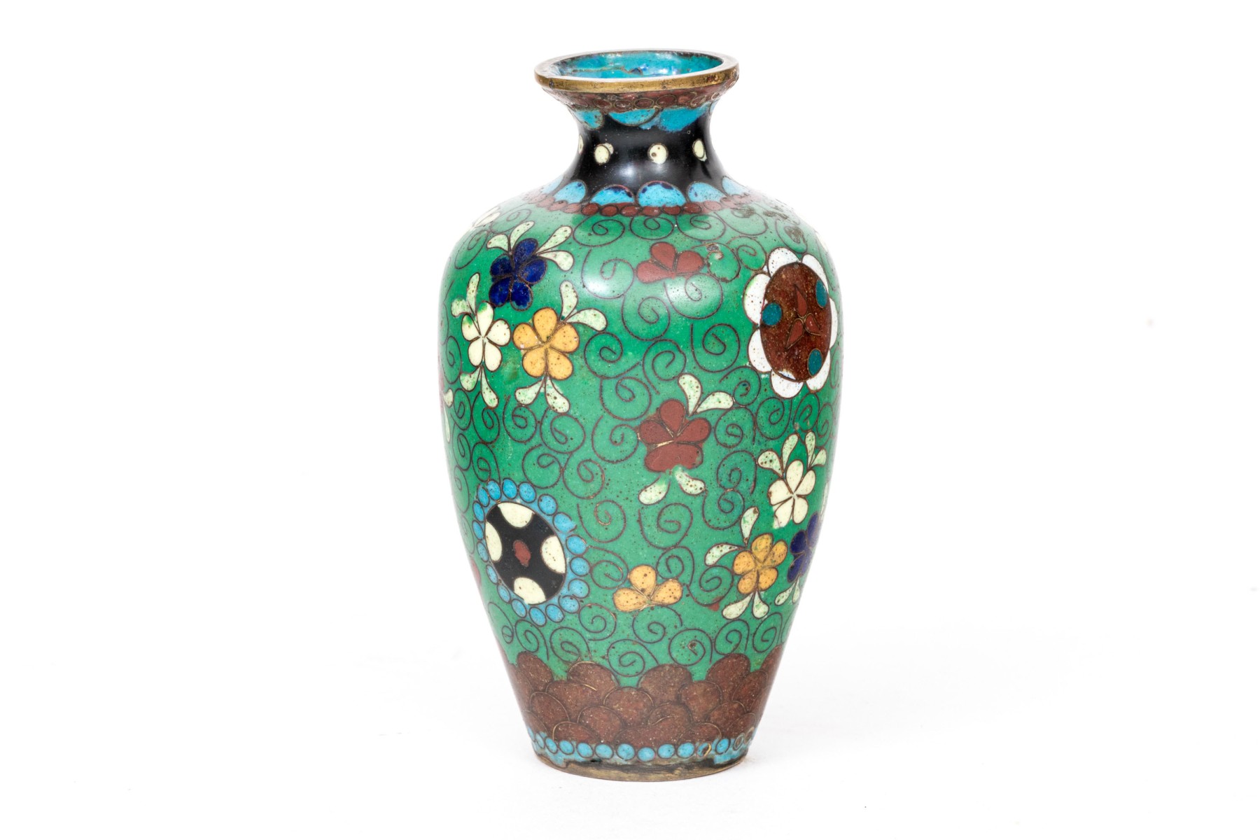 Lot of four beautiful diminutive vintage Japanese and Chinese cloisonne pieces, in multi colored tones