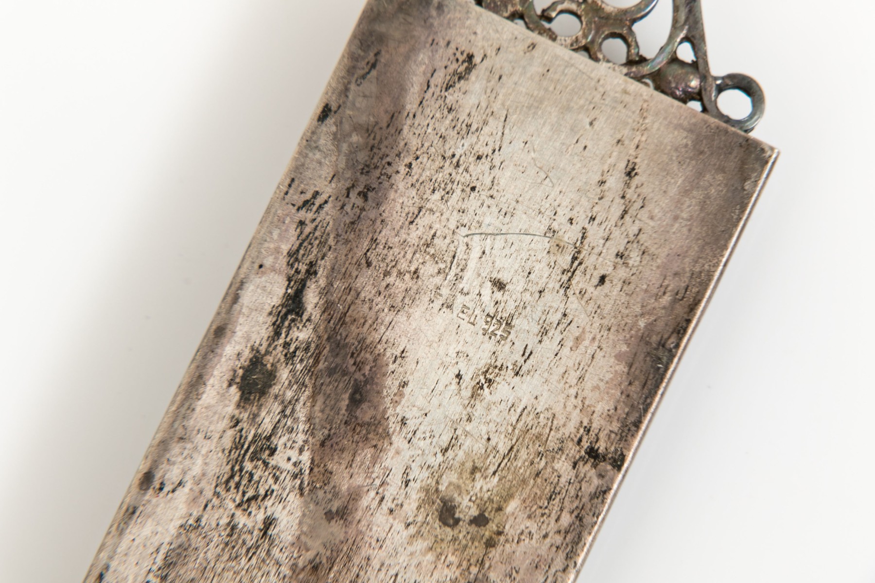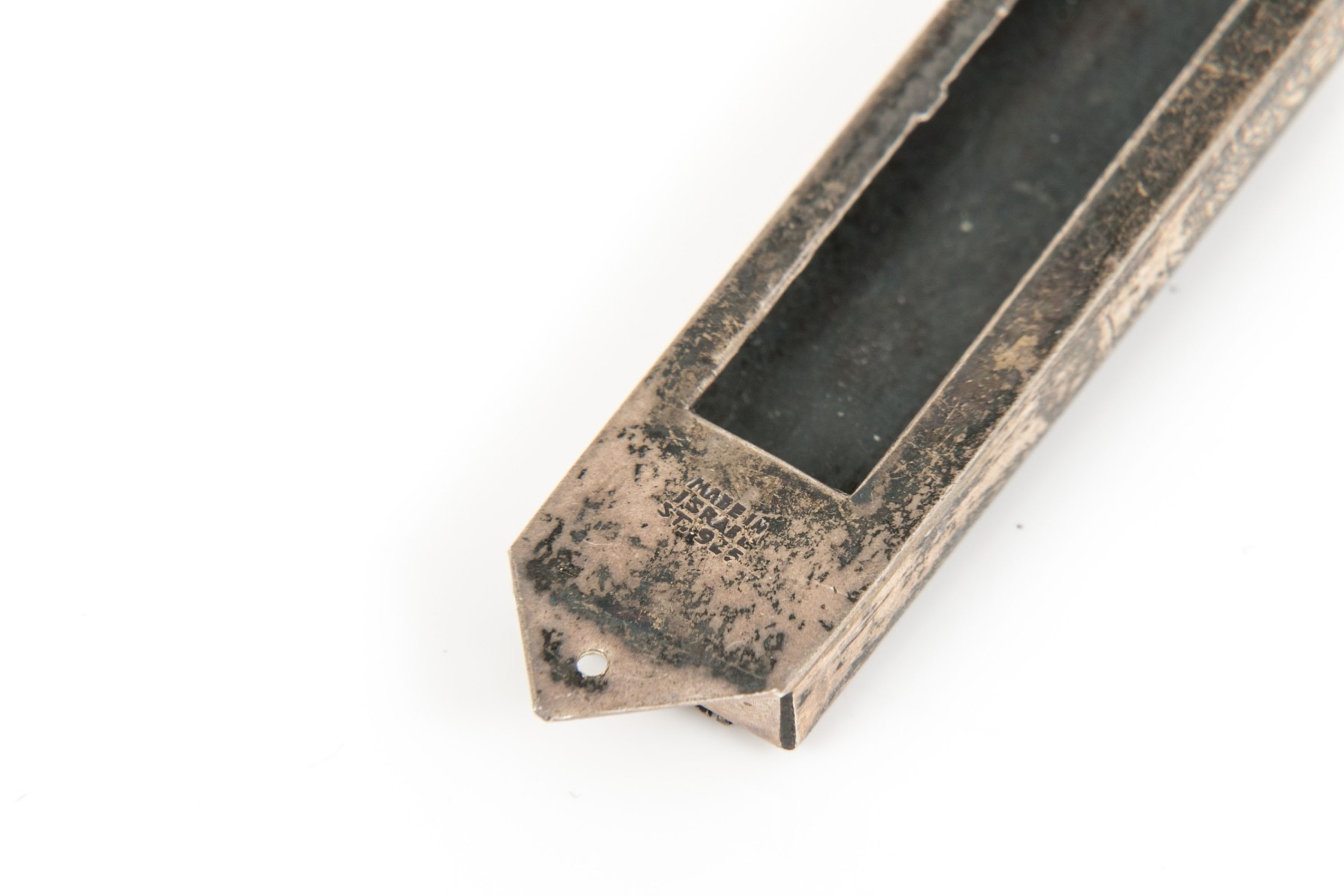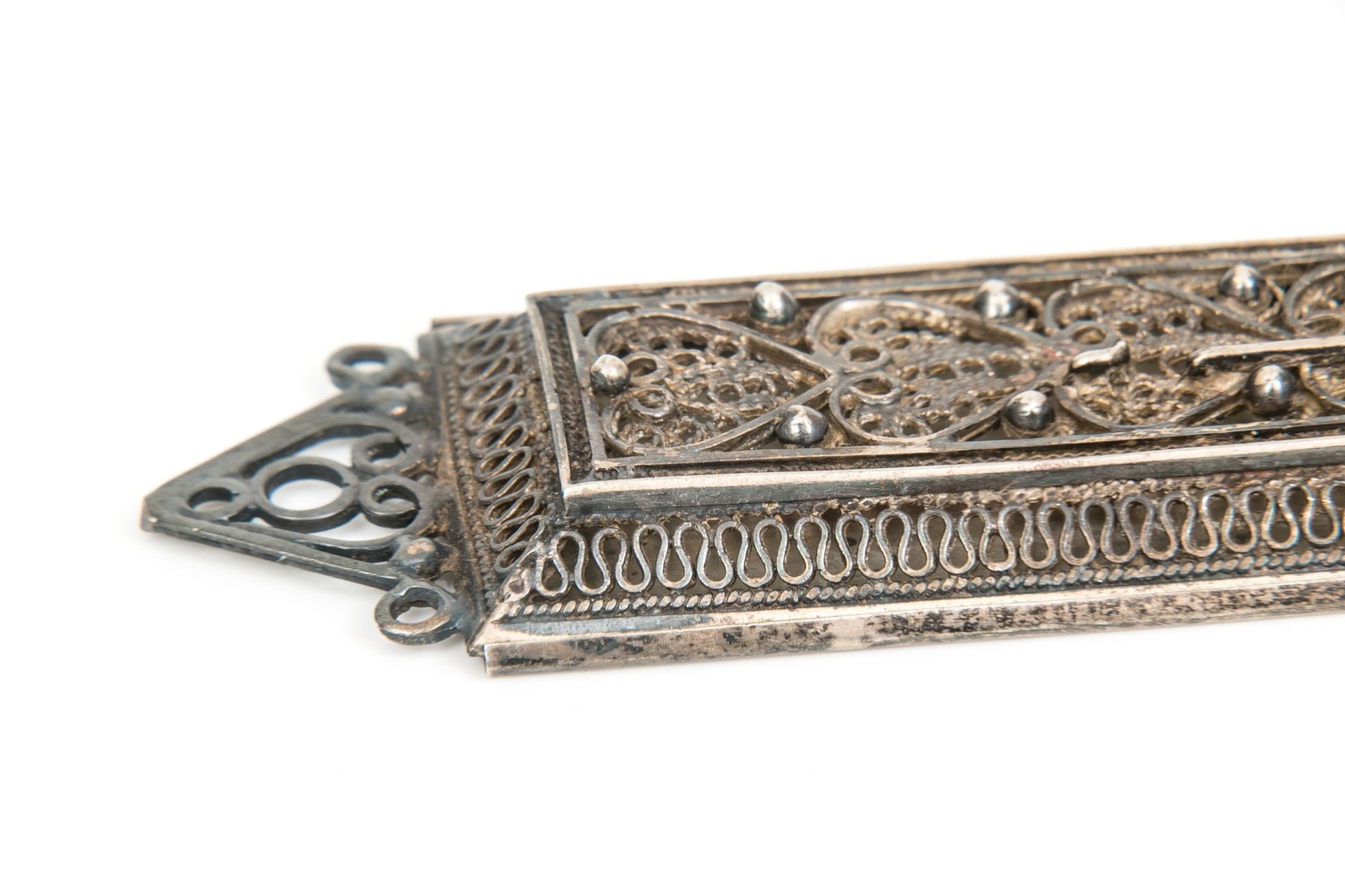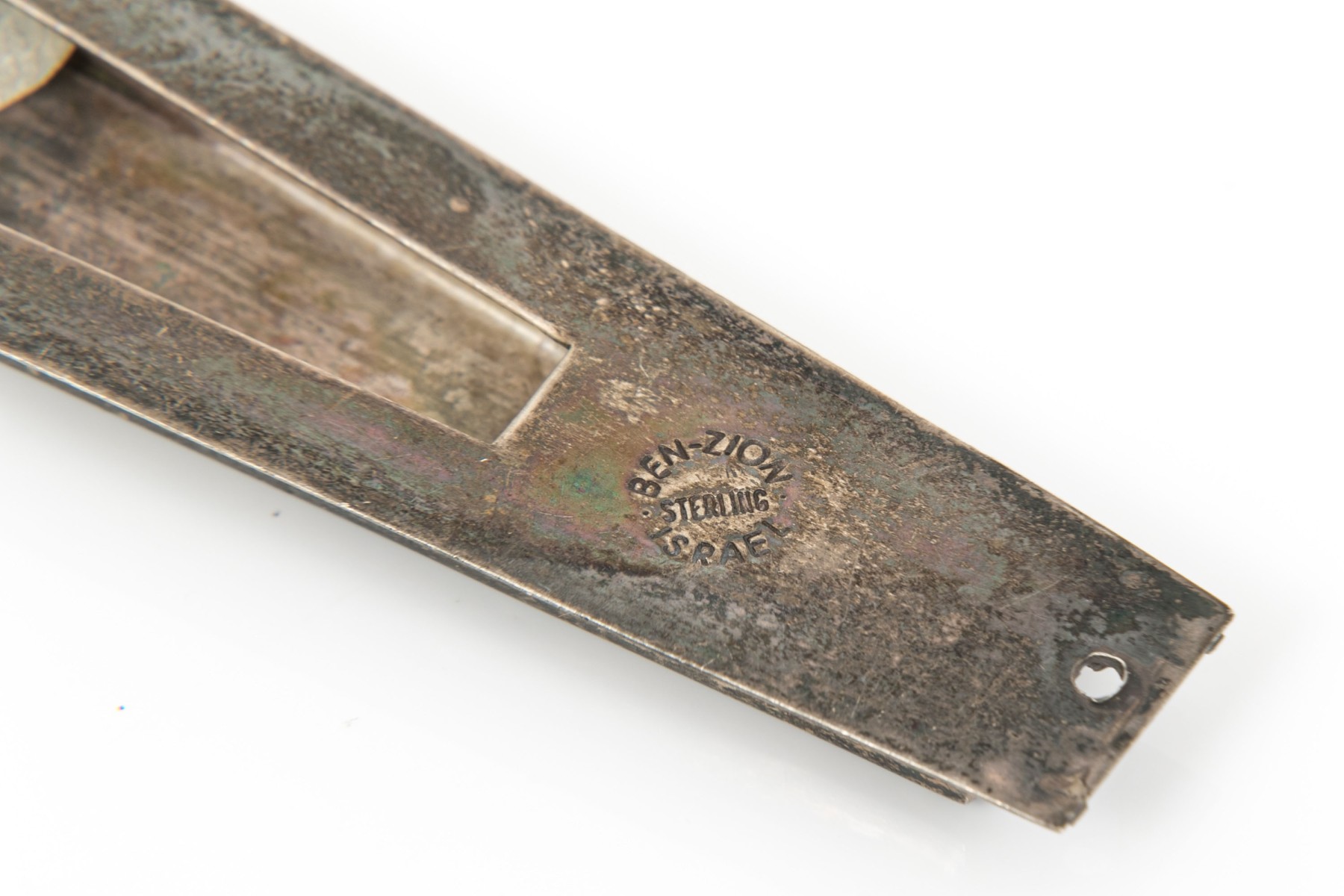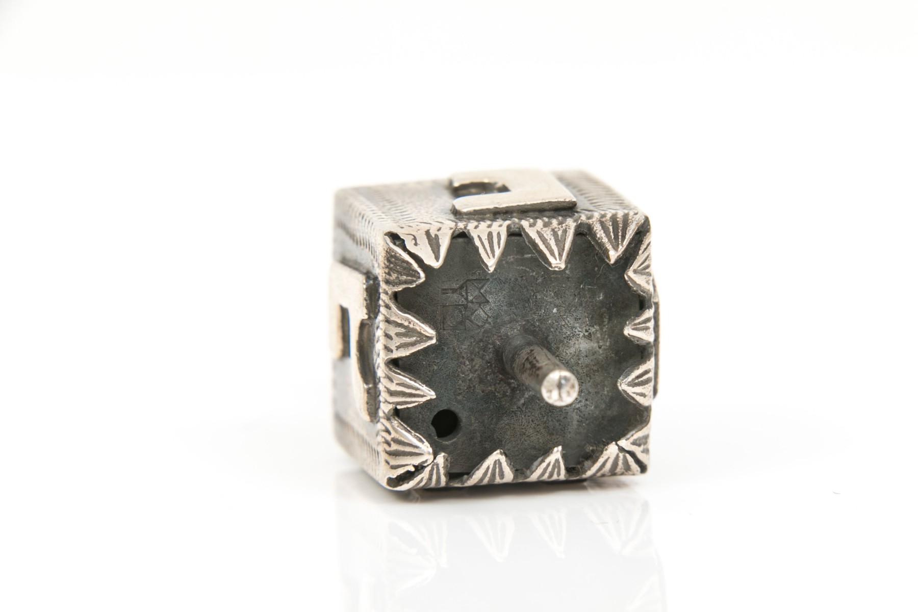 Lot of four Judaica pieces, including two sterling mezuzahs, one 800 silver mezuzah, and a dreidal