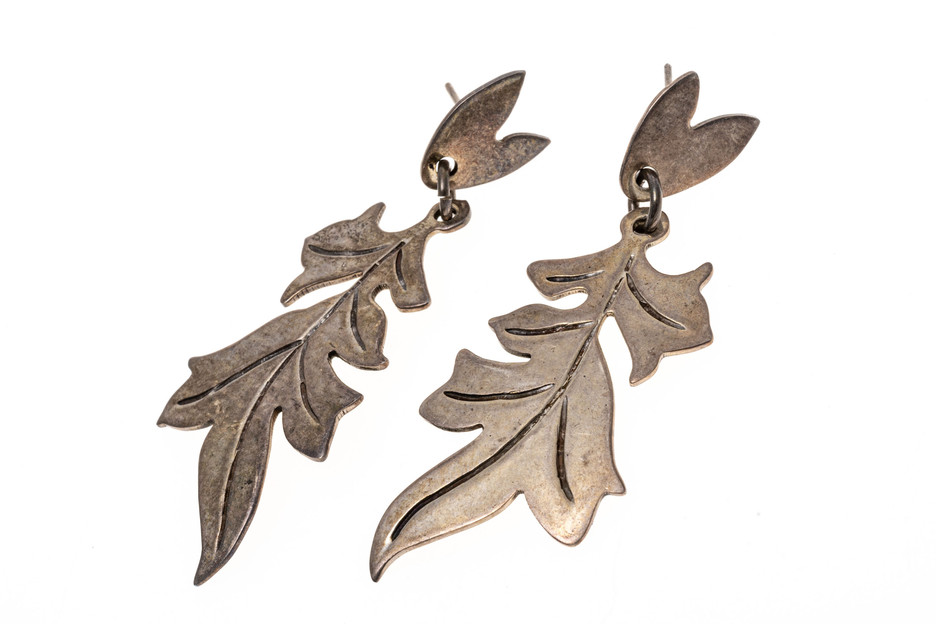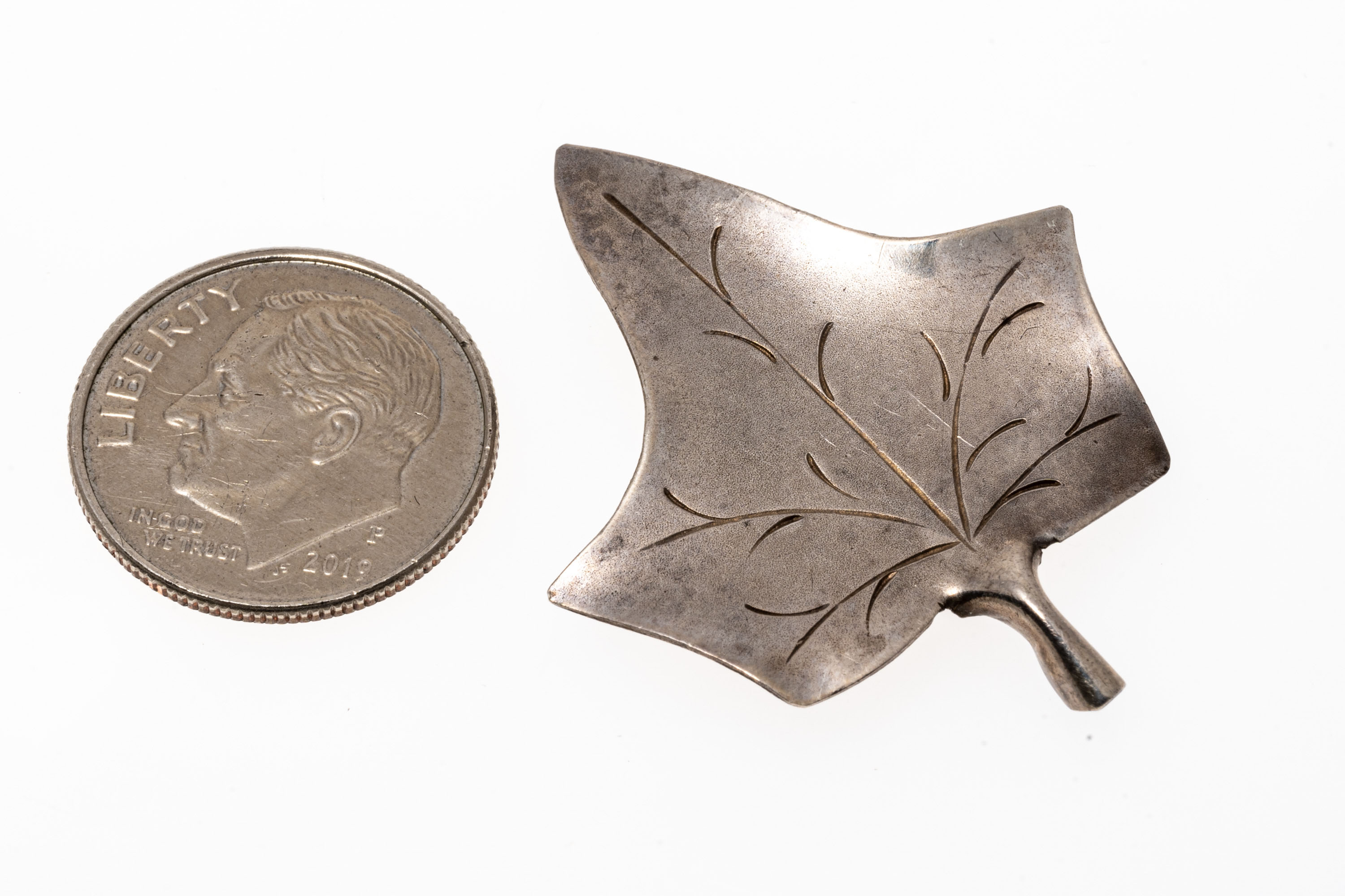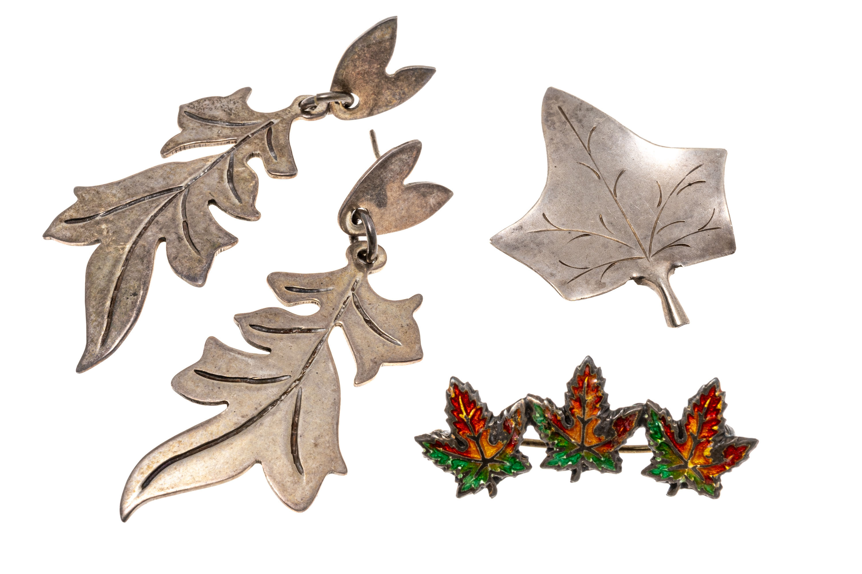 Lot of handsome assorted sterling silver leaf motif jewelry pieces, including a Stuart Nye signed pin