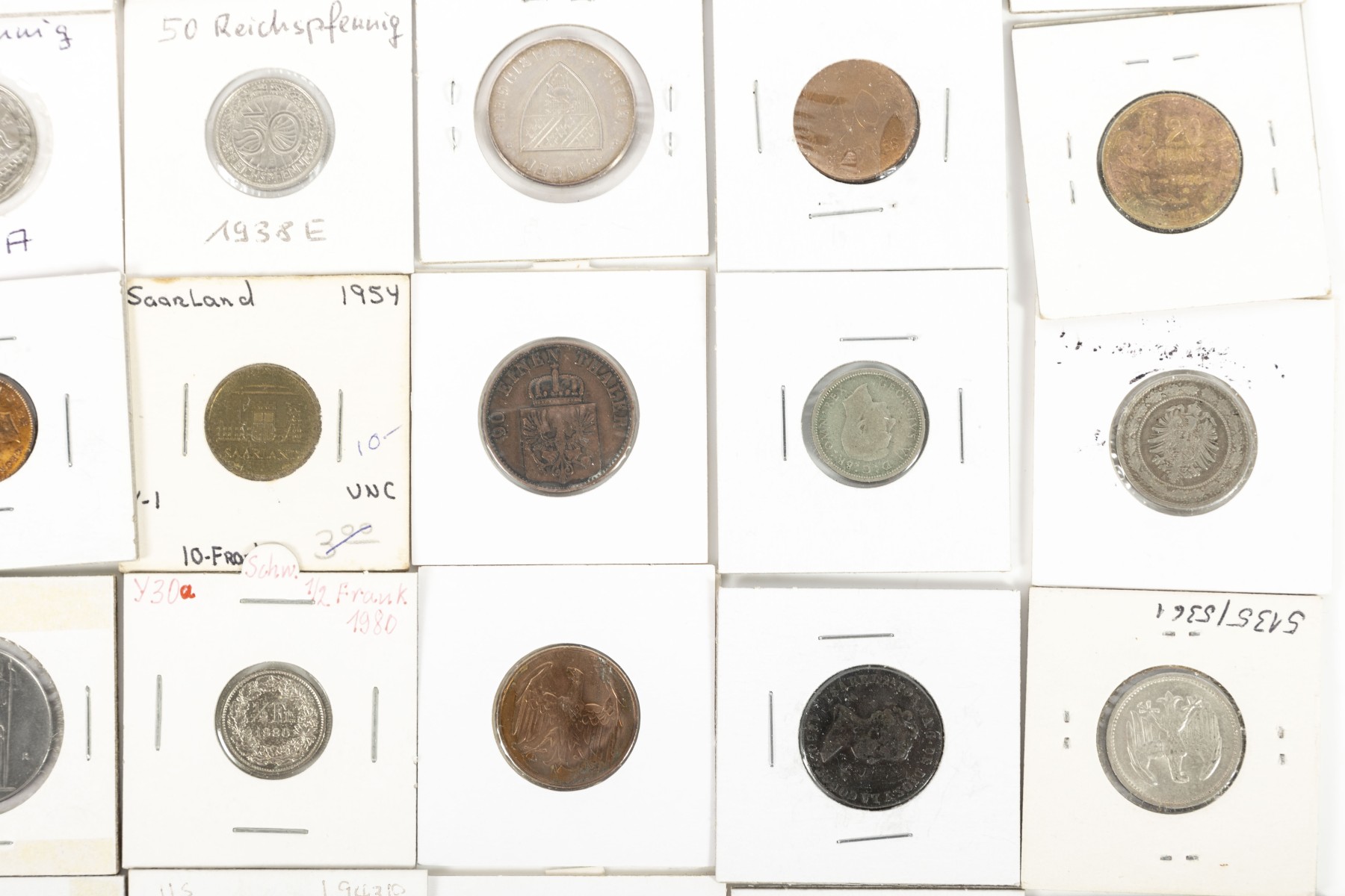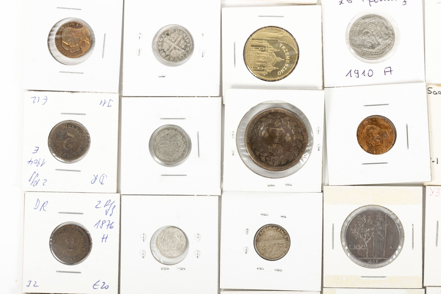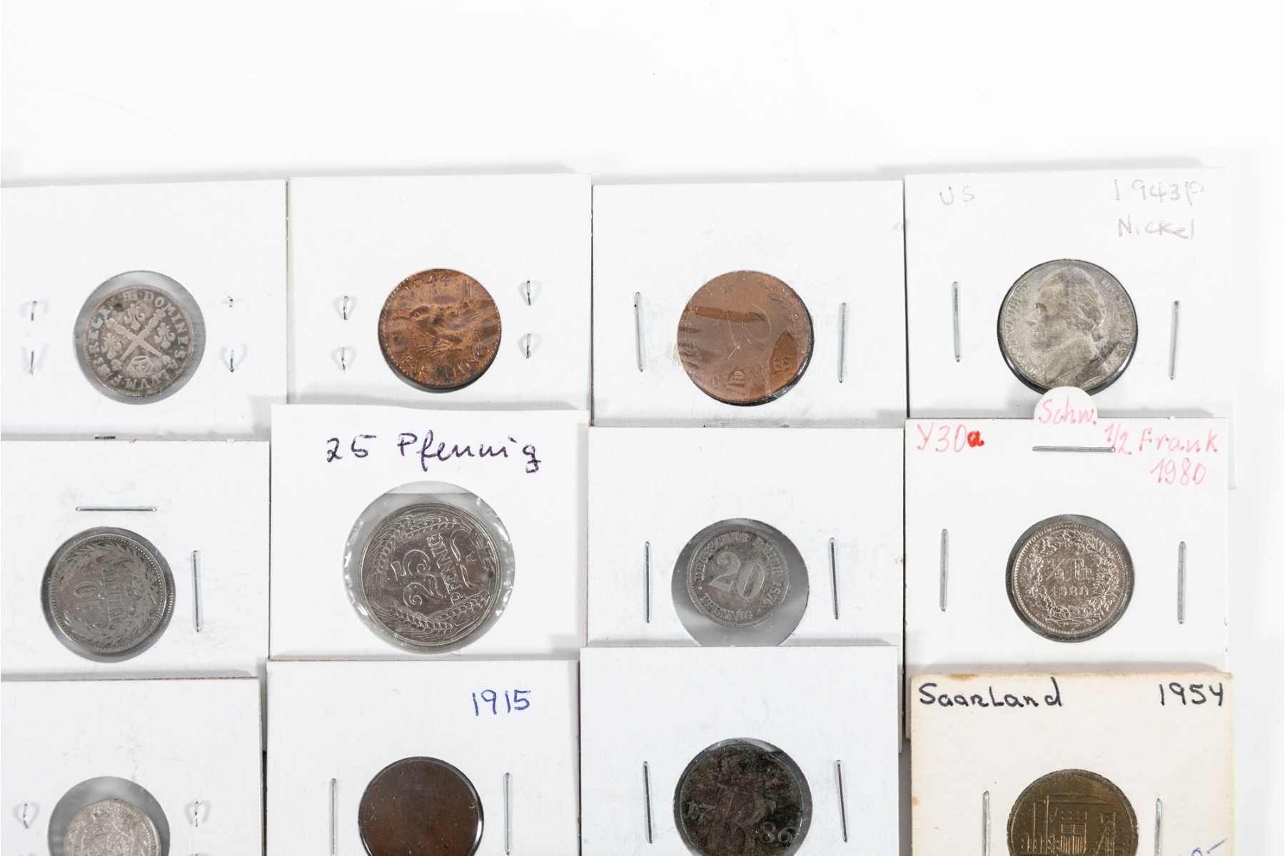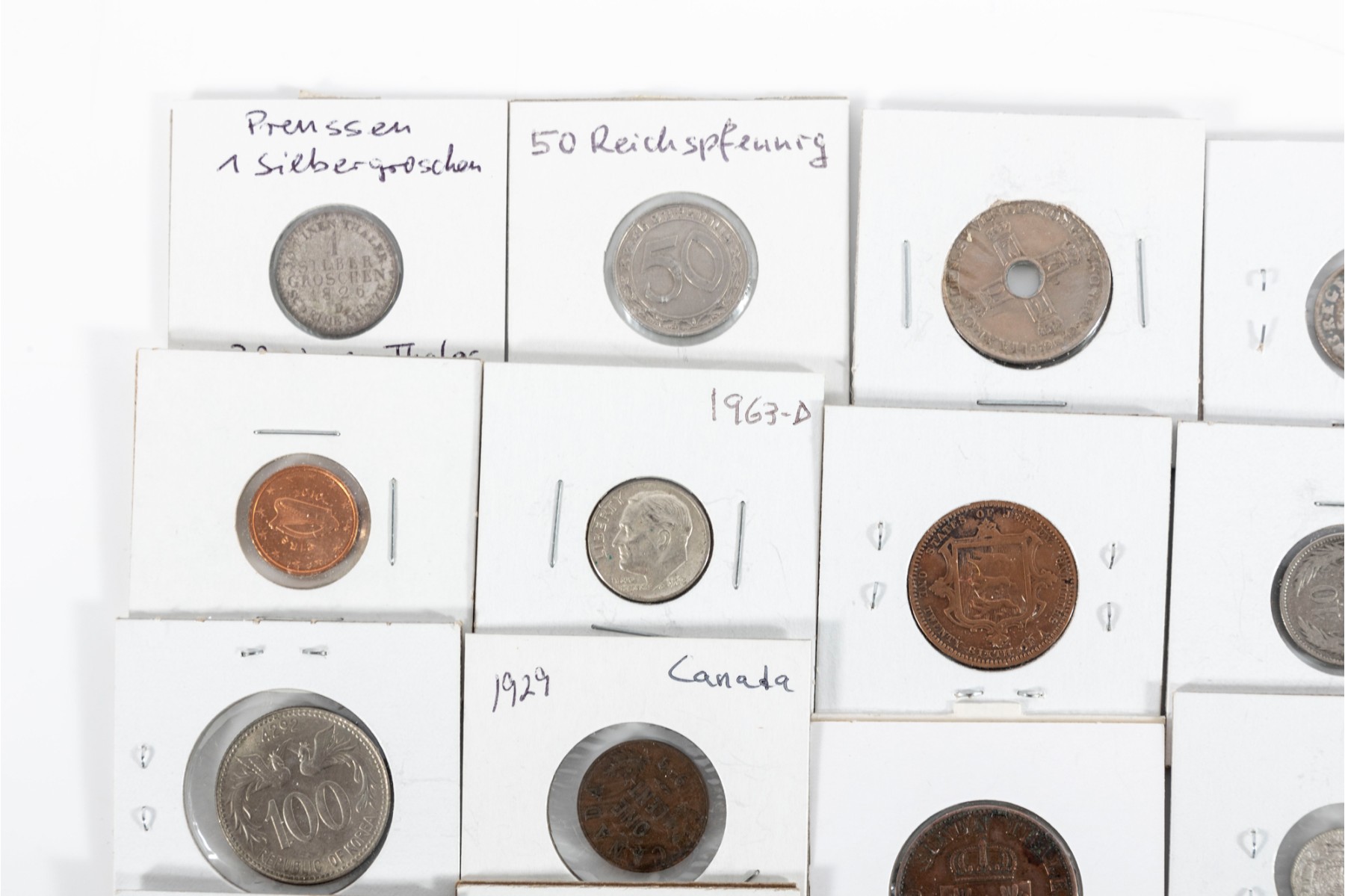 A collection of miscellaneous coins from various countries. Contents as shown and sold as is, see photos for details. All coins/tokens are contained in plastic sleeves.