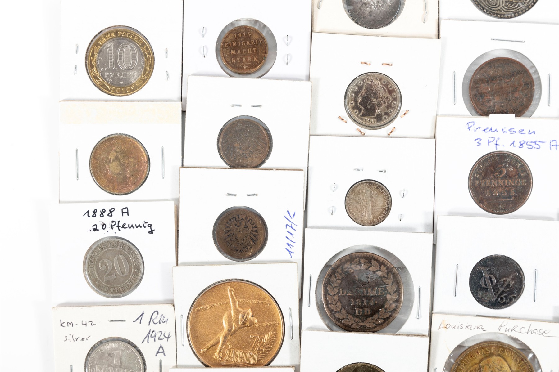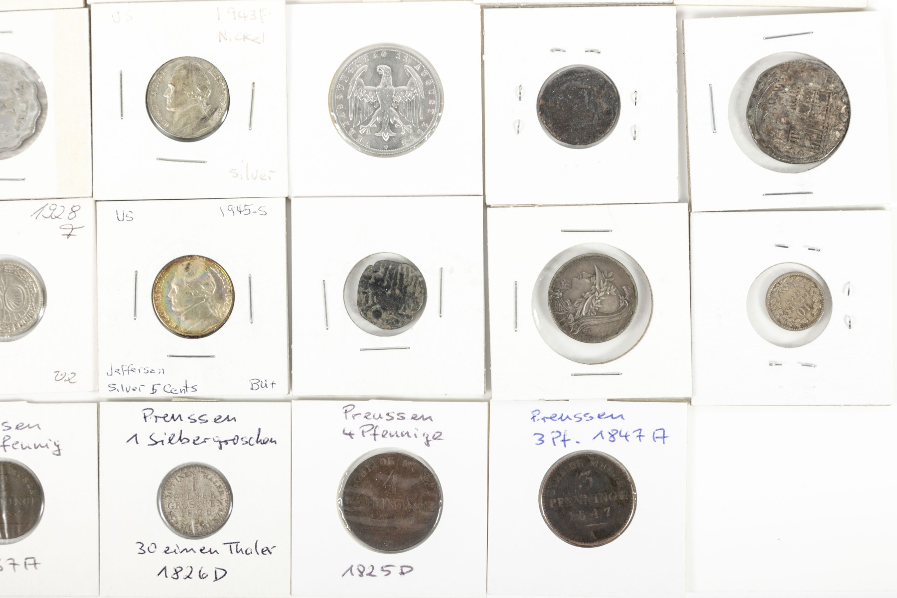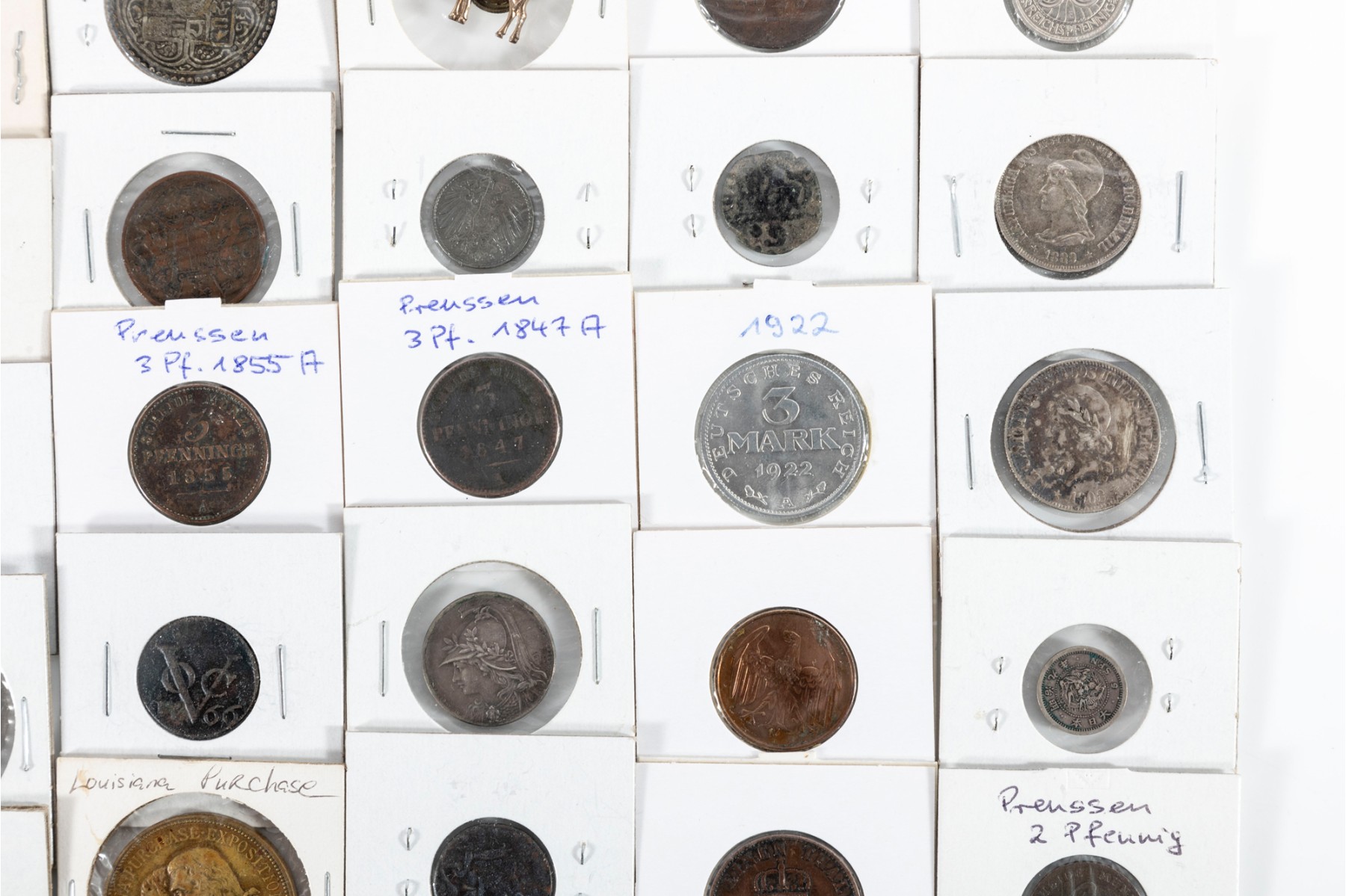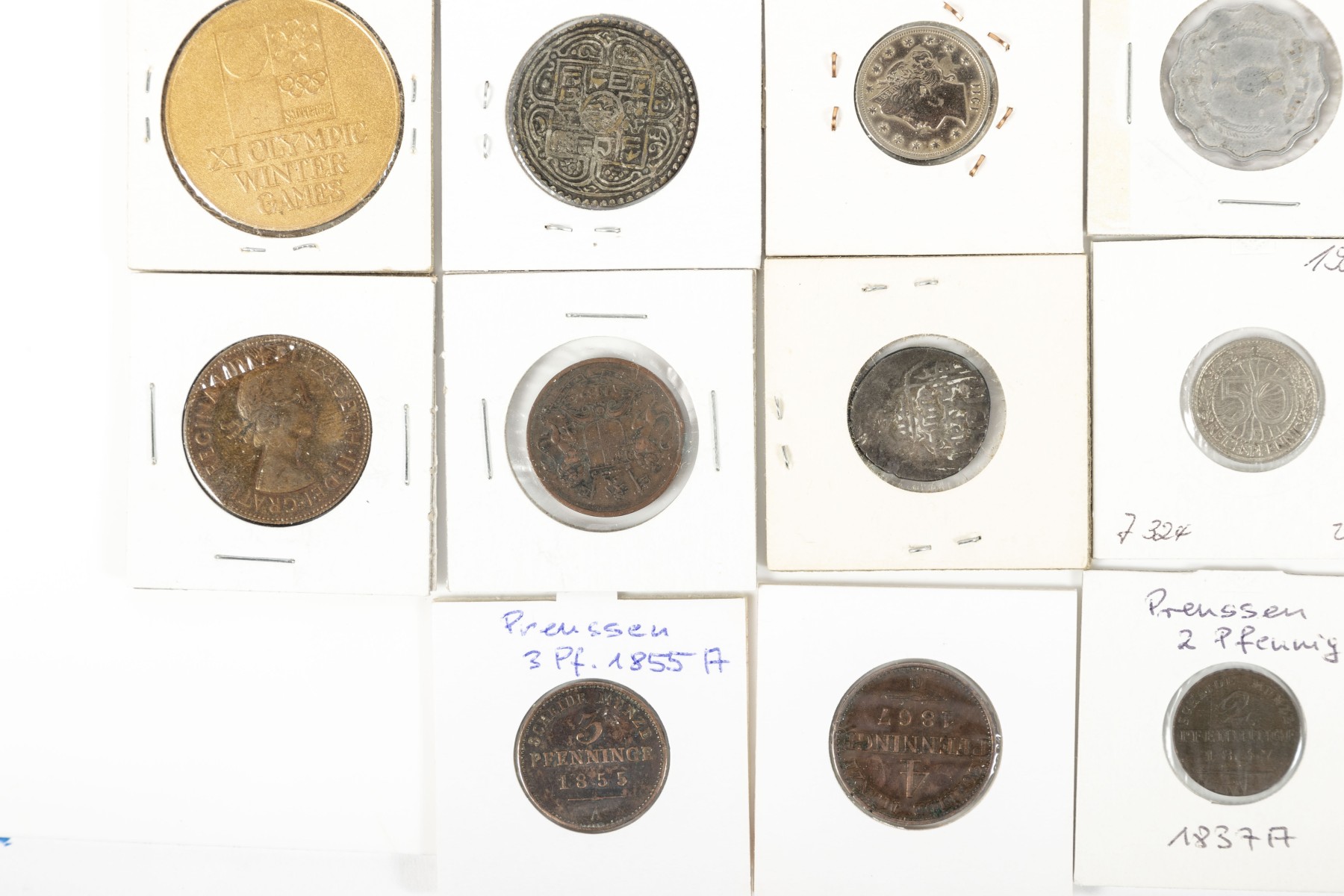 A collection of miscellaneous coins from various countries. Contents as shown and sold as is, see photos for details. All coins/tokens are contained in plastic sleeves.