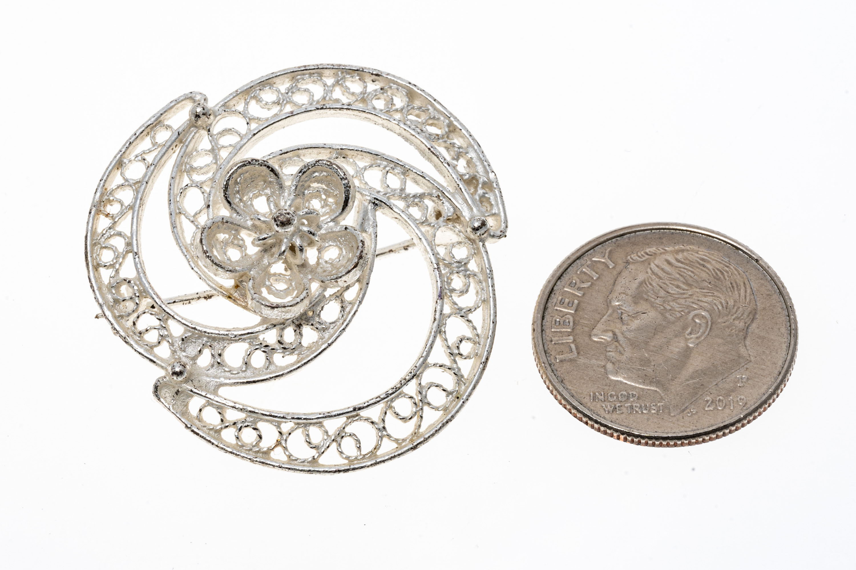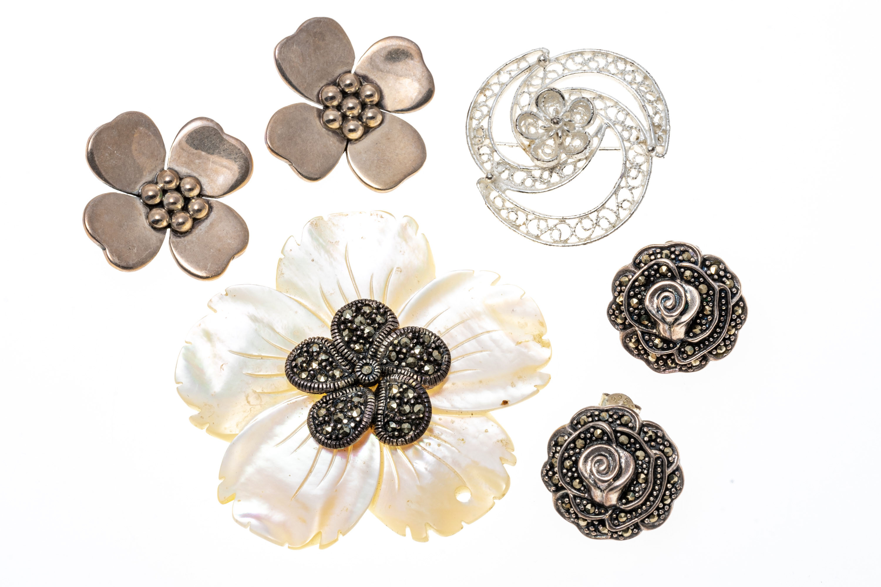 Lot of pretty assorted sterling silver and silver plate flower motif jewelry pieces