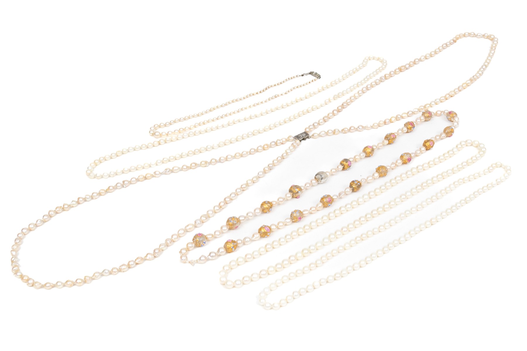 Lot of pretty beaded necklaces including cultured pearl strands, cultured freshwater pearl strands