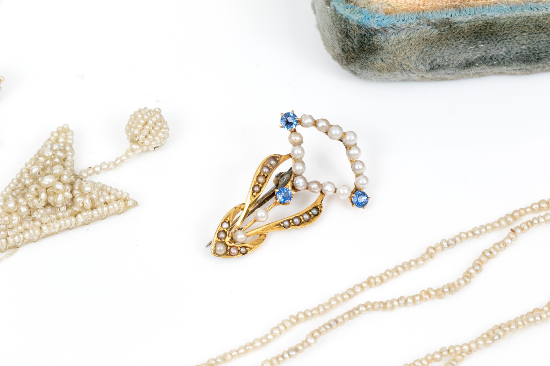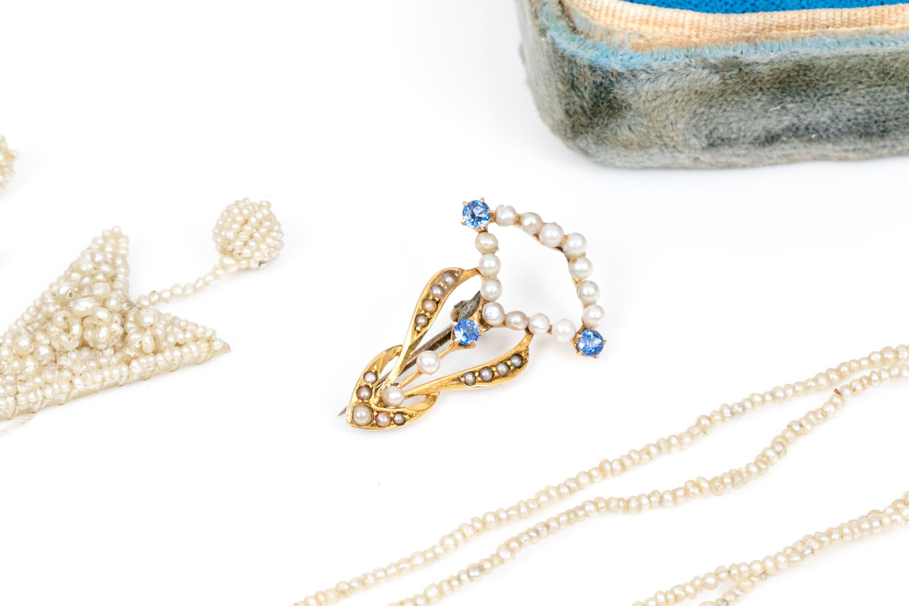 Weight: 1.2 gross dwt (18k and seed pearl earrings only)