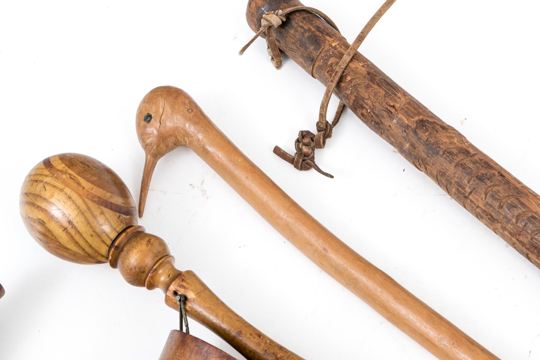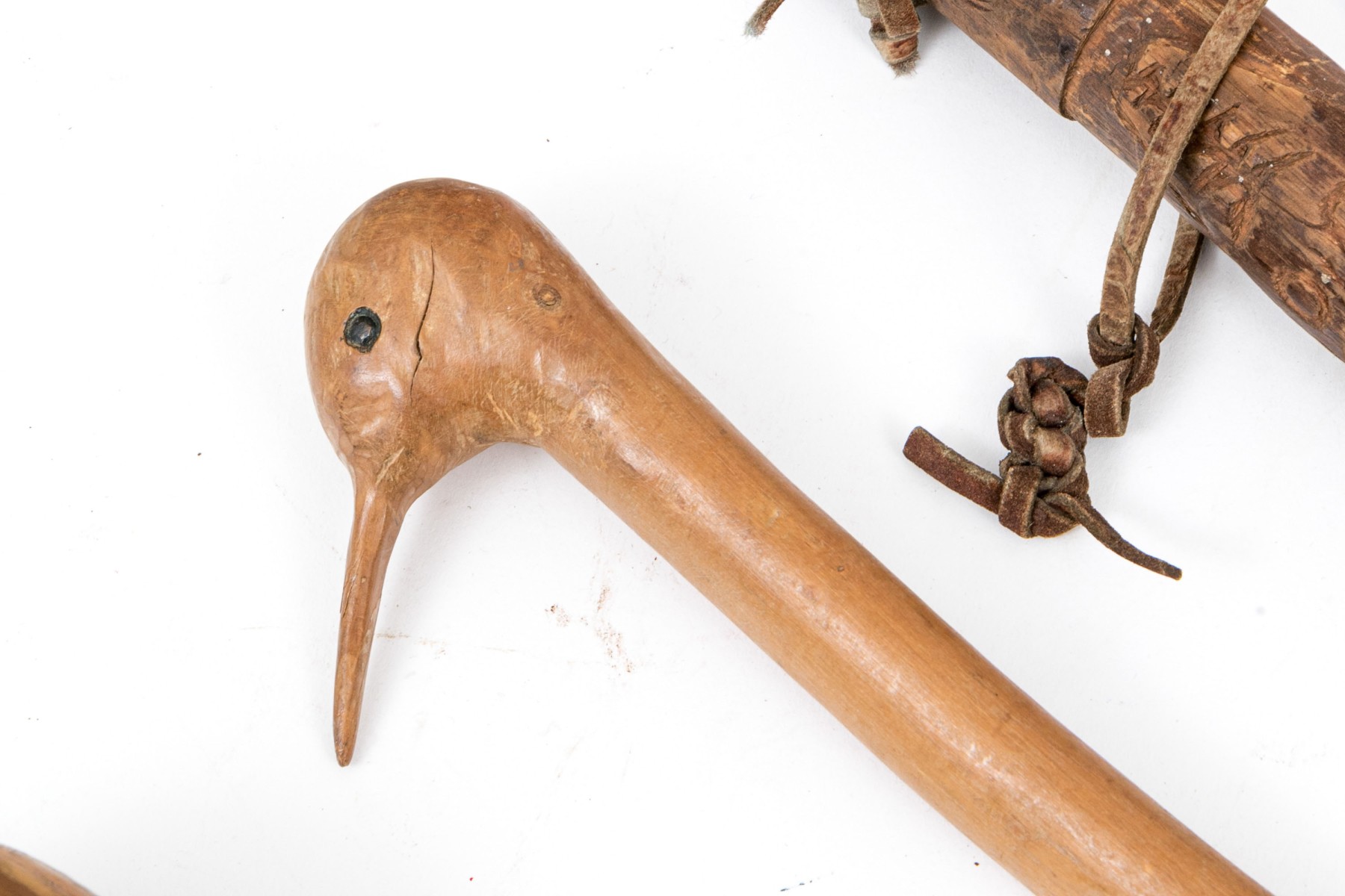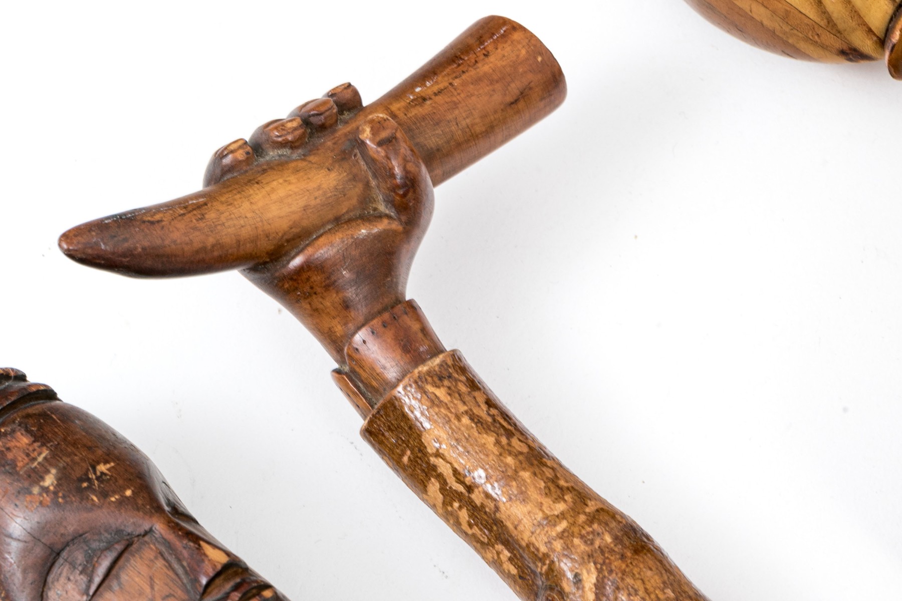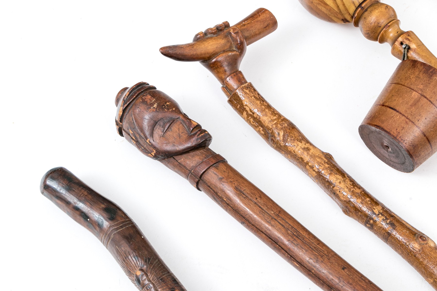 Lot of six assorted canes and walking sticks, assorted woods, including a cup design