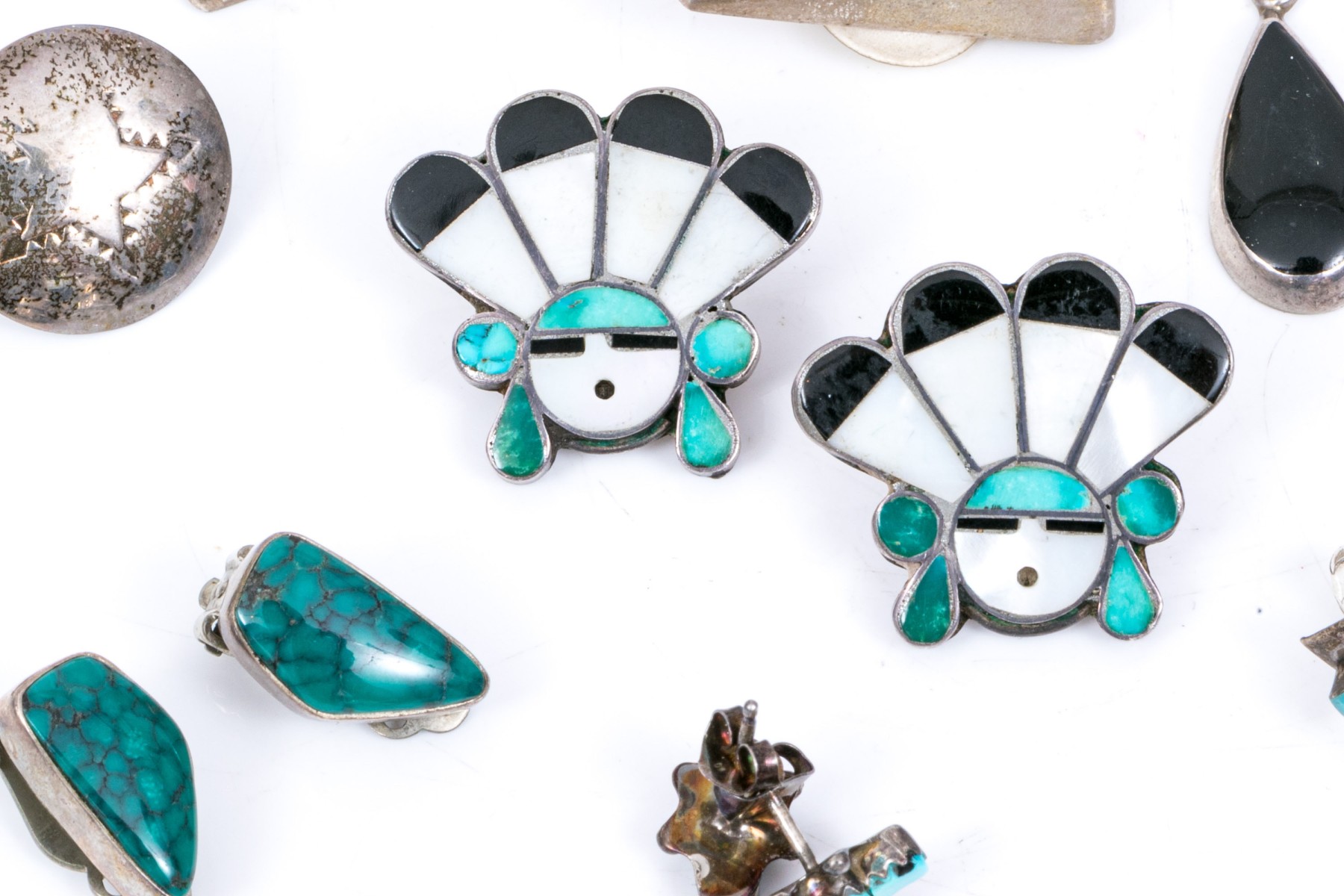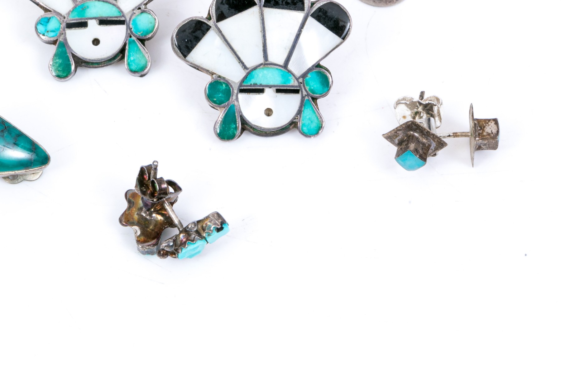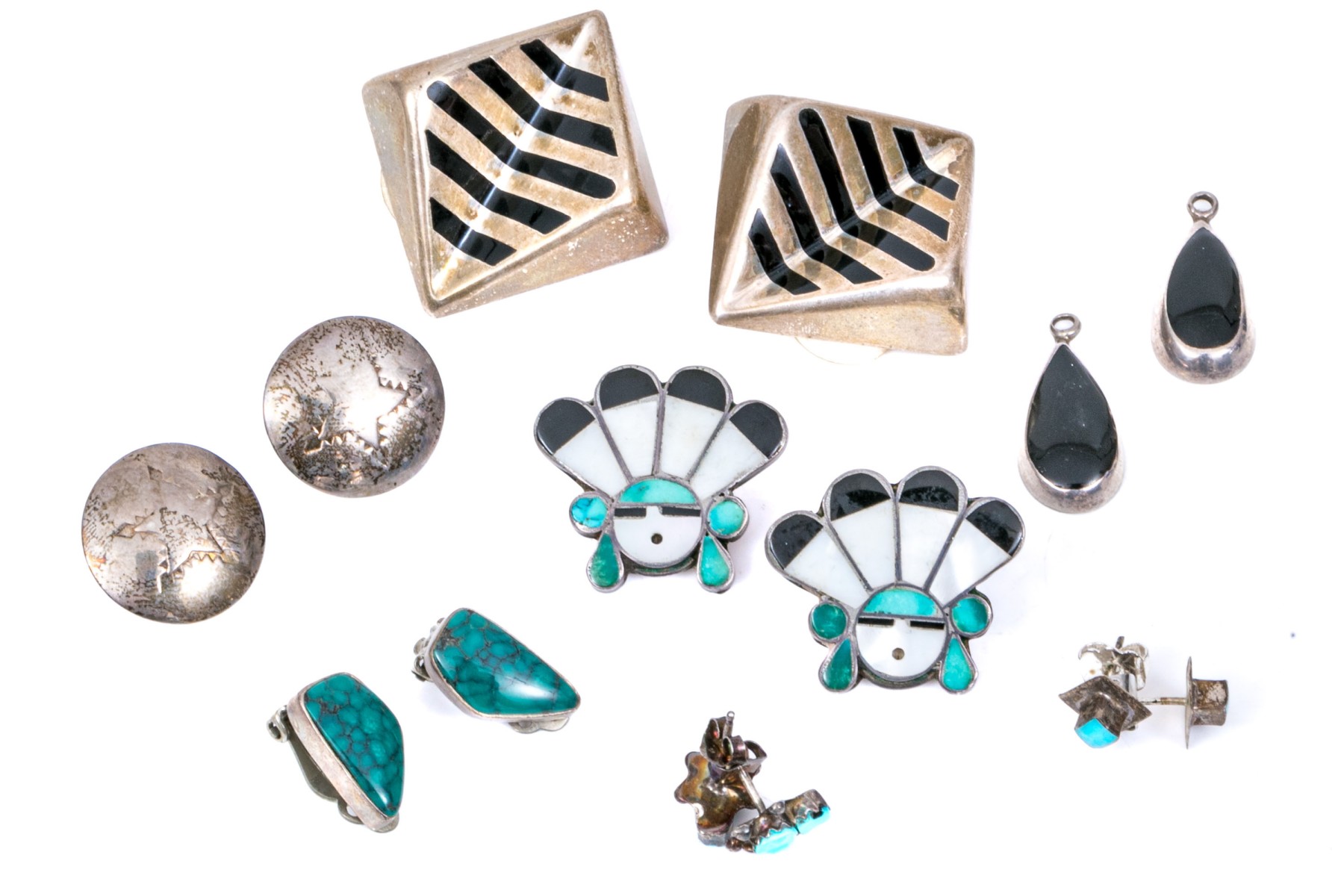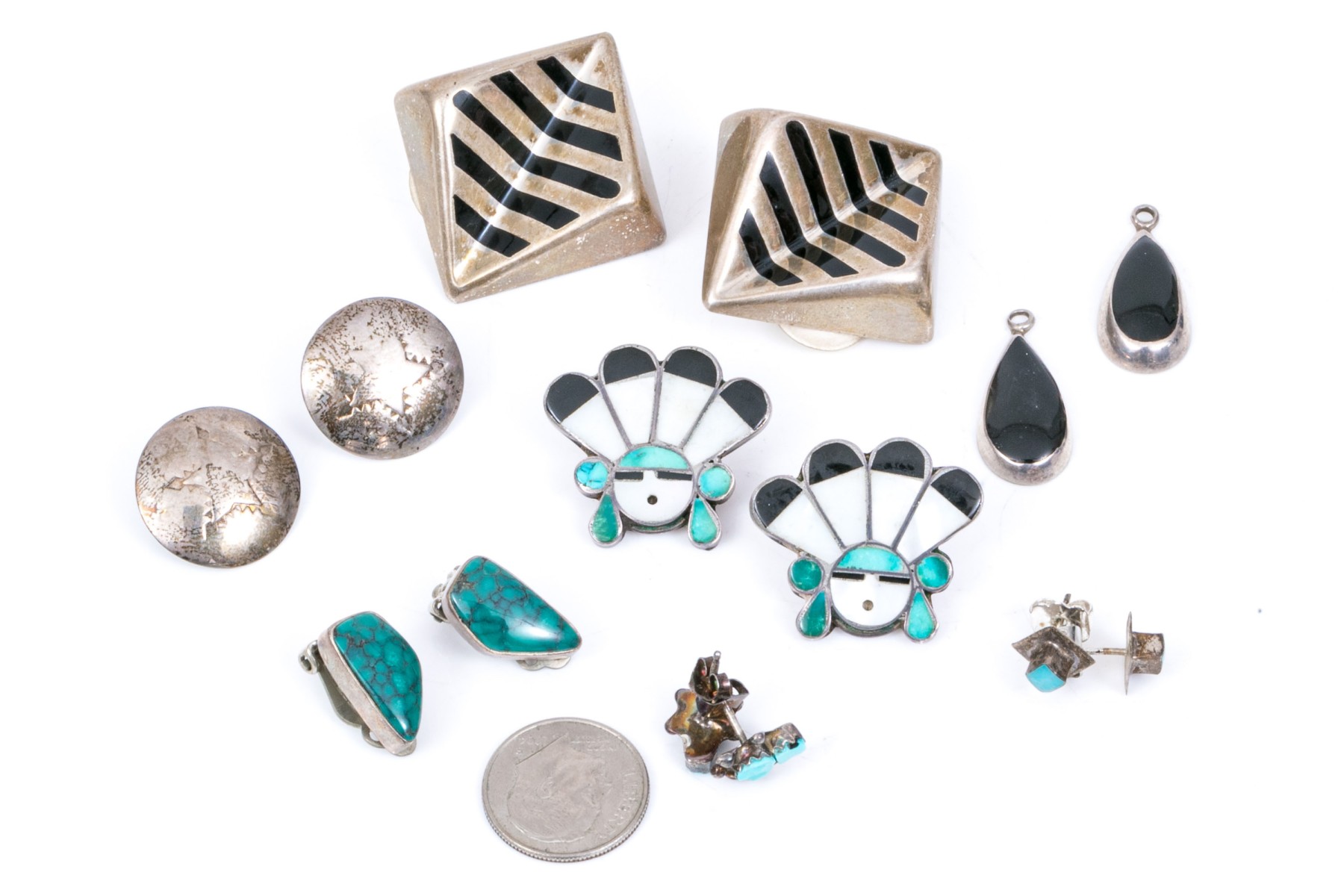 Lot of six assorted sterling silver Southwestern earrings and one pair of jackets, assorted backs