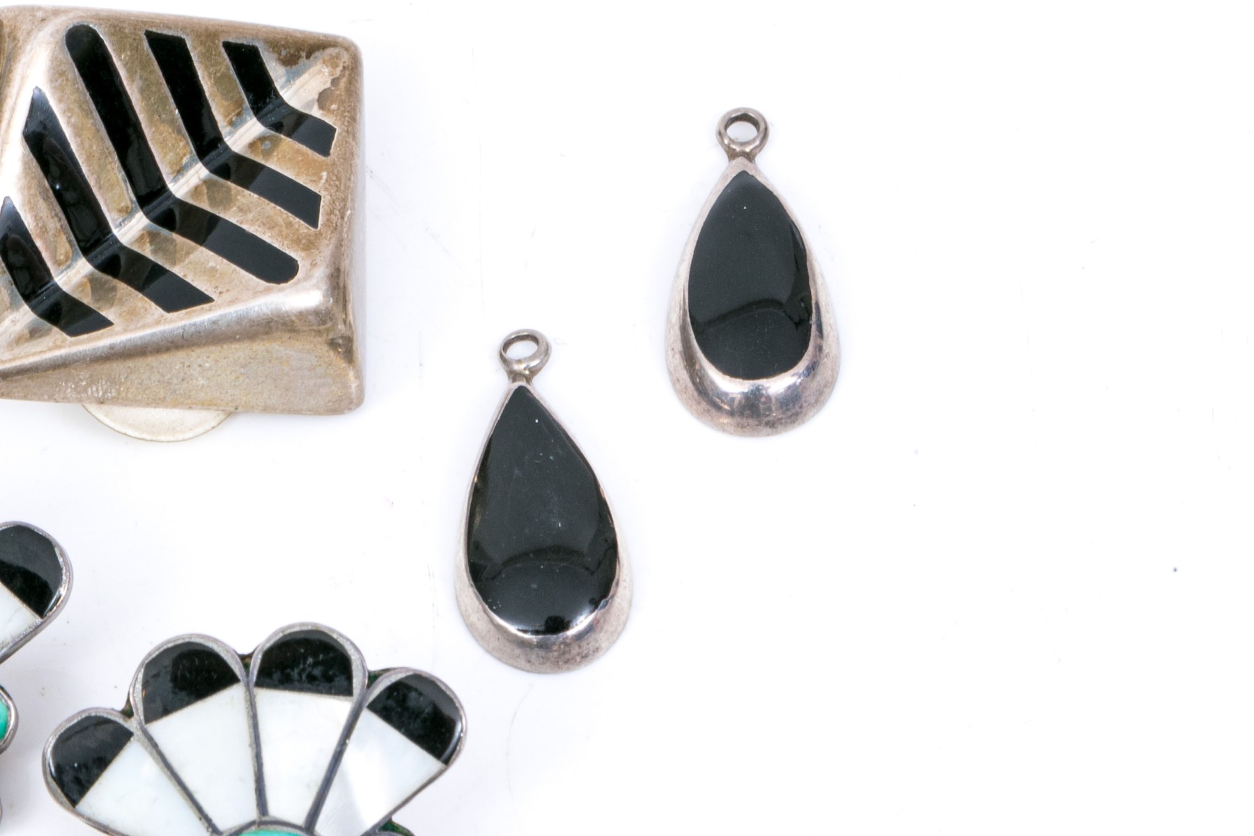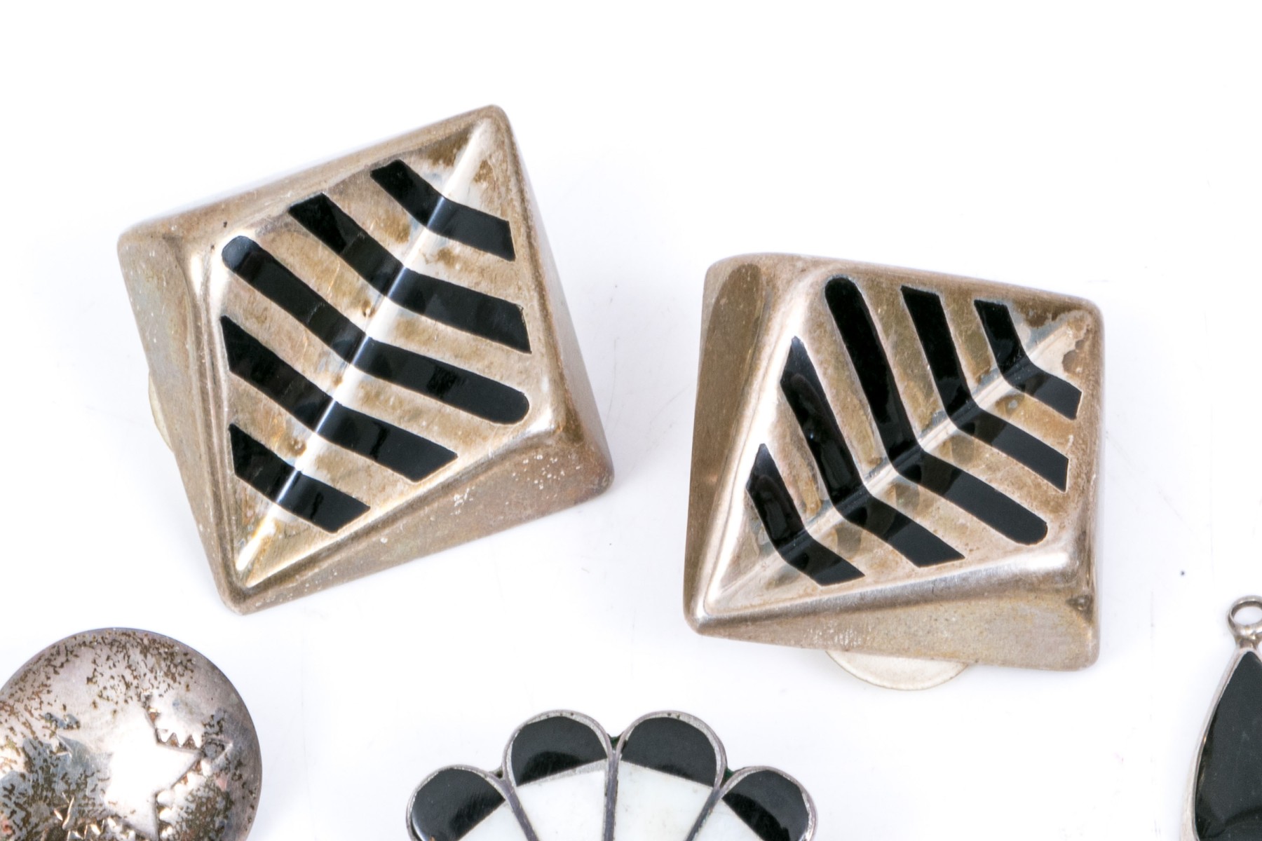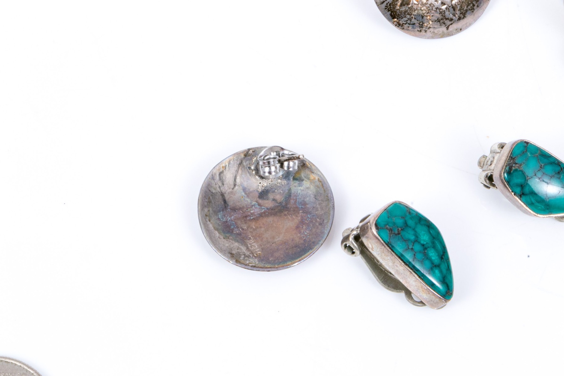 Lot of six assorted sterling silver Southwestern earrings and one pair of jackets, assorted backs