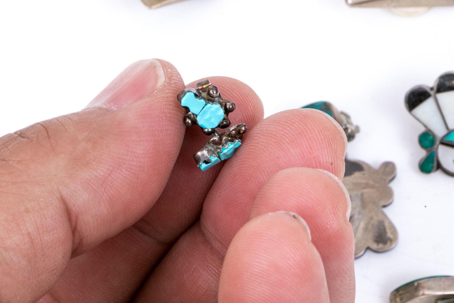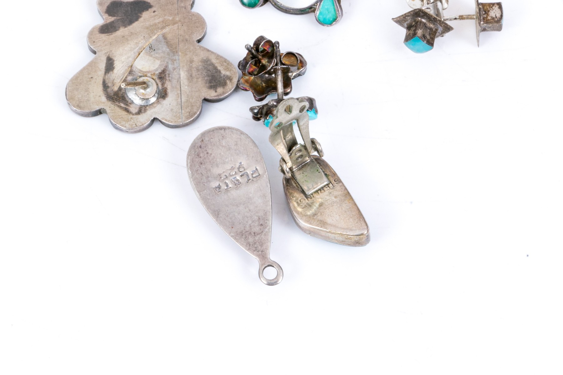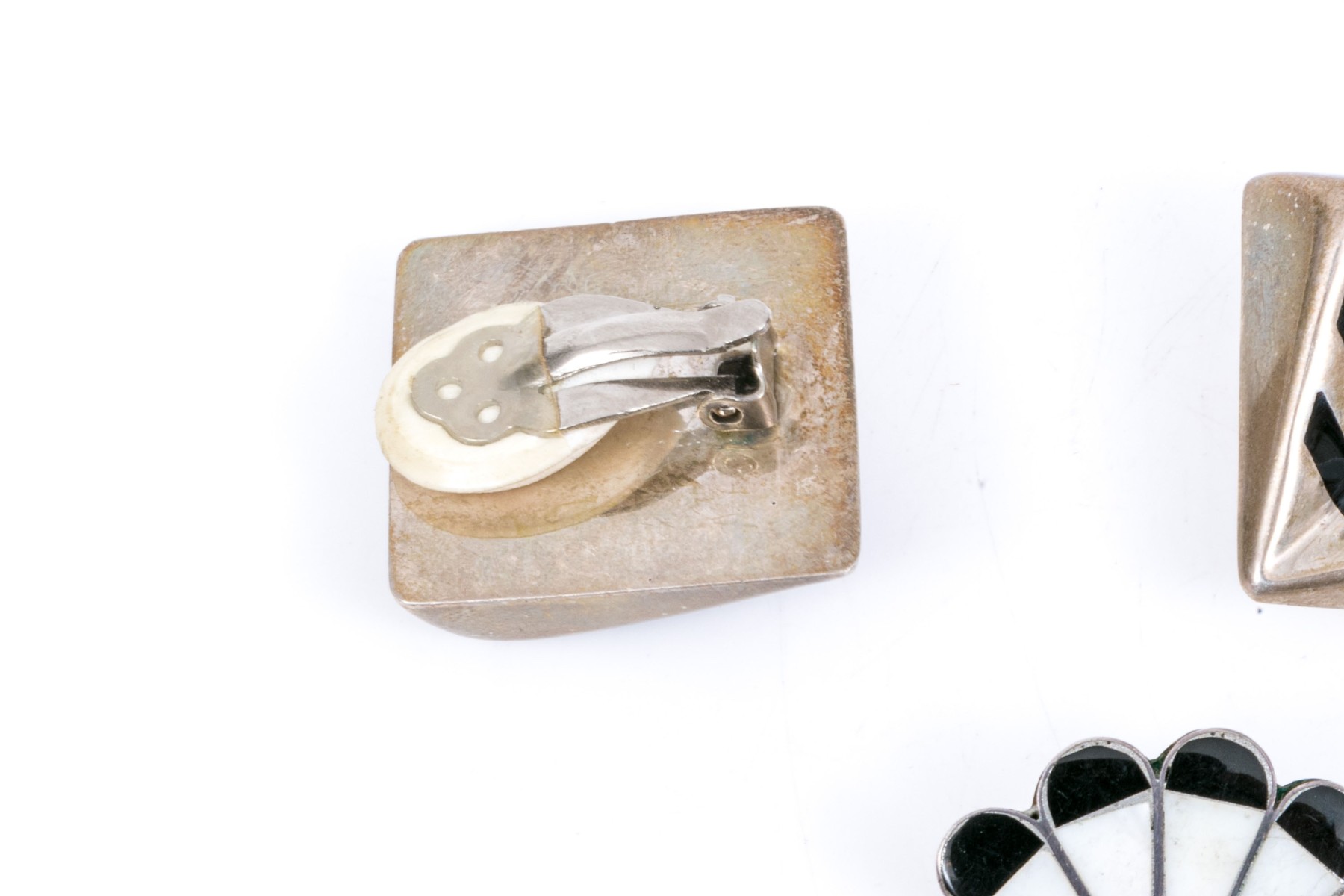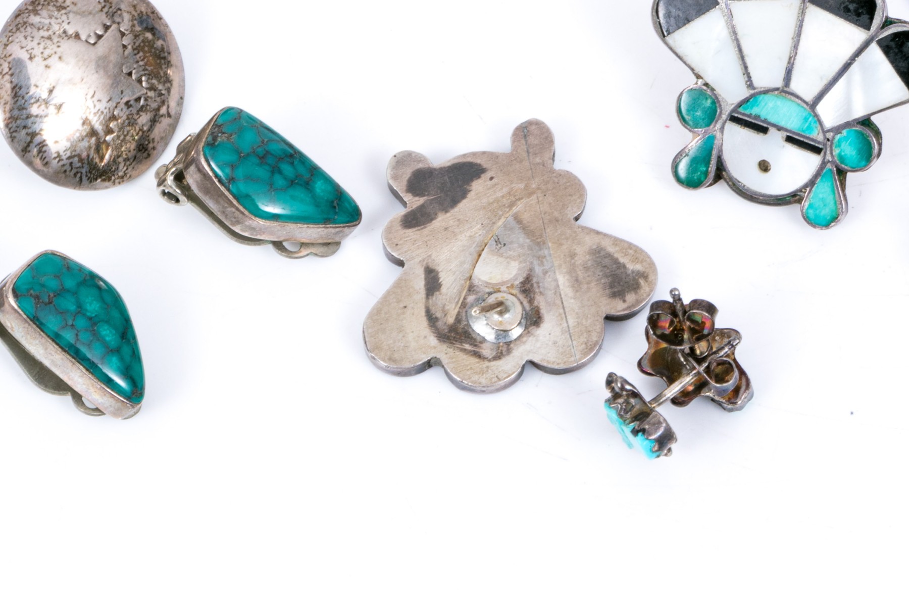 Lot of six assorted sterling silver Southwestern earrings and one pair of jackets, assorted backs