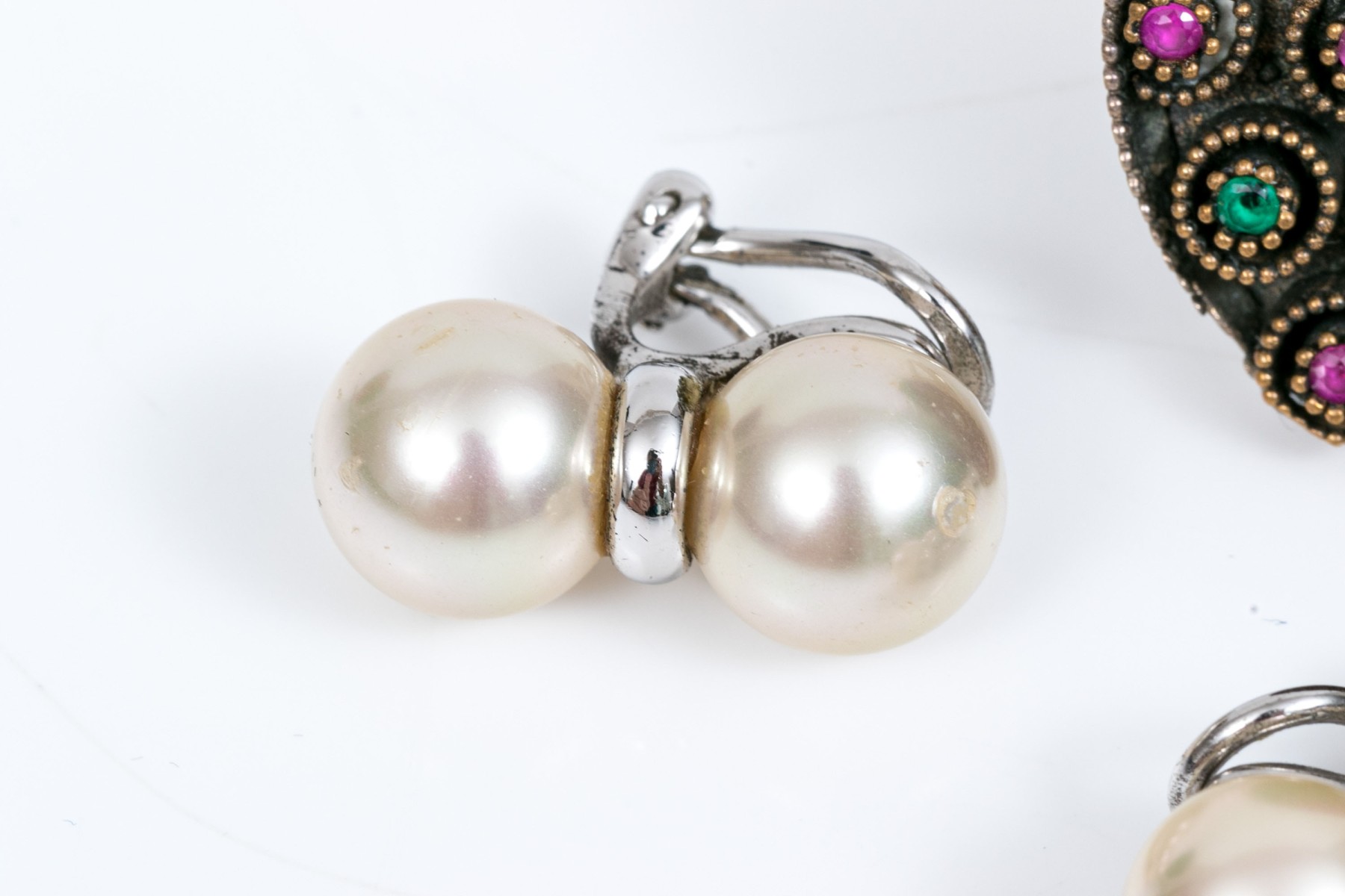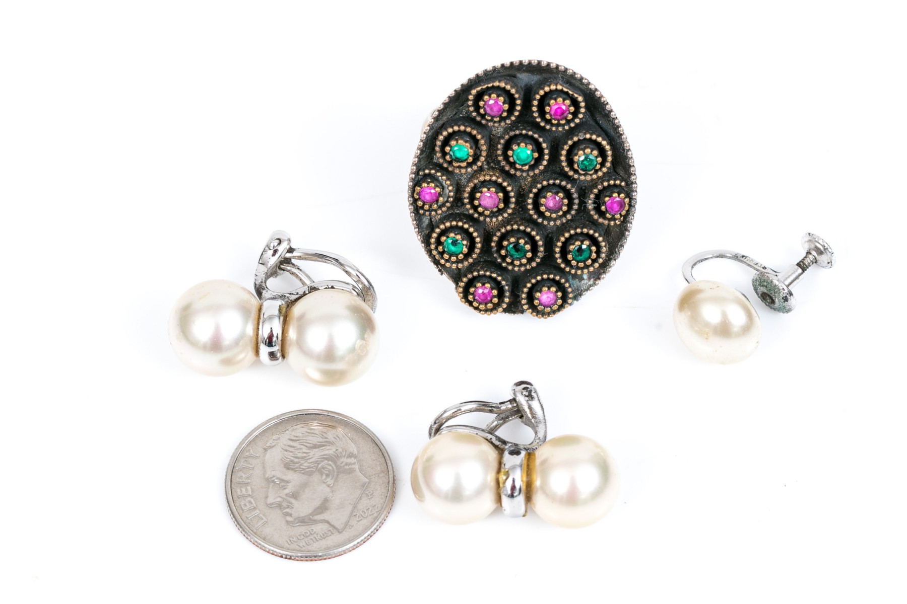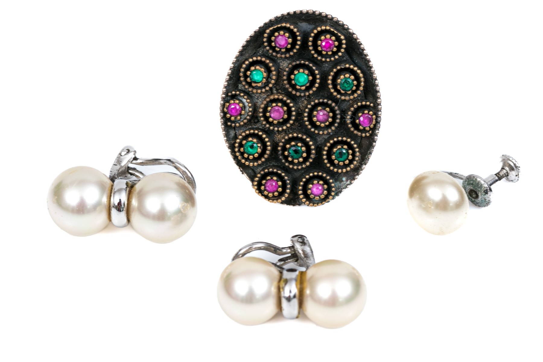 Condition: One pair of earrings is a half pair; otherwise good overall estate condition