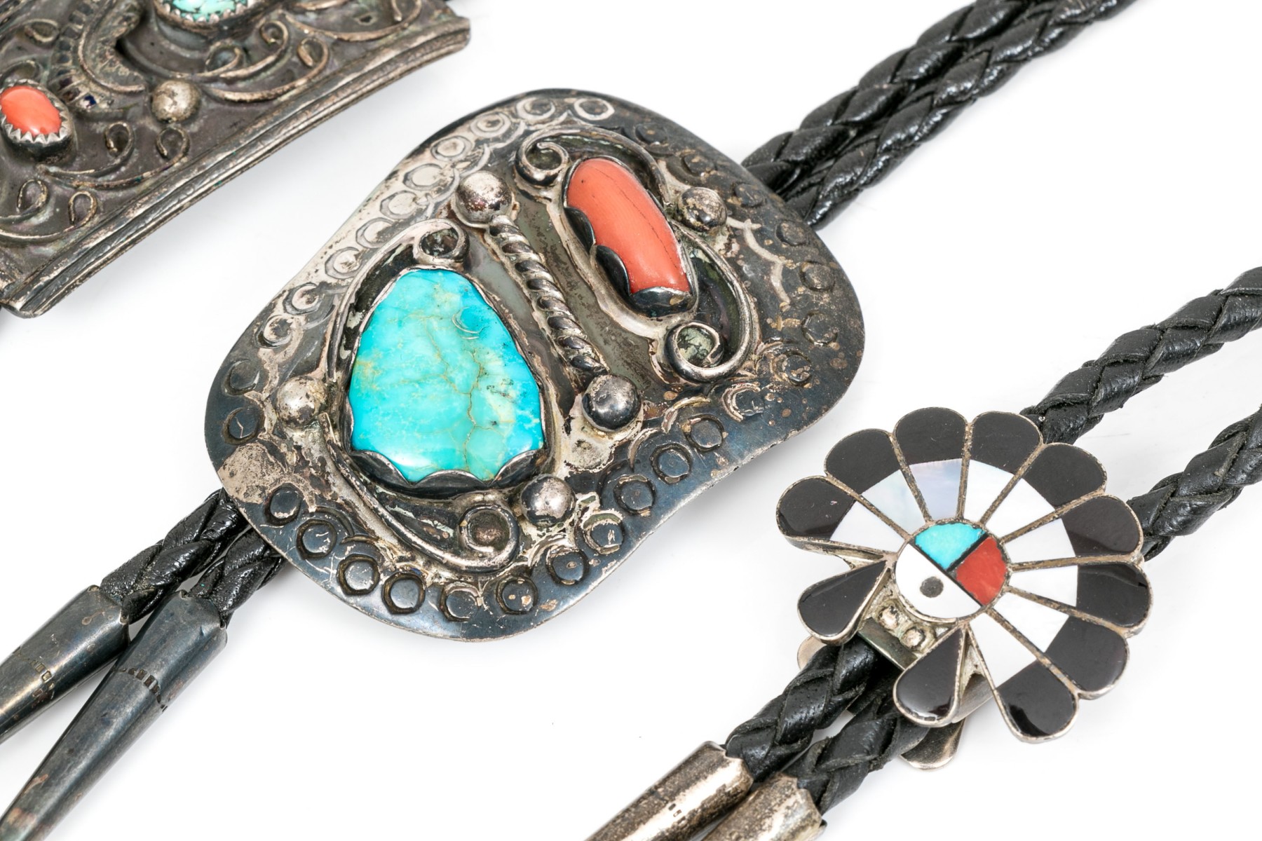 Lot of striking assorted Southwestern motif bolero necklaces, leather cords