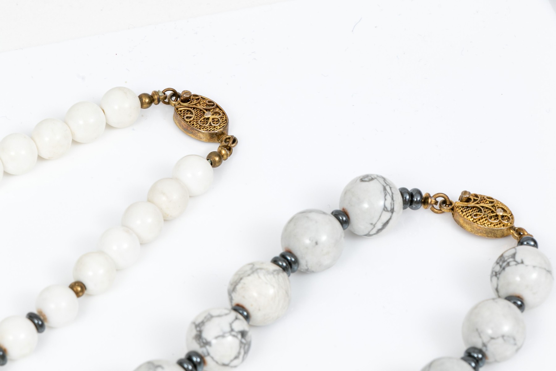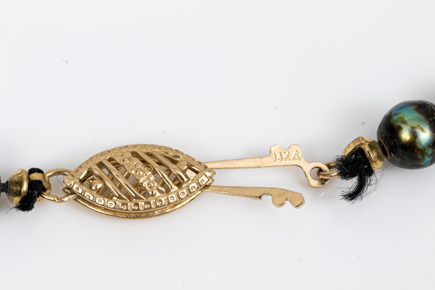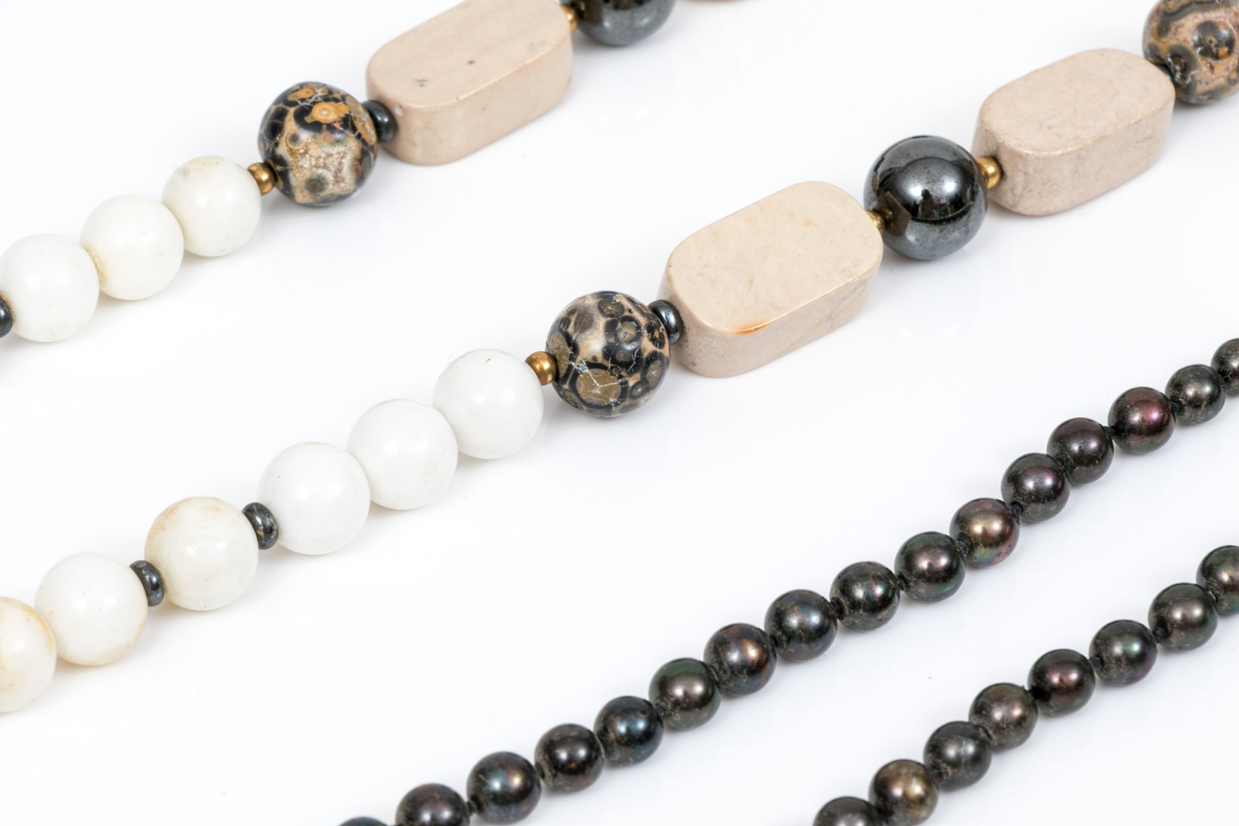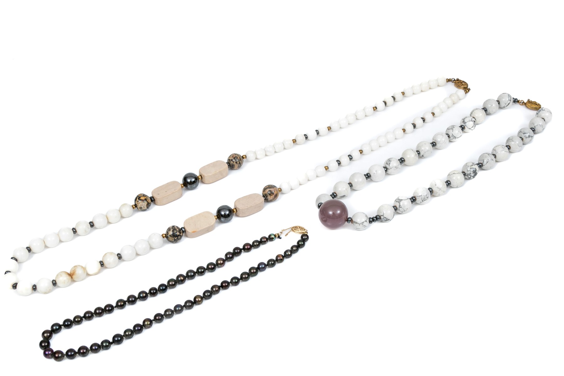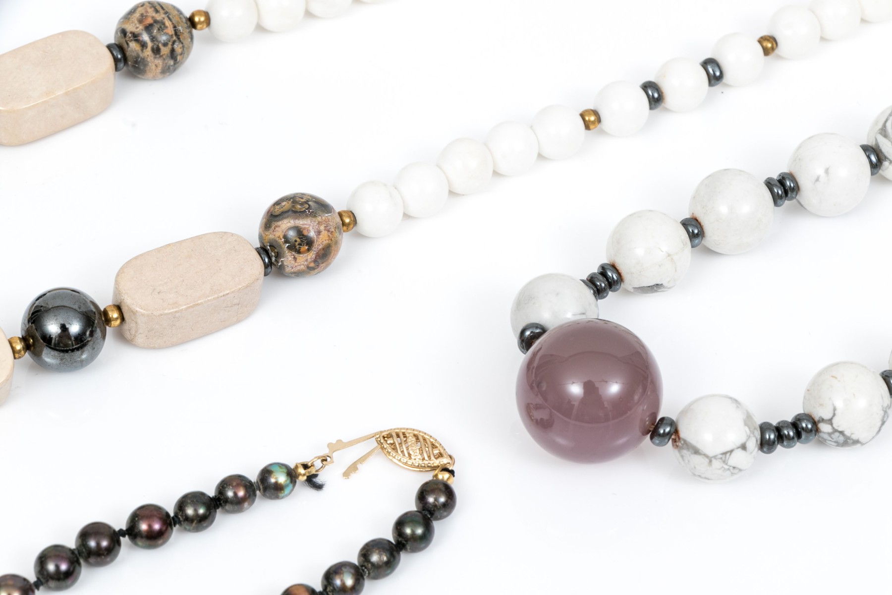 Lot of striking beaded necklaces including a black cultured pearl necklace with a 14k clasp, other assorted bead necklaces