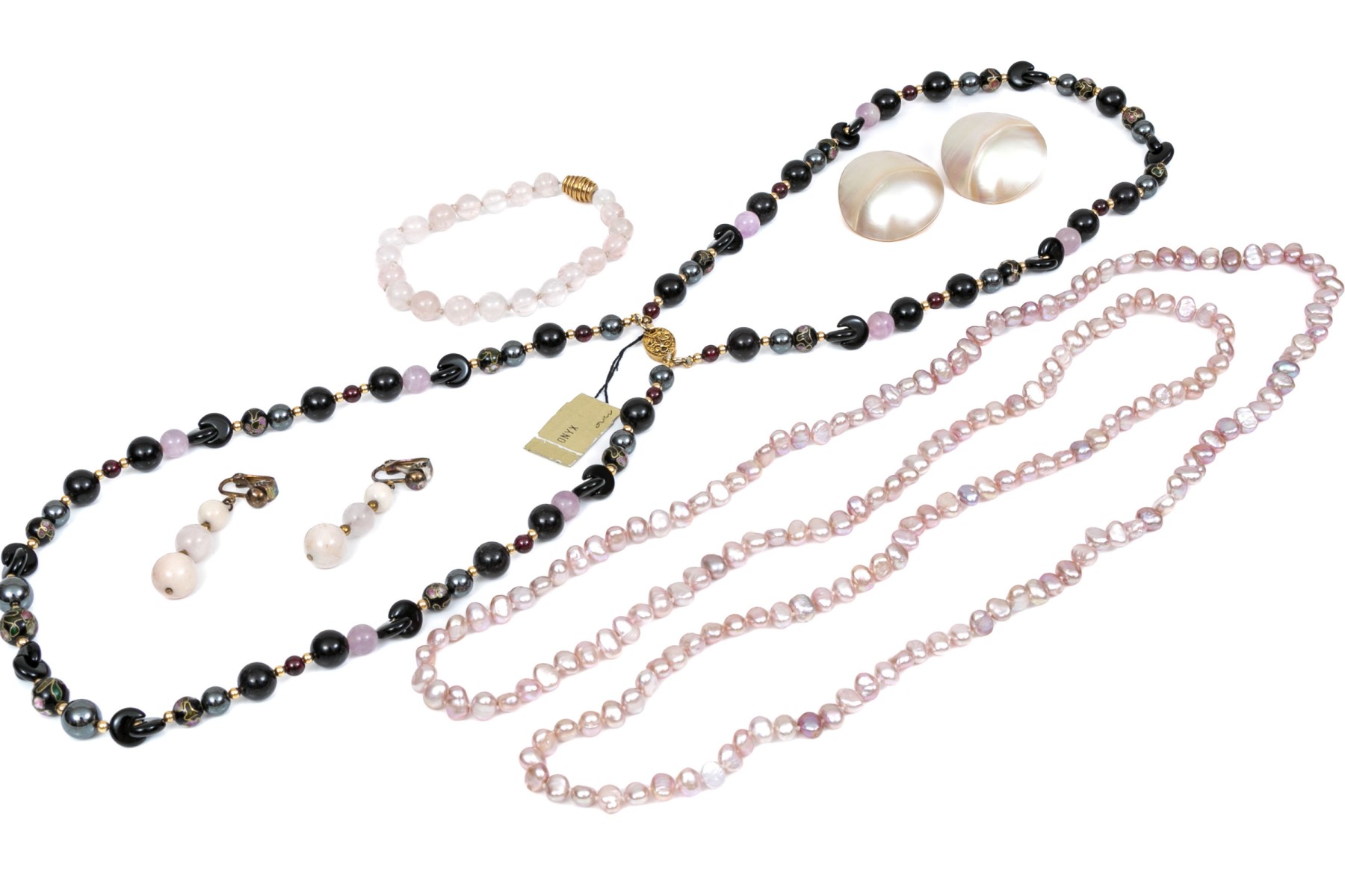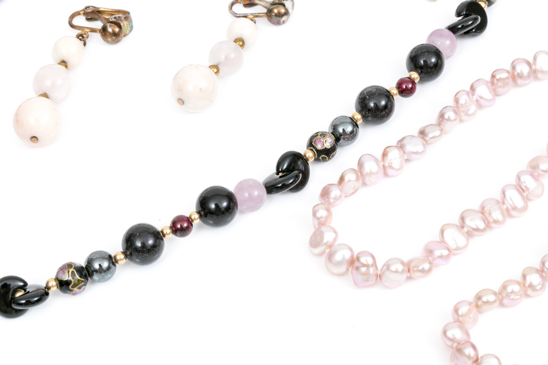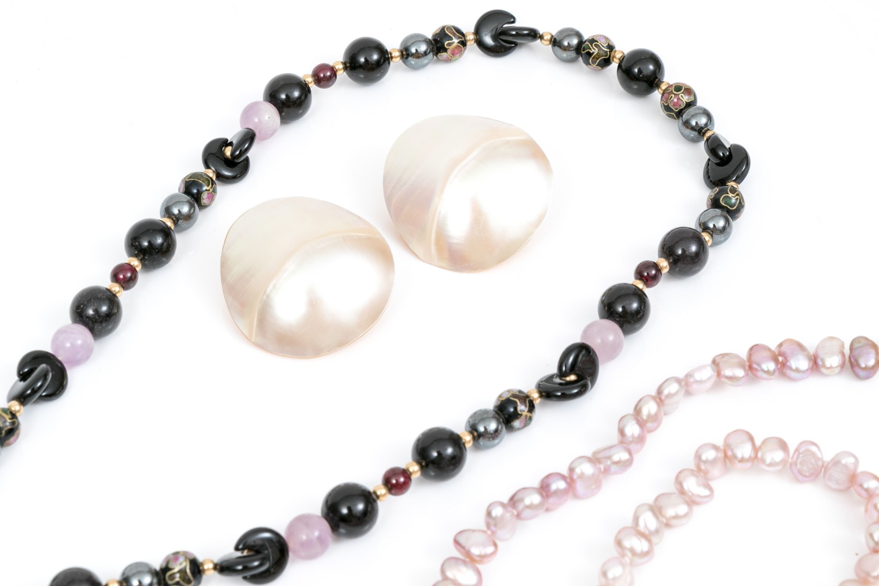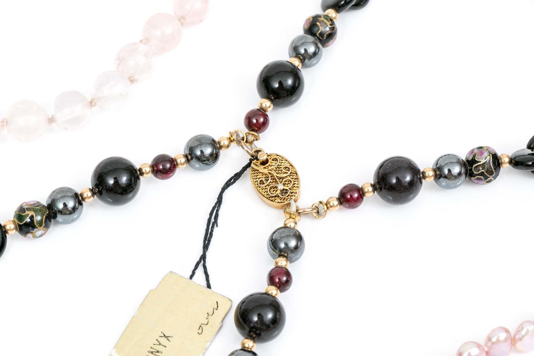 Lot of striking beaded necklaces jewelry including onyx, cultured freshwater pearl