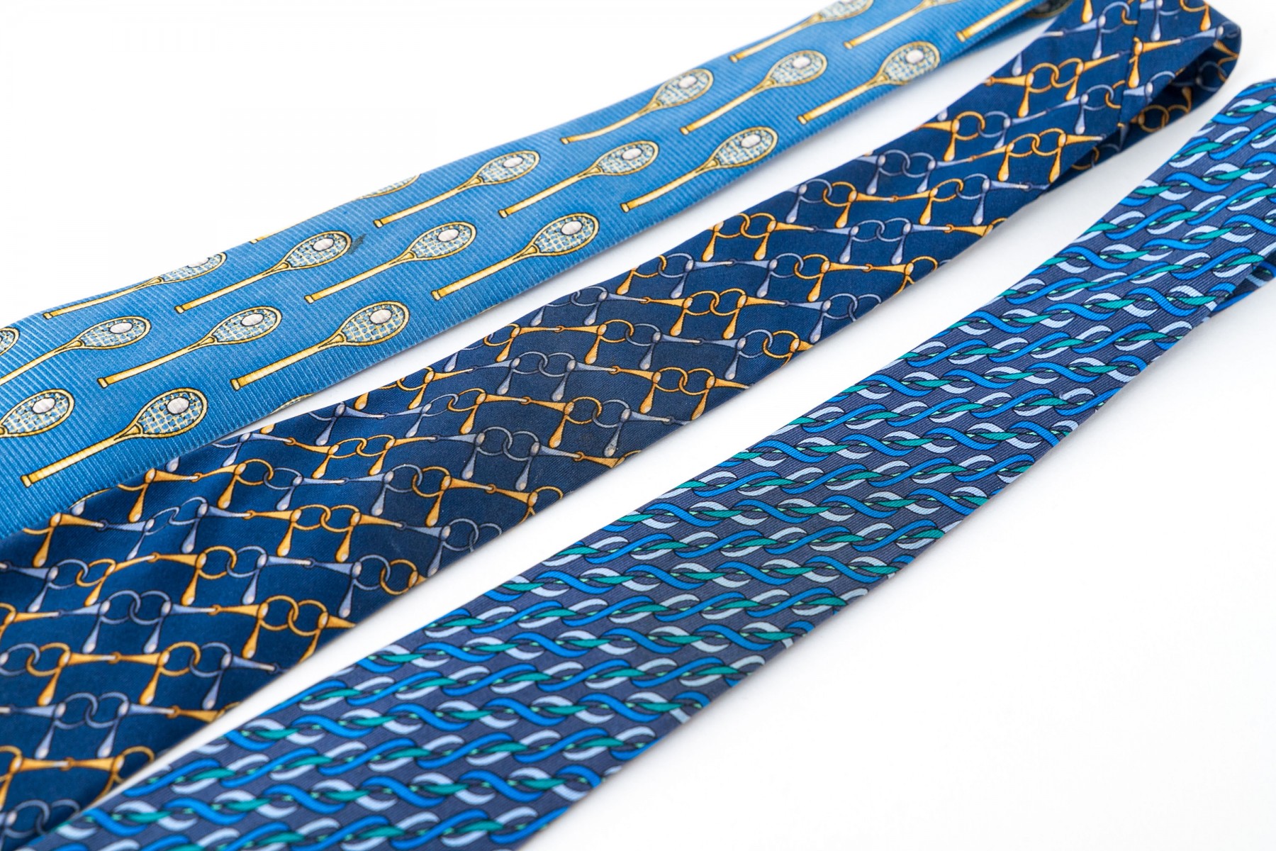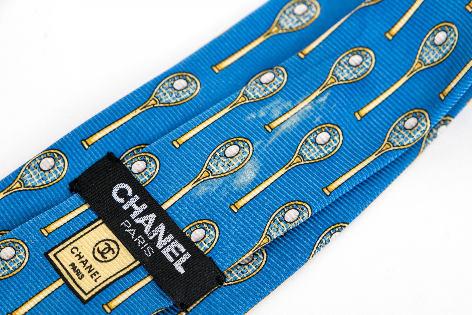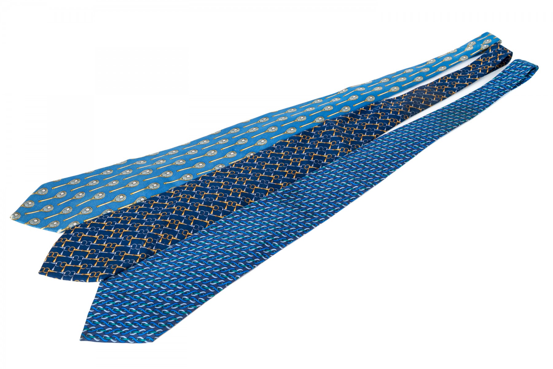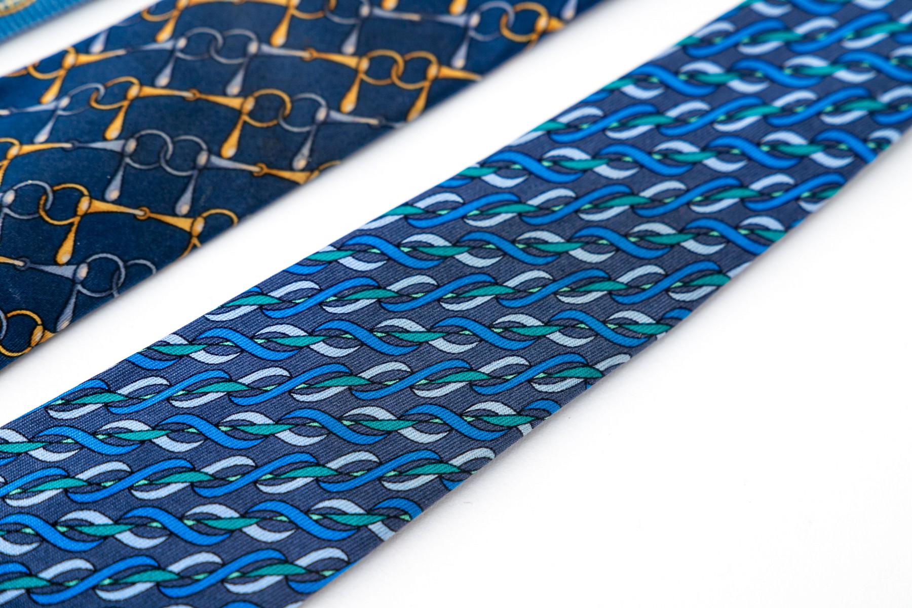 Lot of three assorted silk neckties, Chanel and Gucci, blue tones