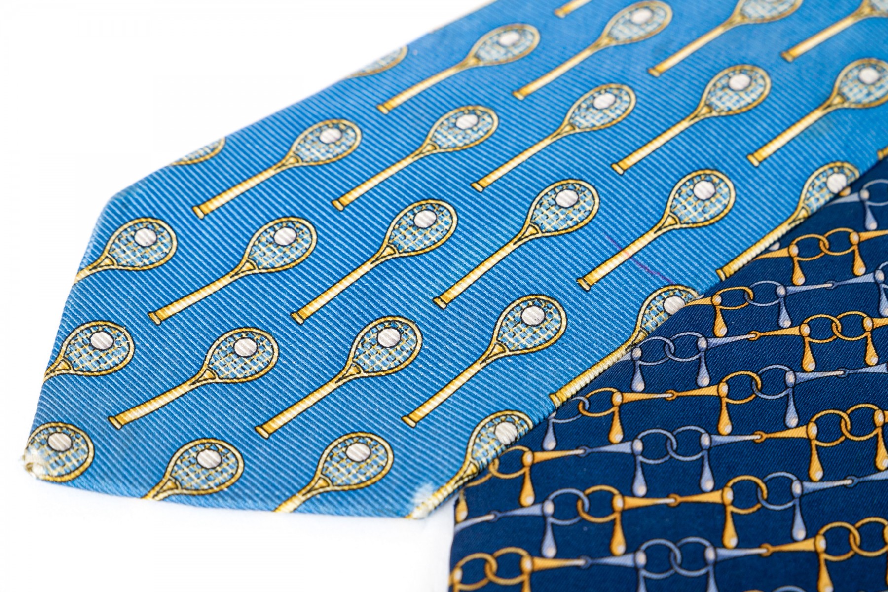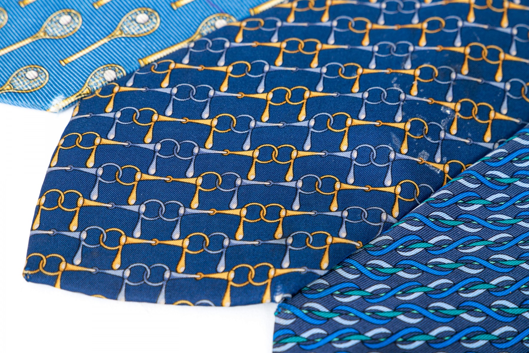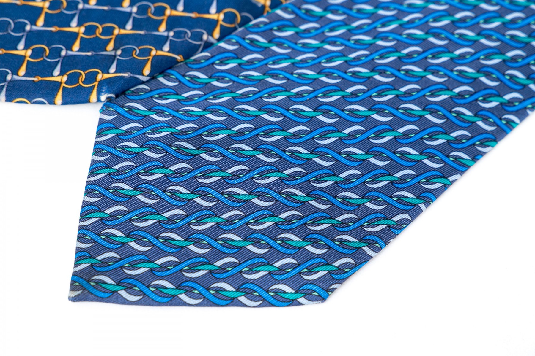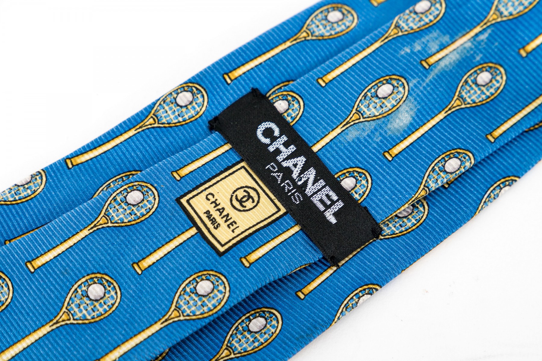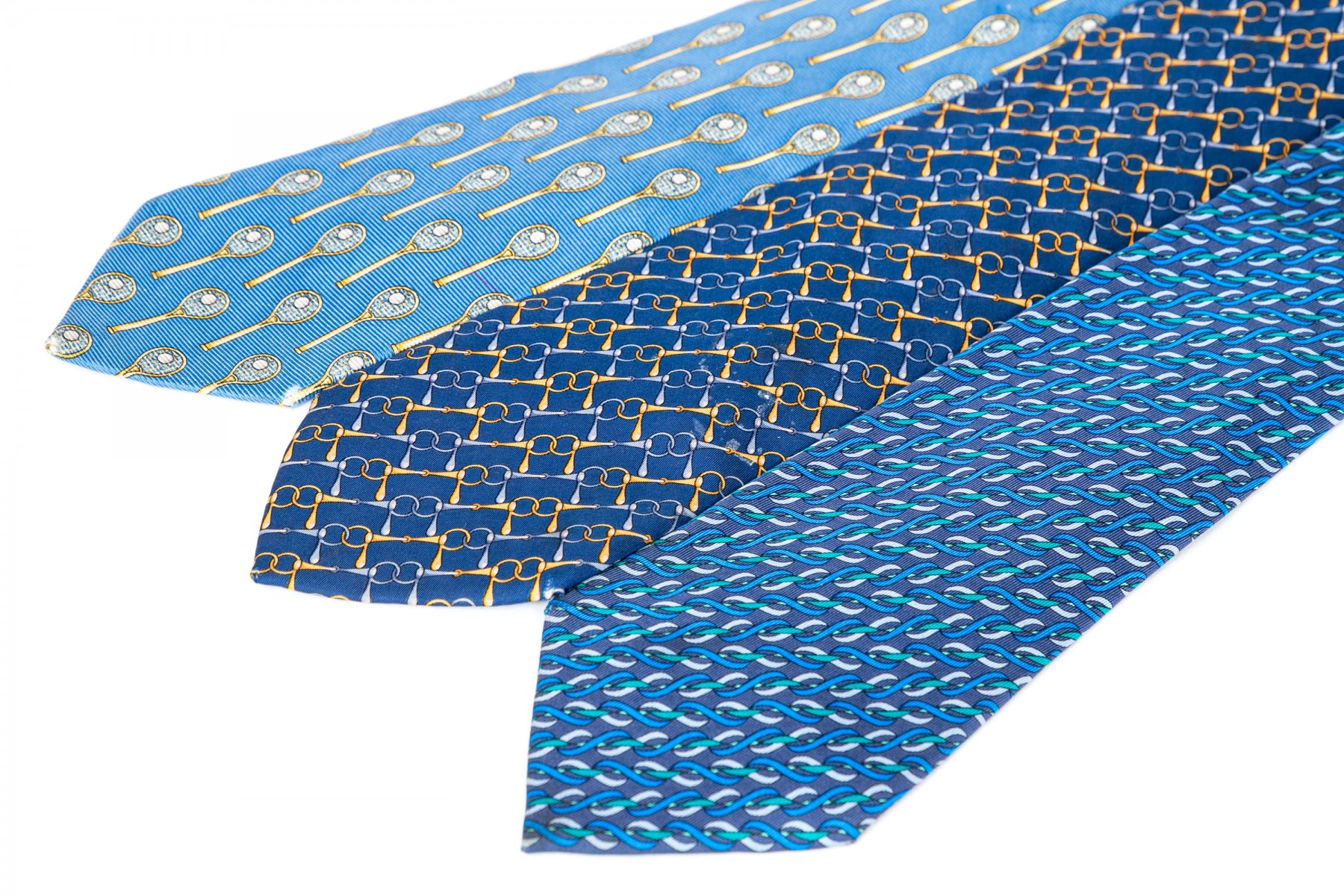 Lot of three assorted silk neckties, Chanel and Gucci, blue tones