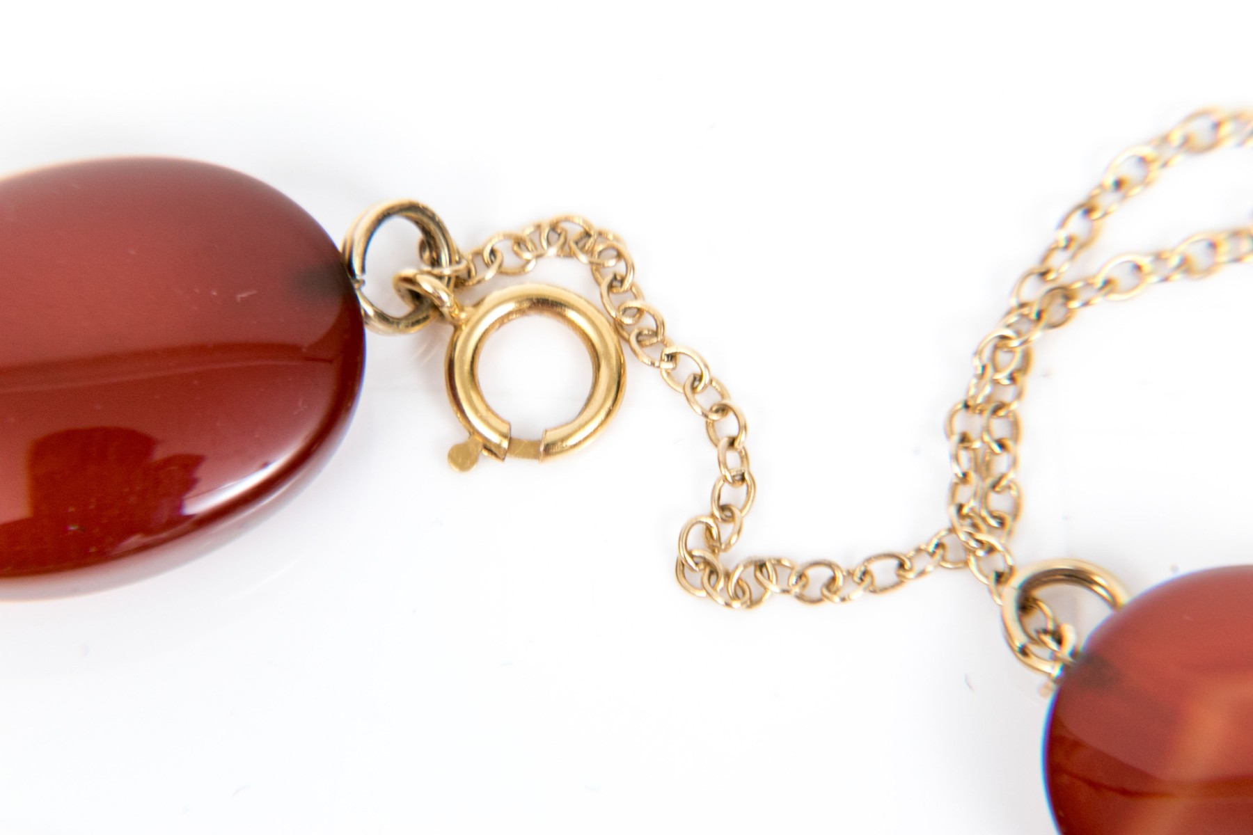 Marks: 14k, none; earrings posts test 14k, carnelian bracelet beads and safety test 9k