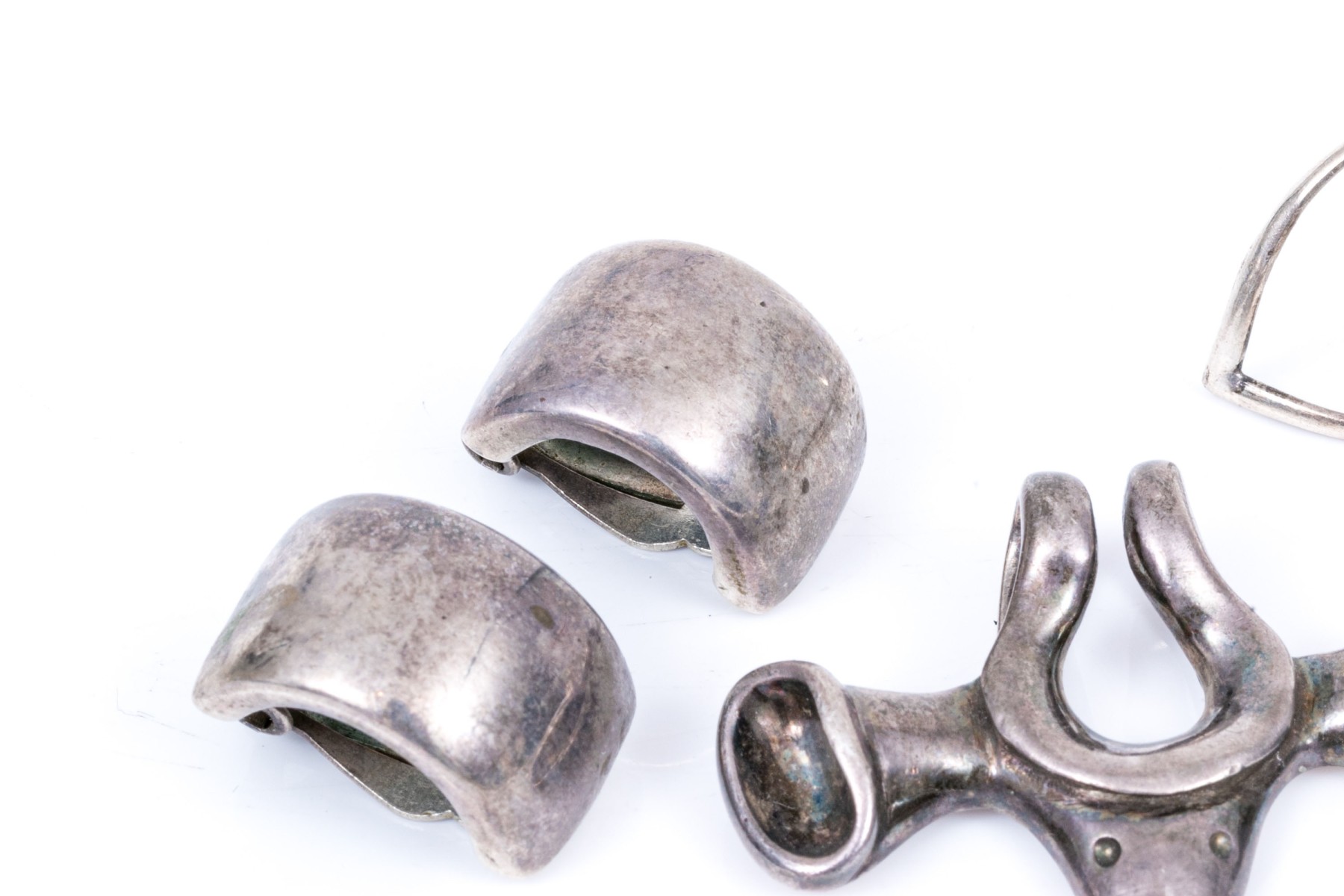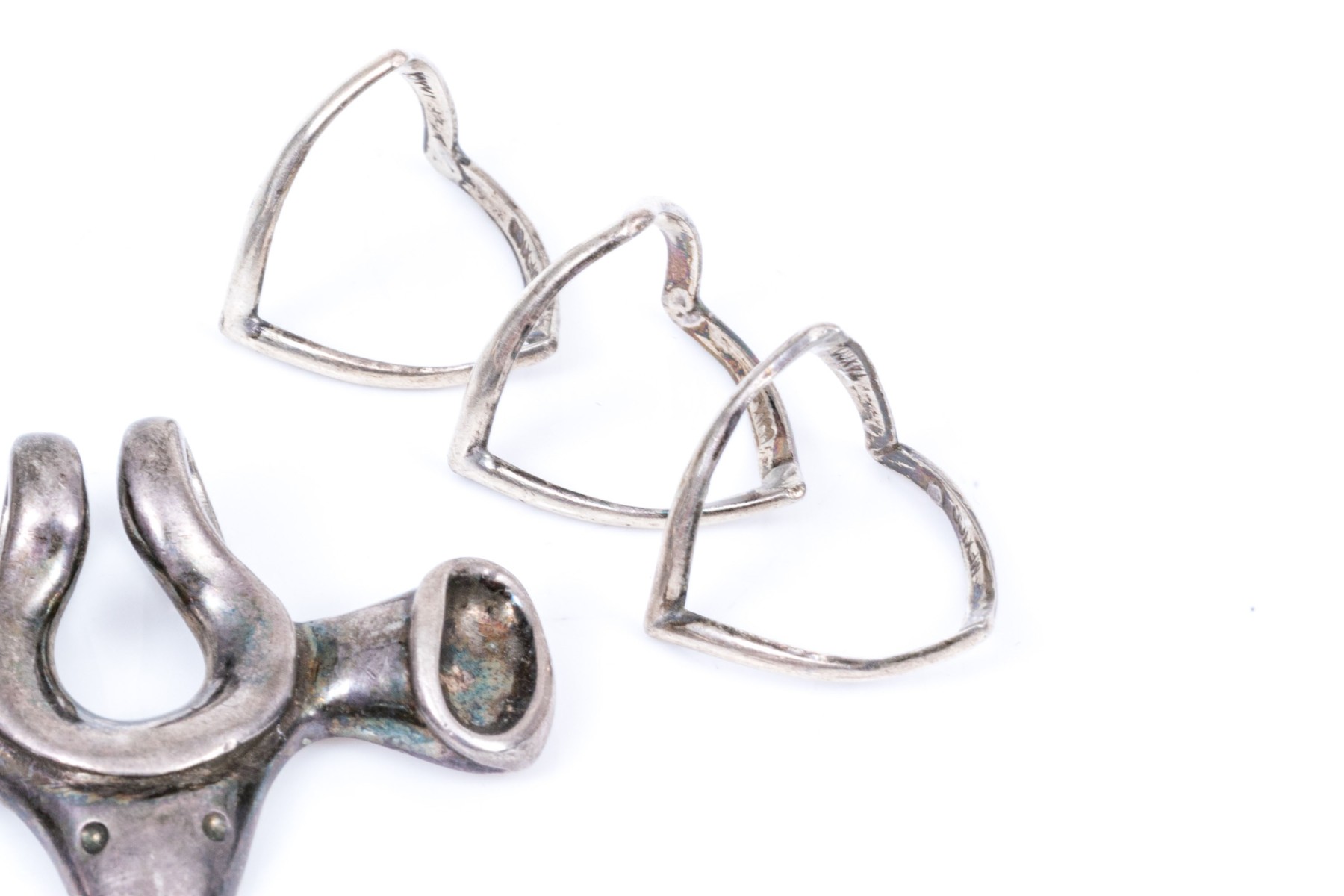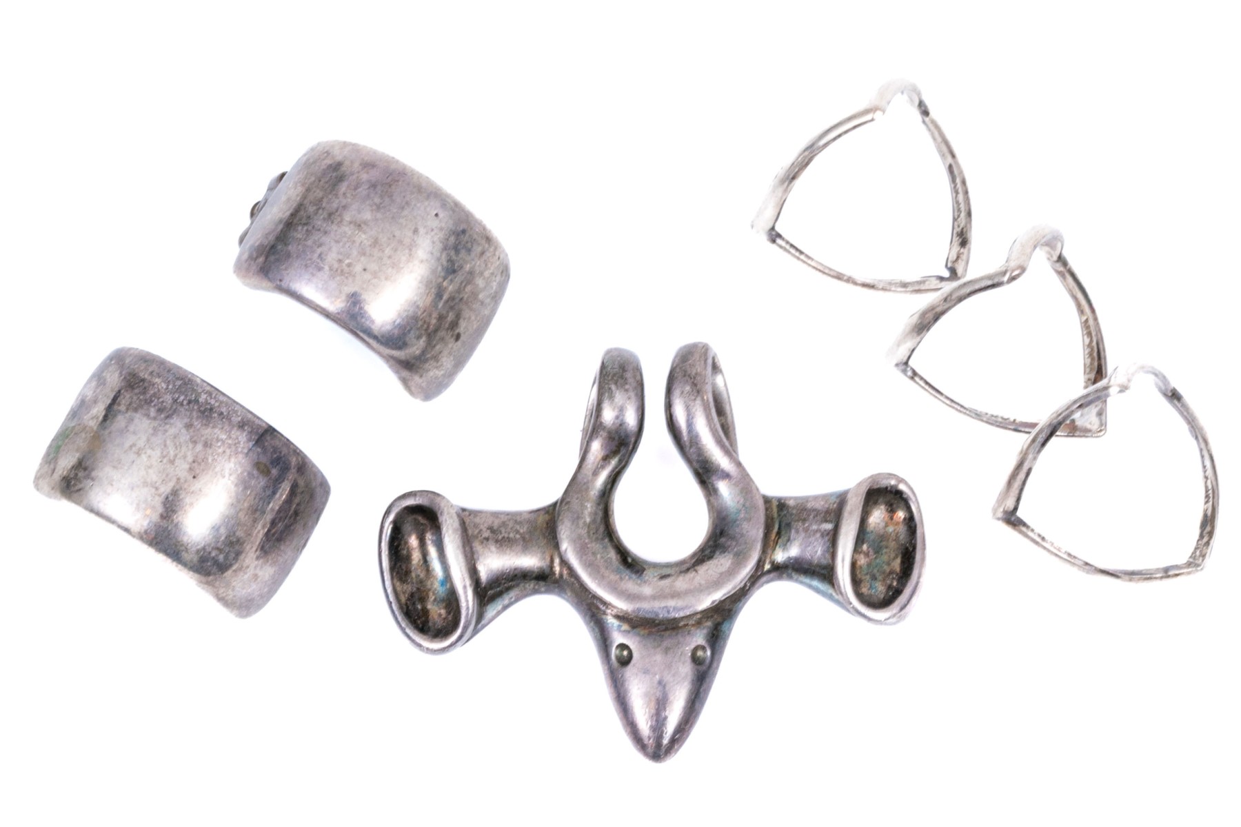 Lot of three handsome sterling silver jewelry pieces, including Lalalounis and Taxco, ring size 5.75
