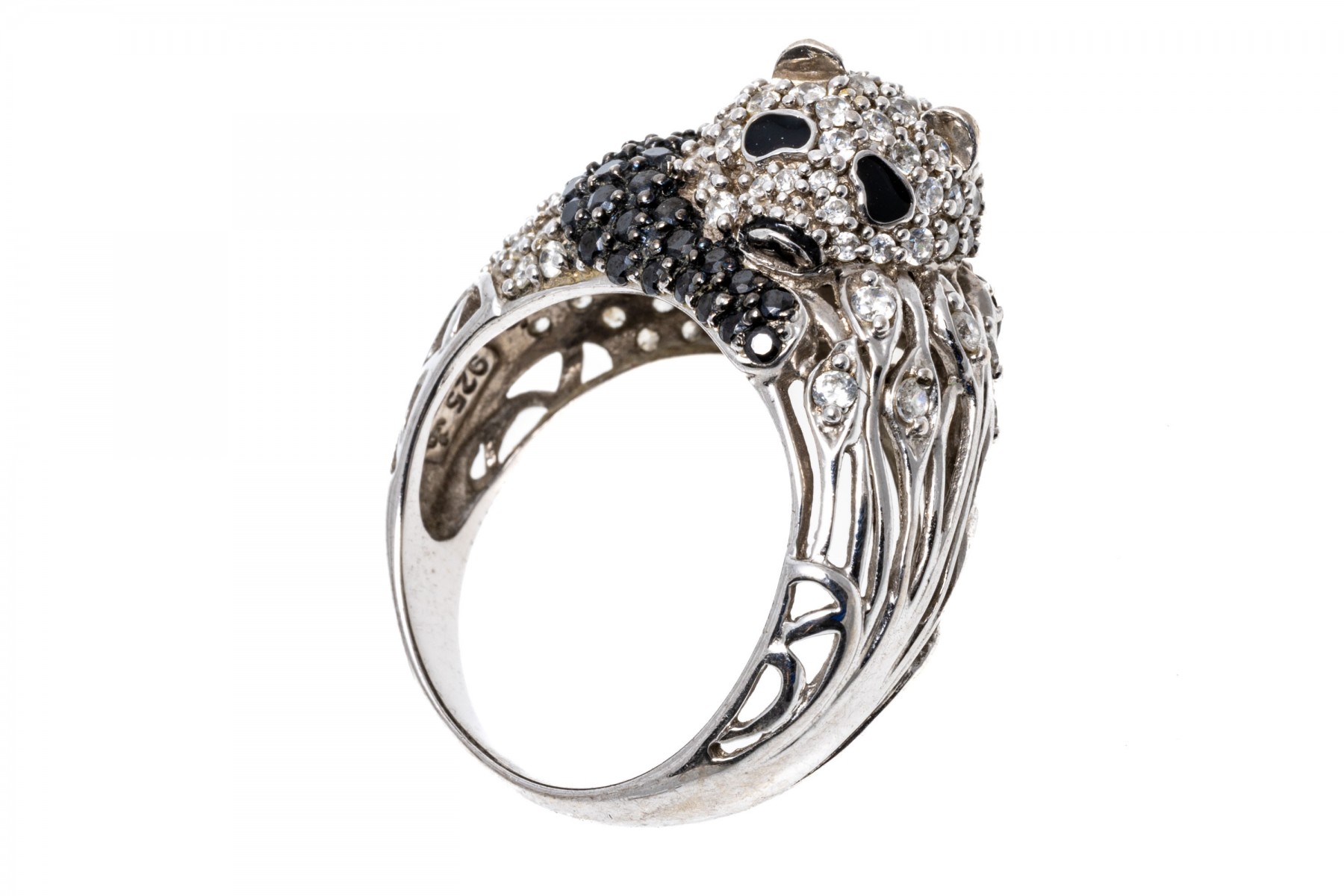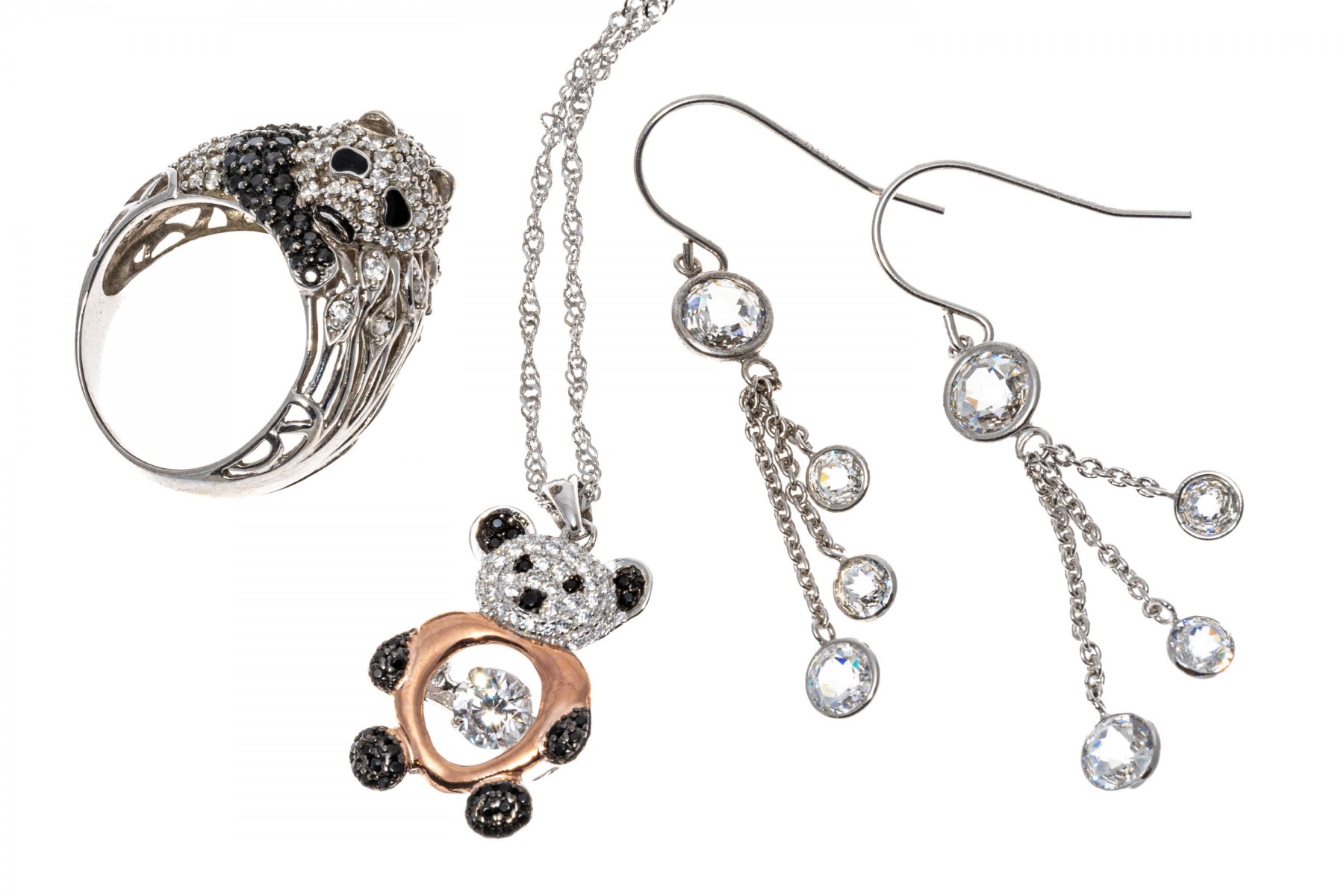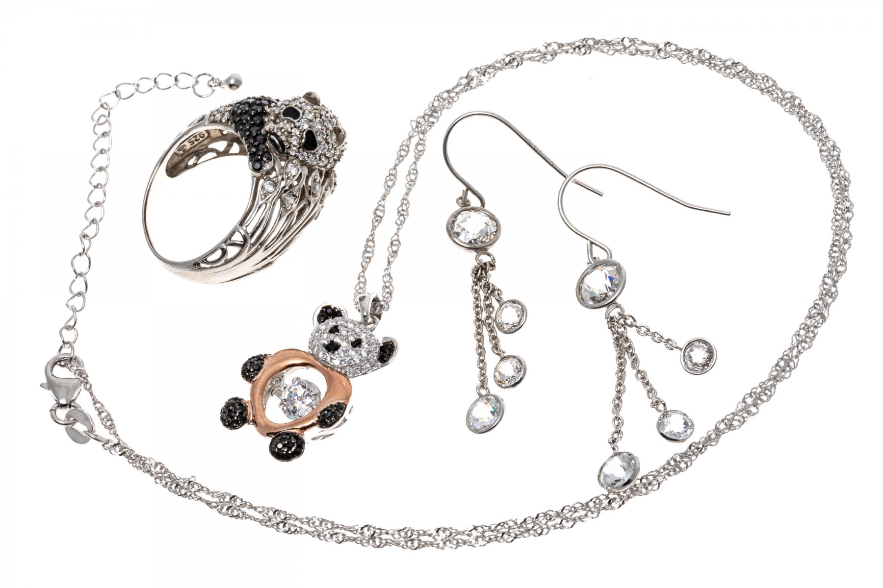 Lot of three sterling silver and CZ jewelry pieces, including panda motif jewelry