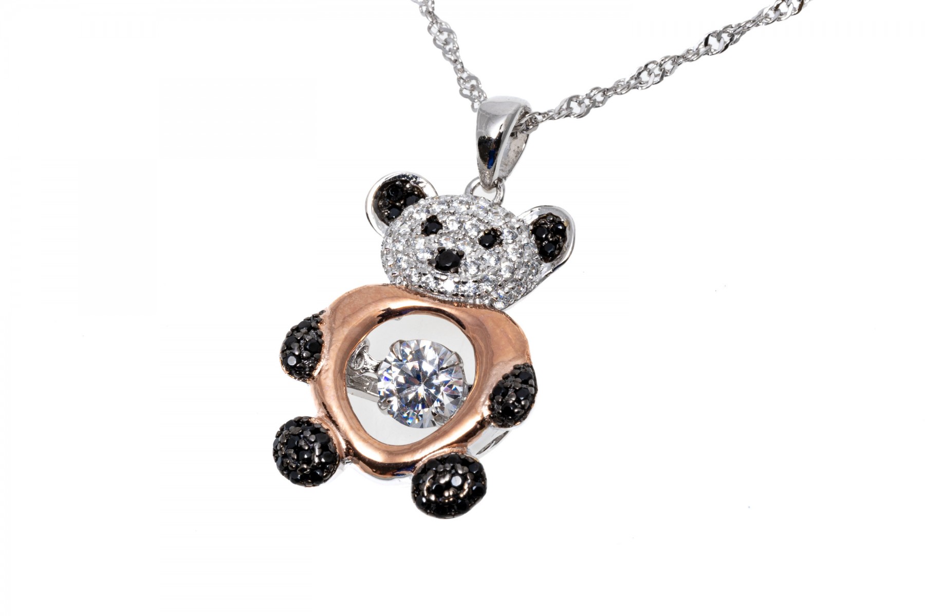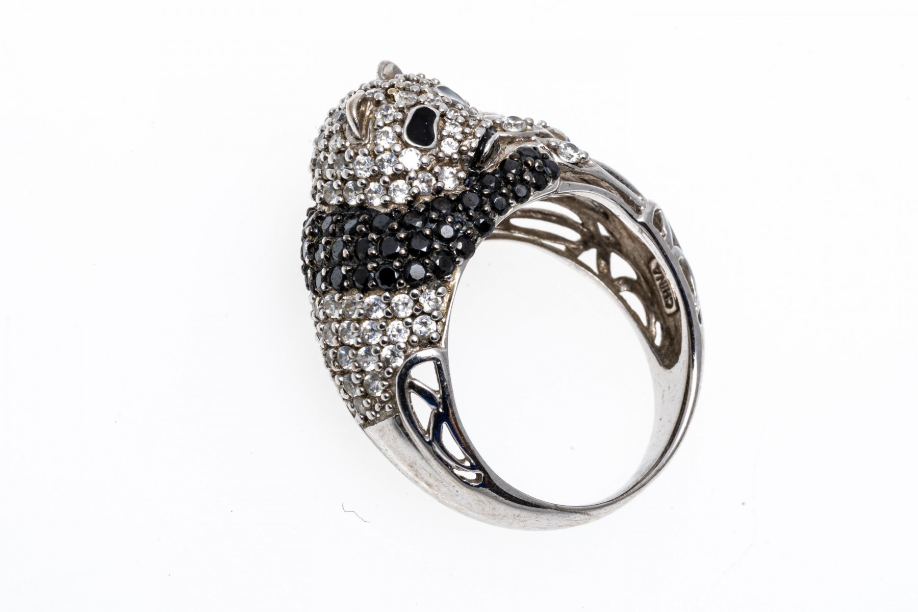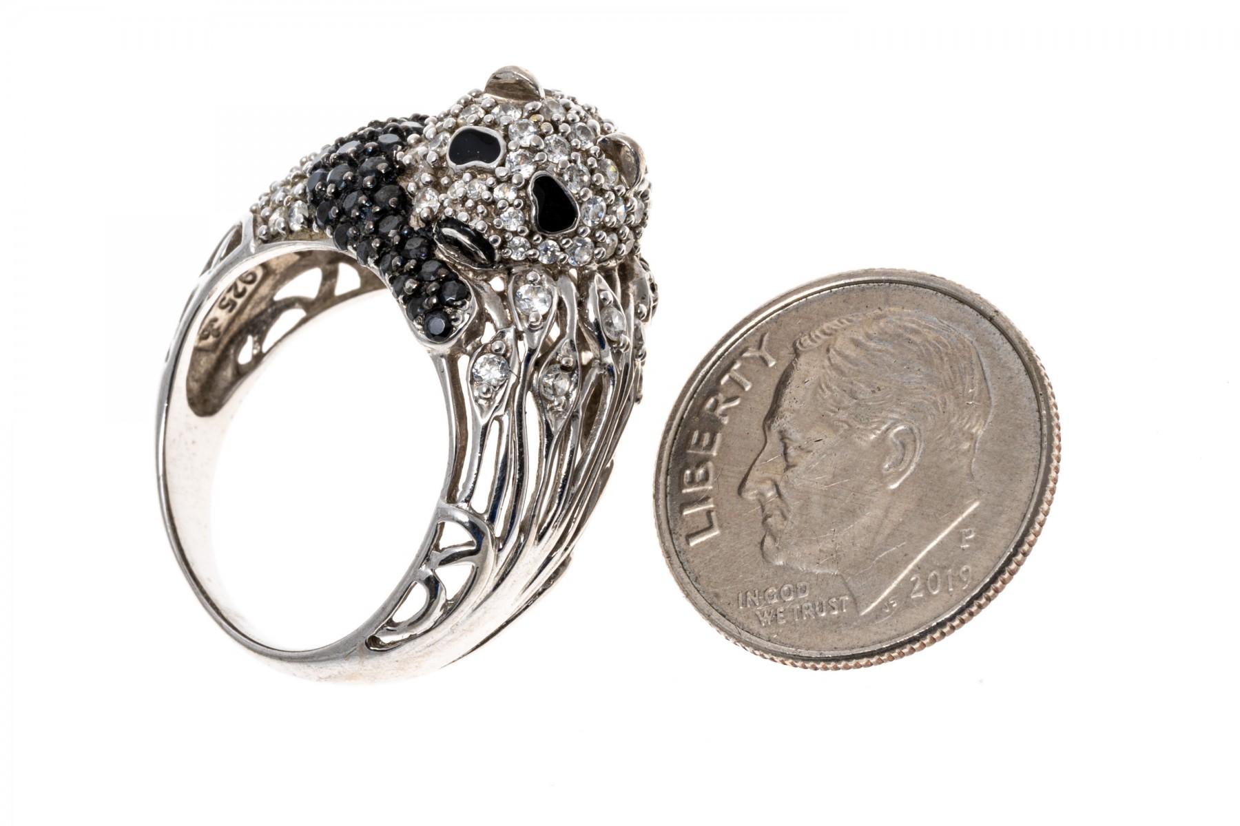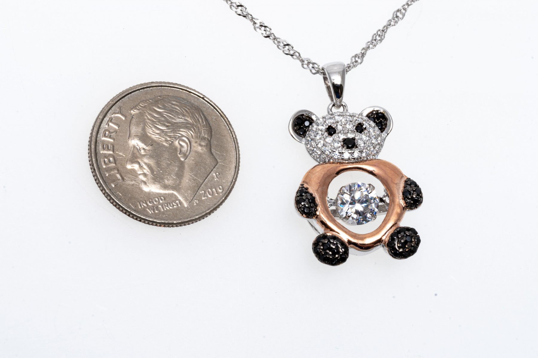 Lot of three sterling silver and CZ jewelry pieces, including panda motif jewelry