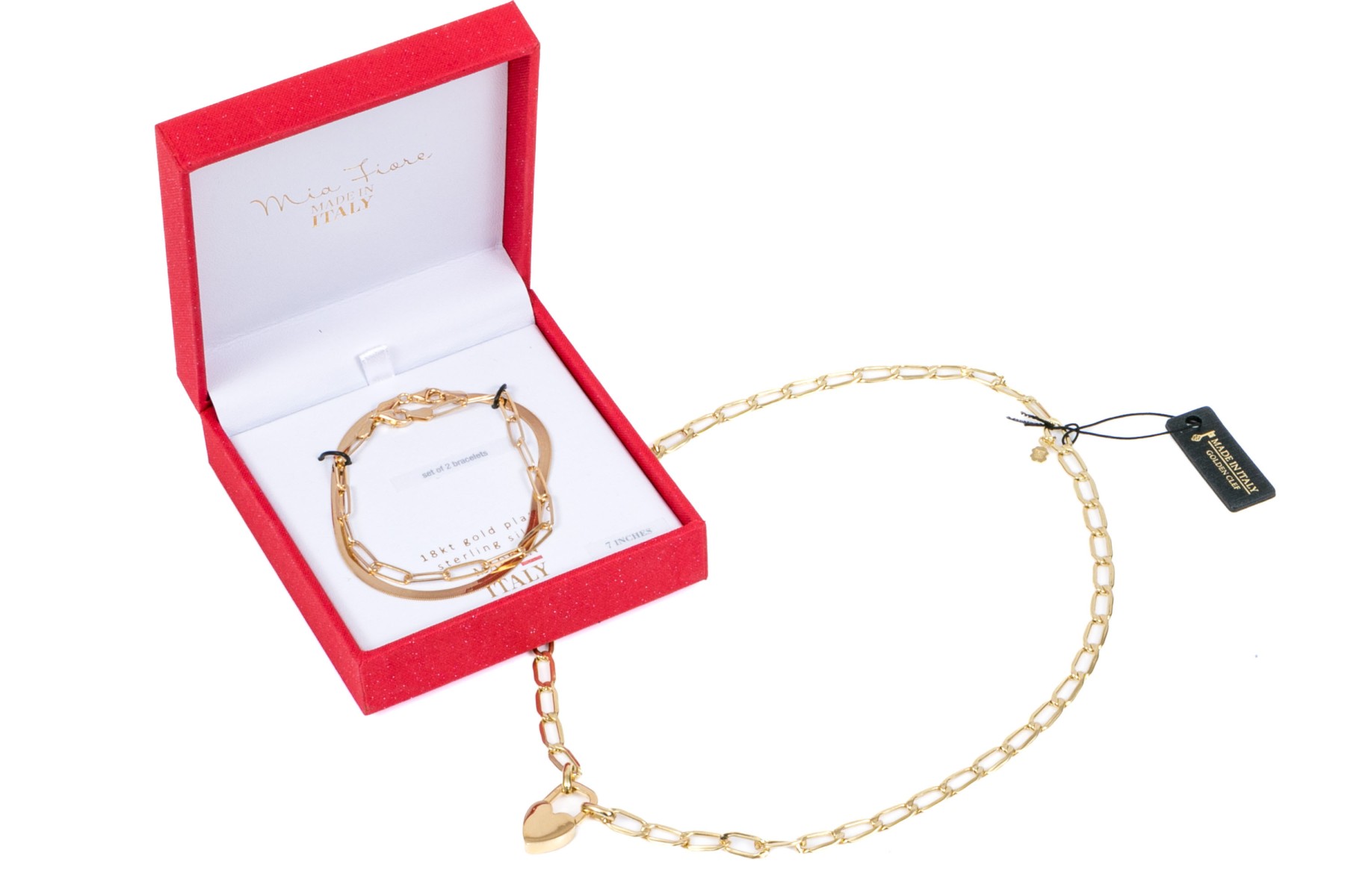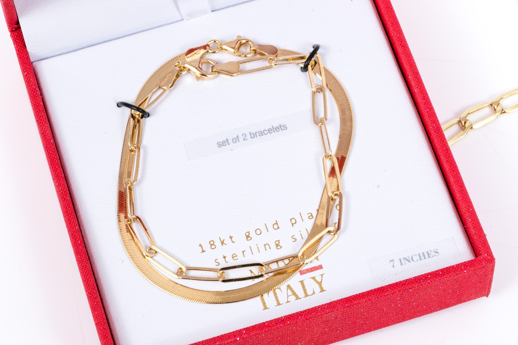 Lot of three sterling silver vermeil jewelry pieces, including a necklace and two bracelets
