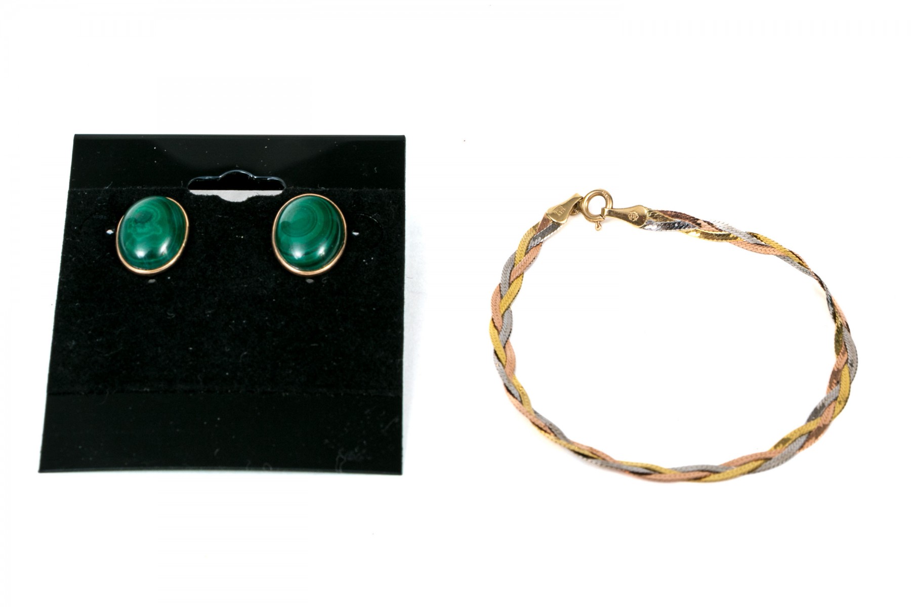 Lot of two 14k gold jewelry pieces including a bracelet and earrings