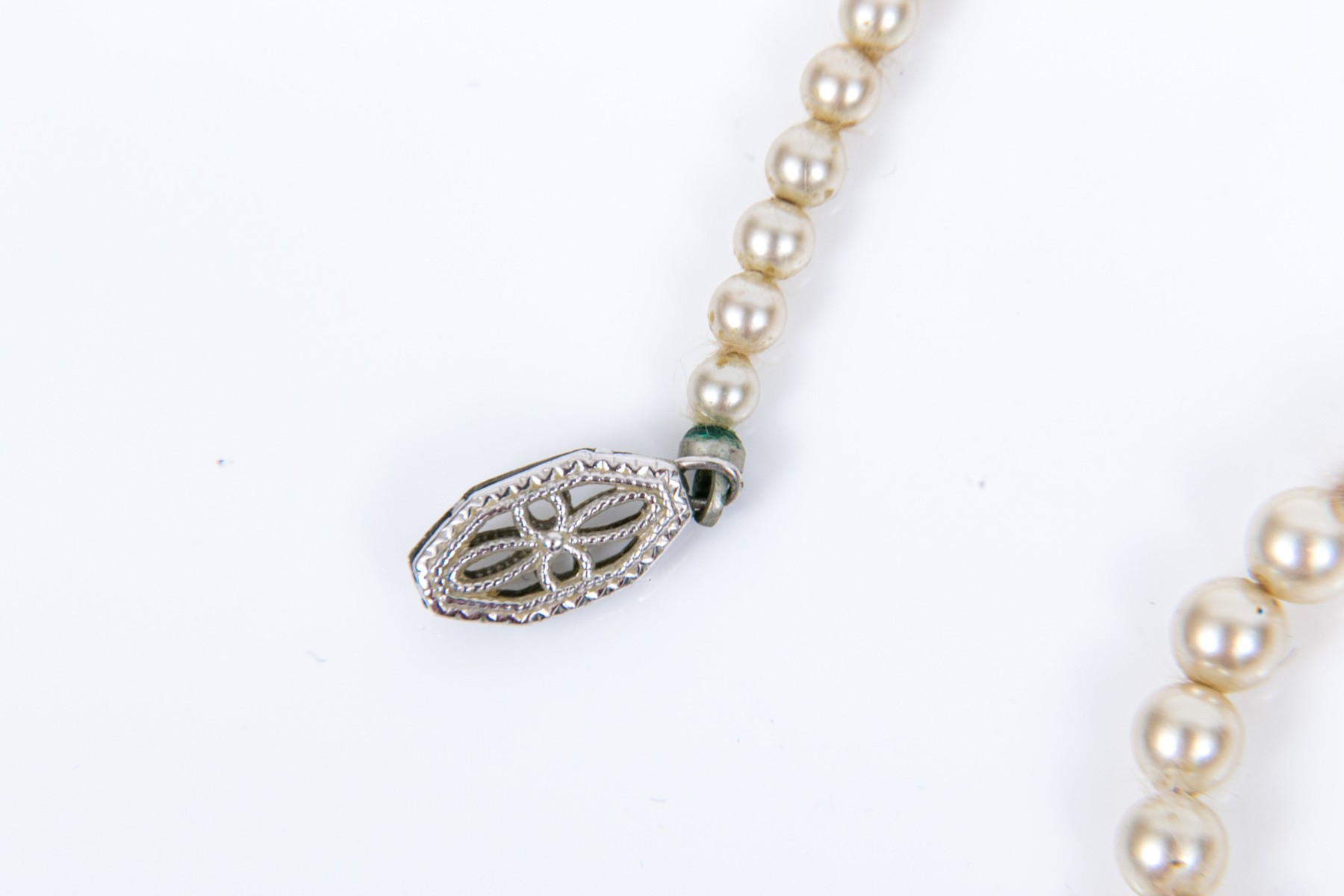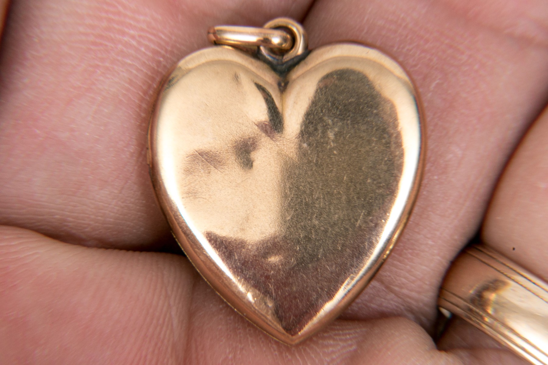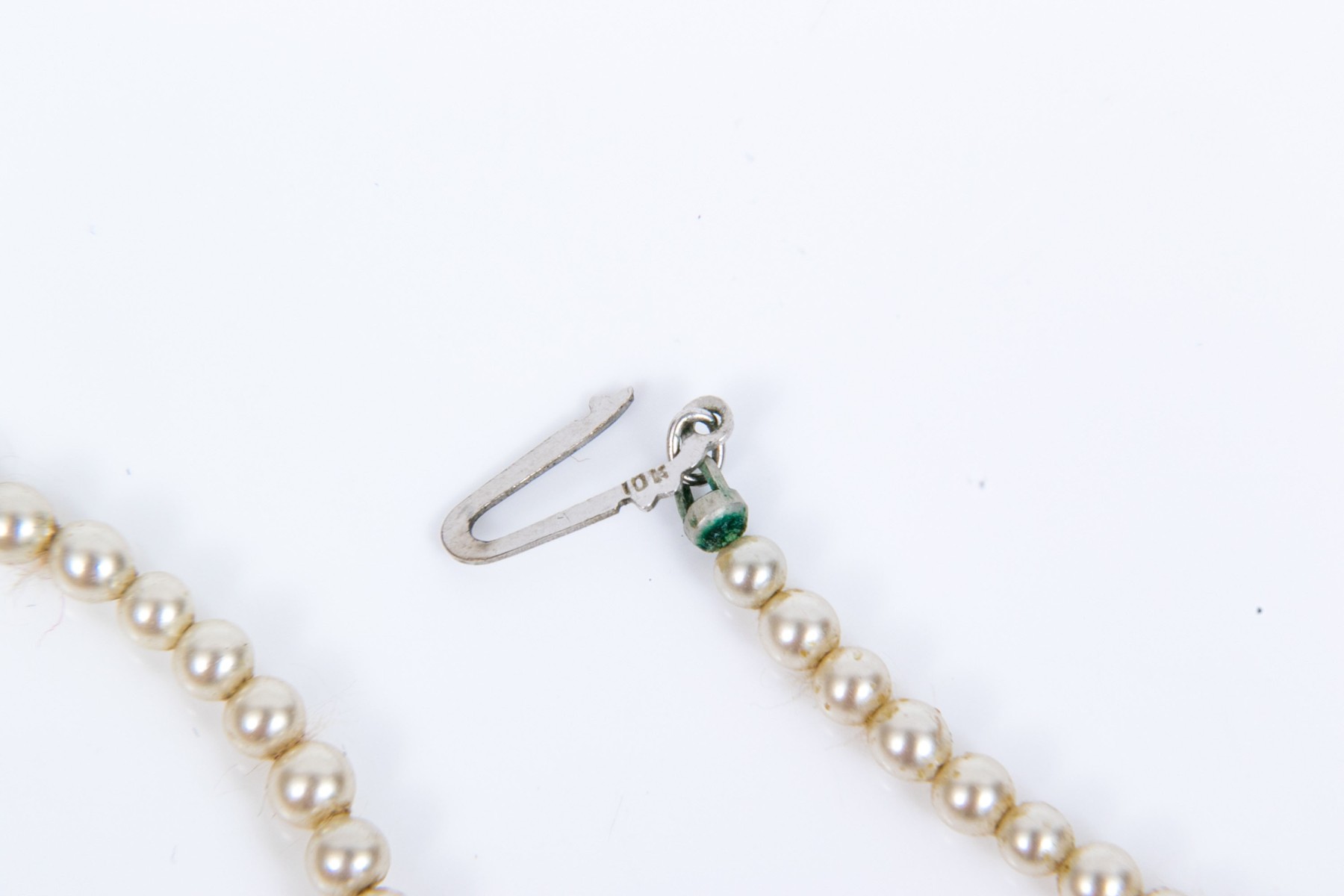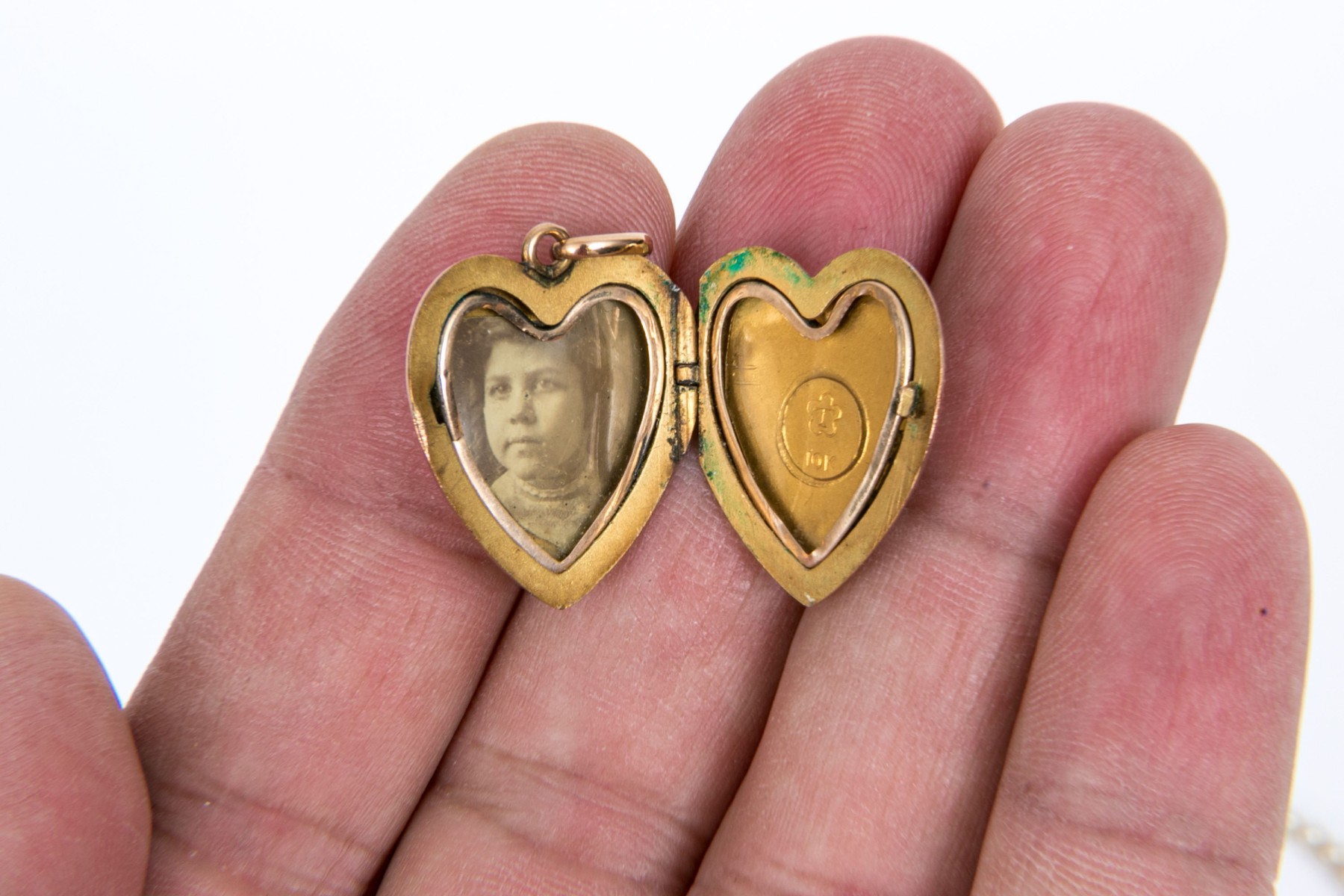 Lot of two assorted 10k jewelry pieces, including a locket and a faux pearl strand