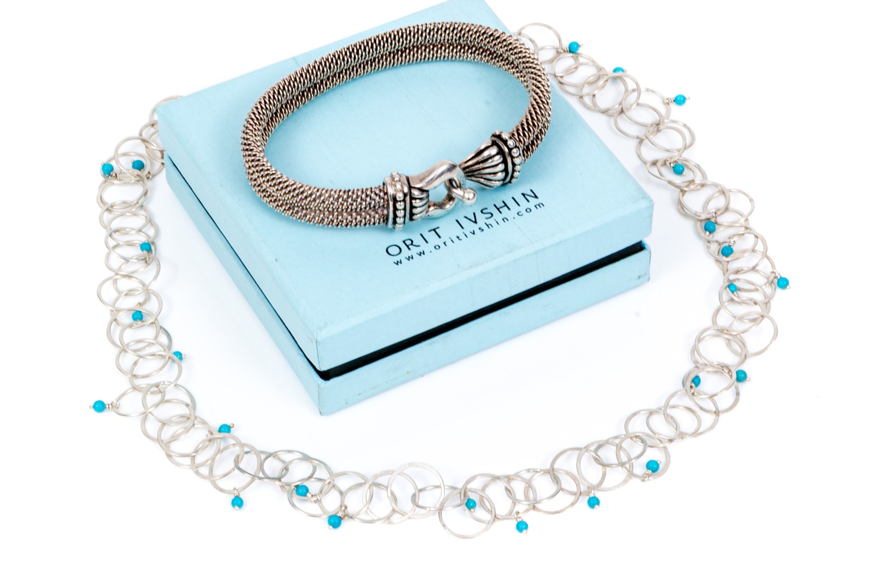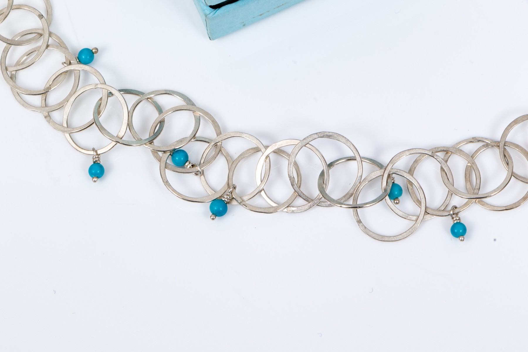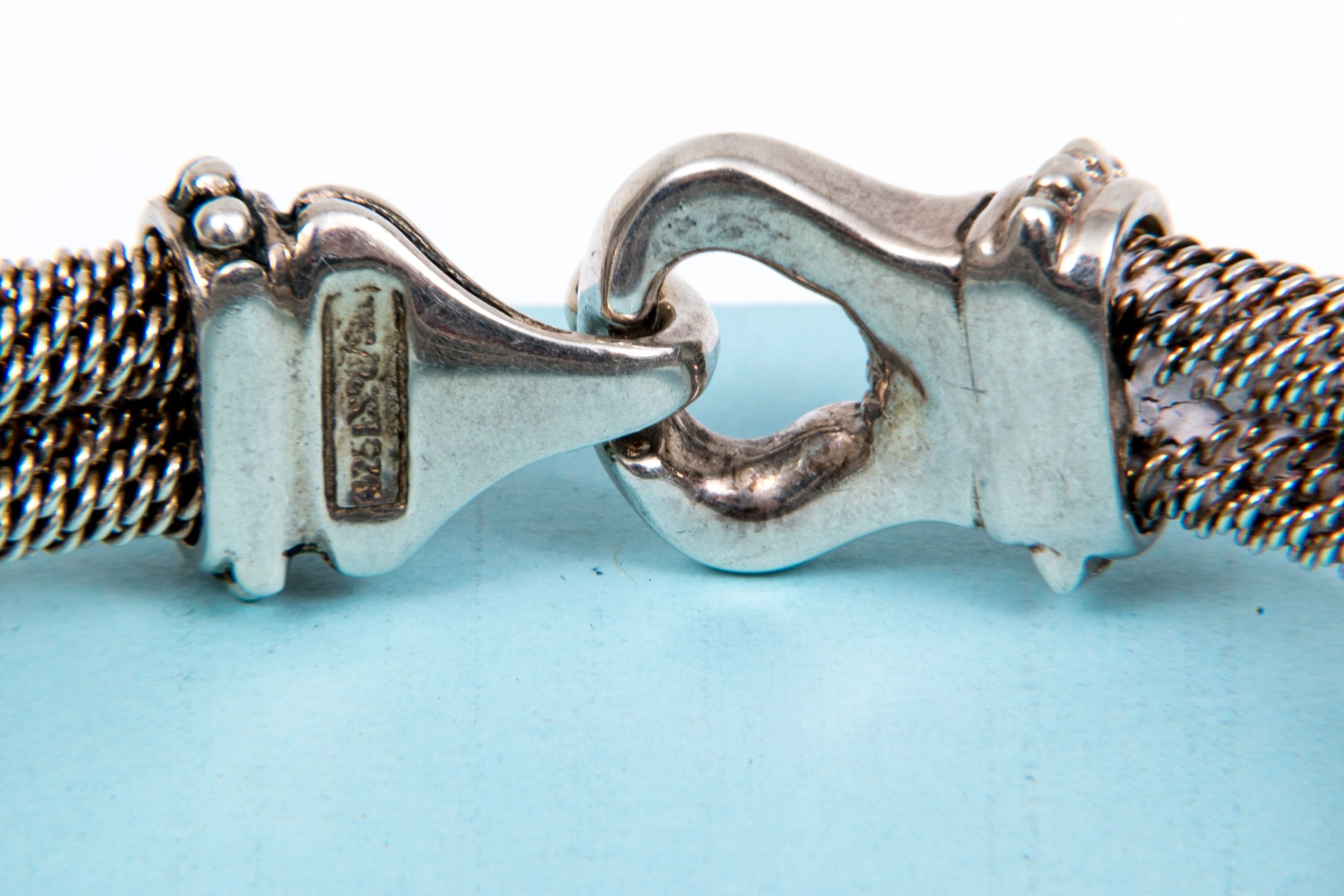 Lot of two fun sterling silver jewelry pieces, including a link necklace and mesh bracelet