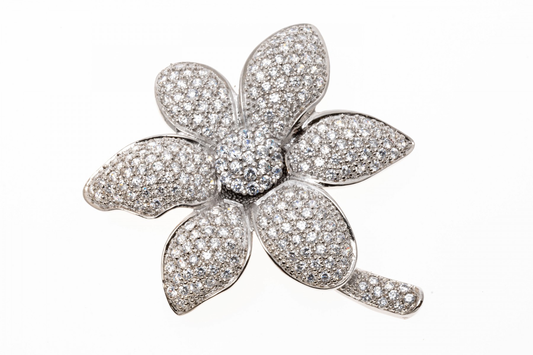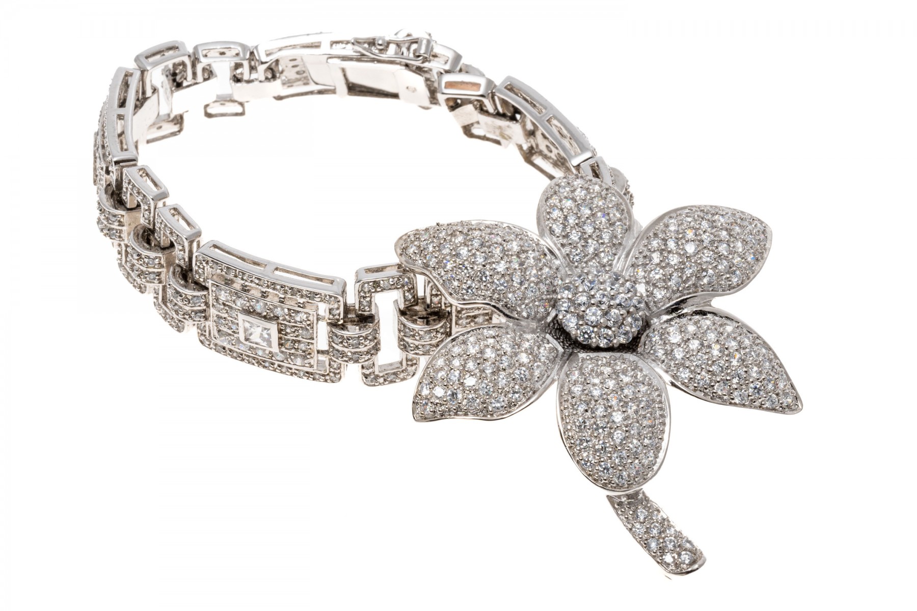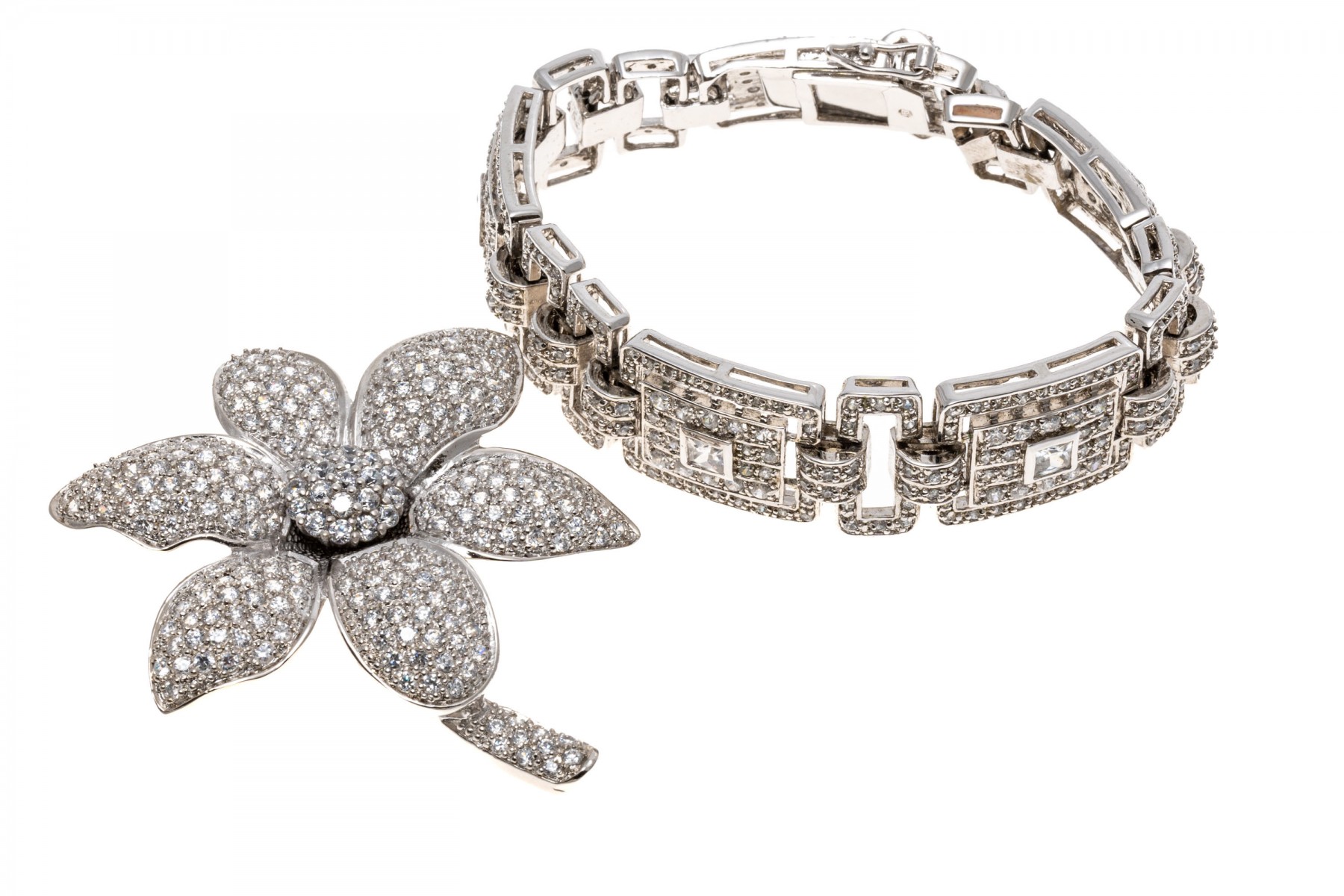 Lot of two glittering sterling silver jewelry and cz pieces, including a bracelet and a brooch