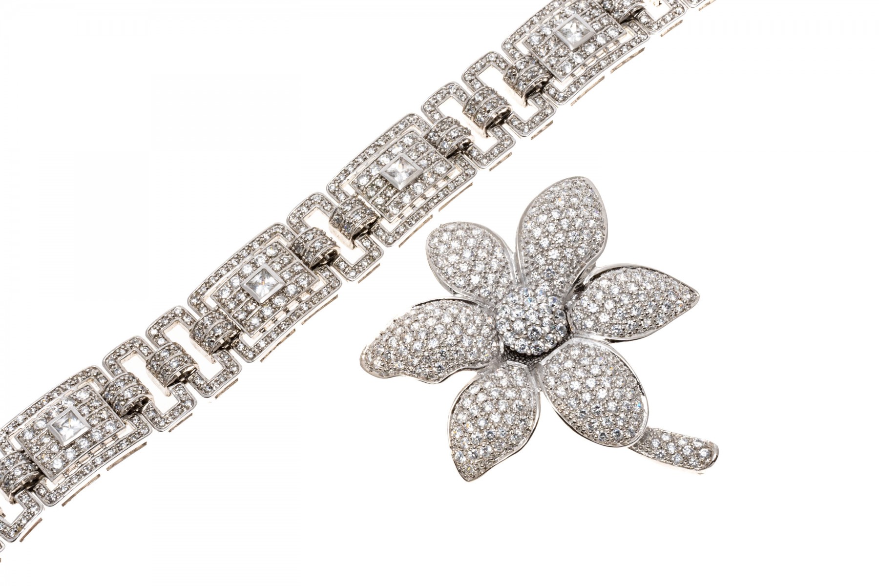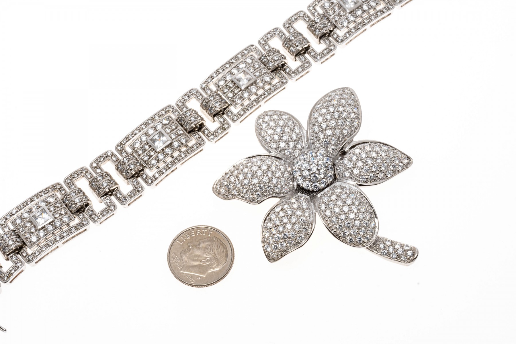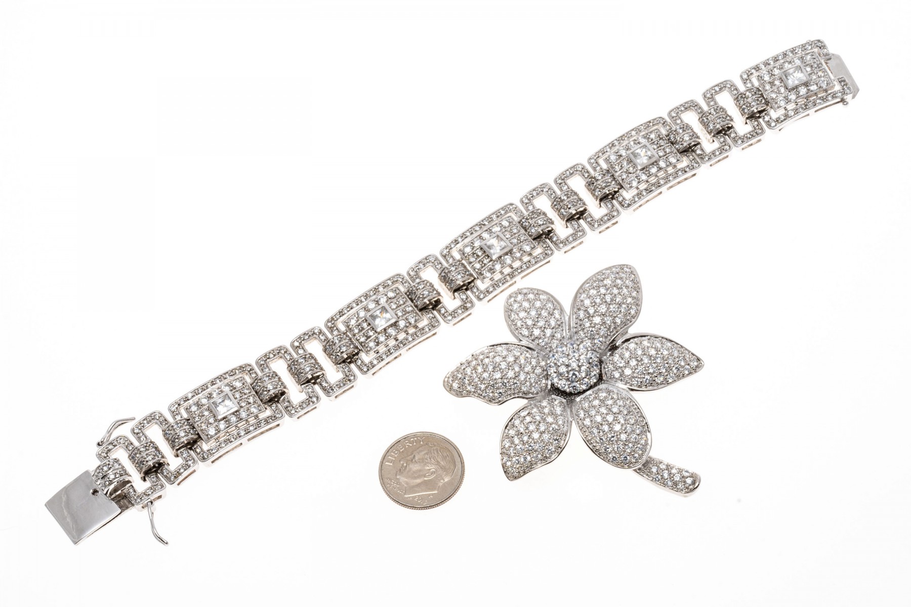 Lot of two glittering sterling silver jewelry and cz pieces, including a bracelet and a brooch