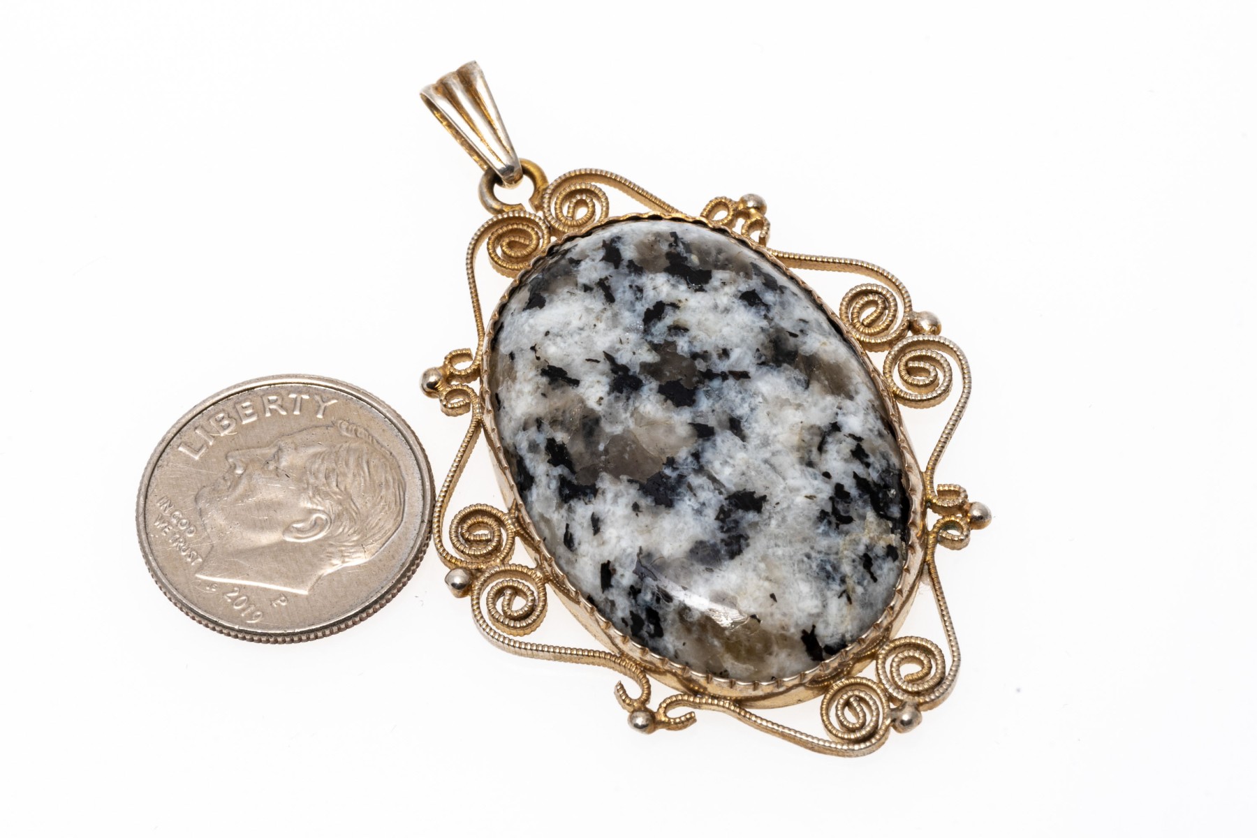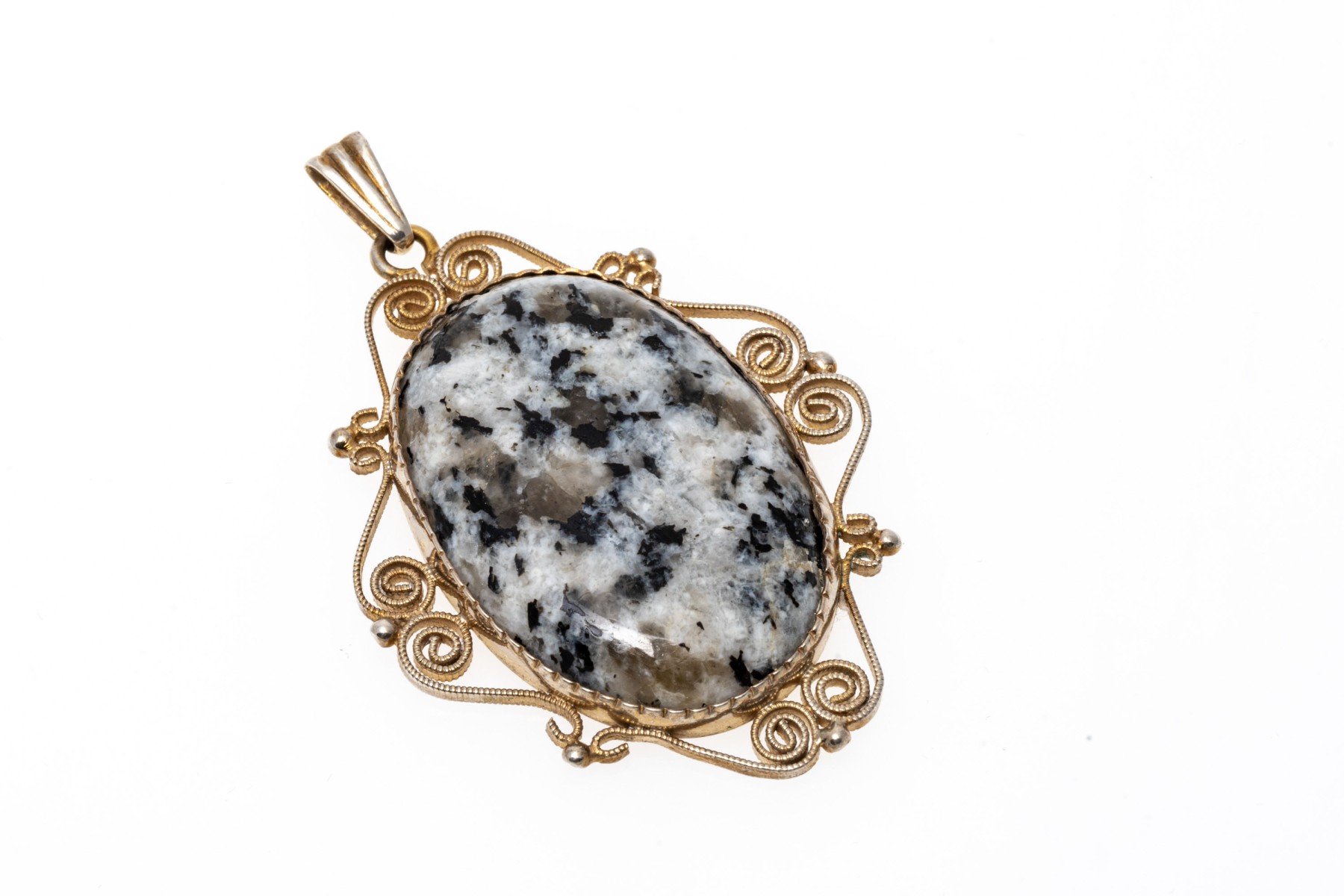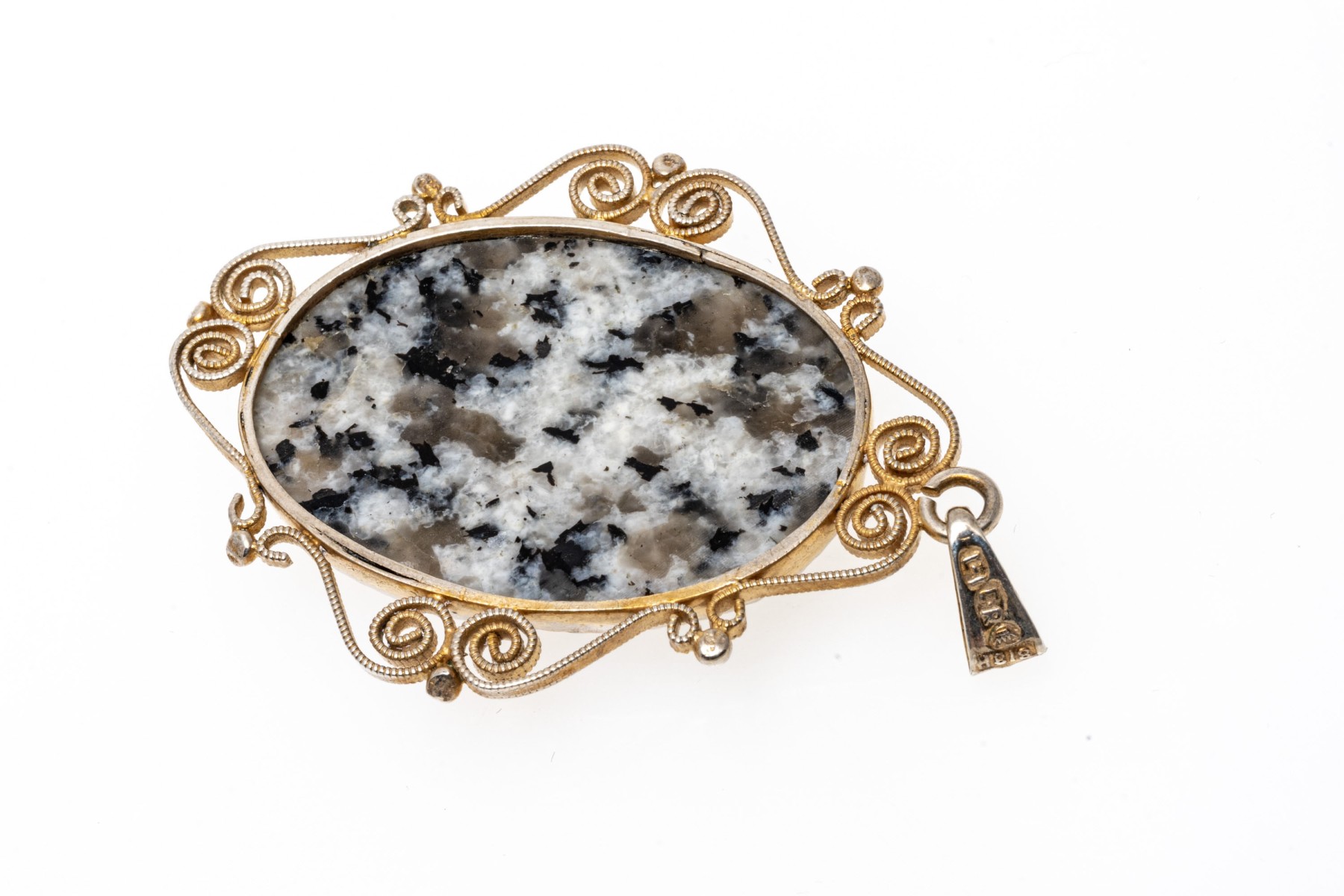 Lot of two jewelry pieces including a pair of 14k cultured pearl earrings and 813 silver scrolled pendant. The earrings are finished by posts and clutch style backs