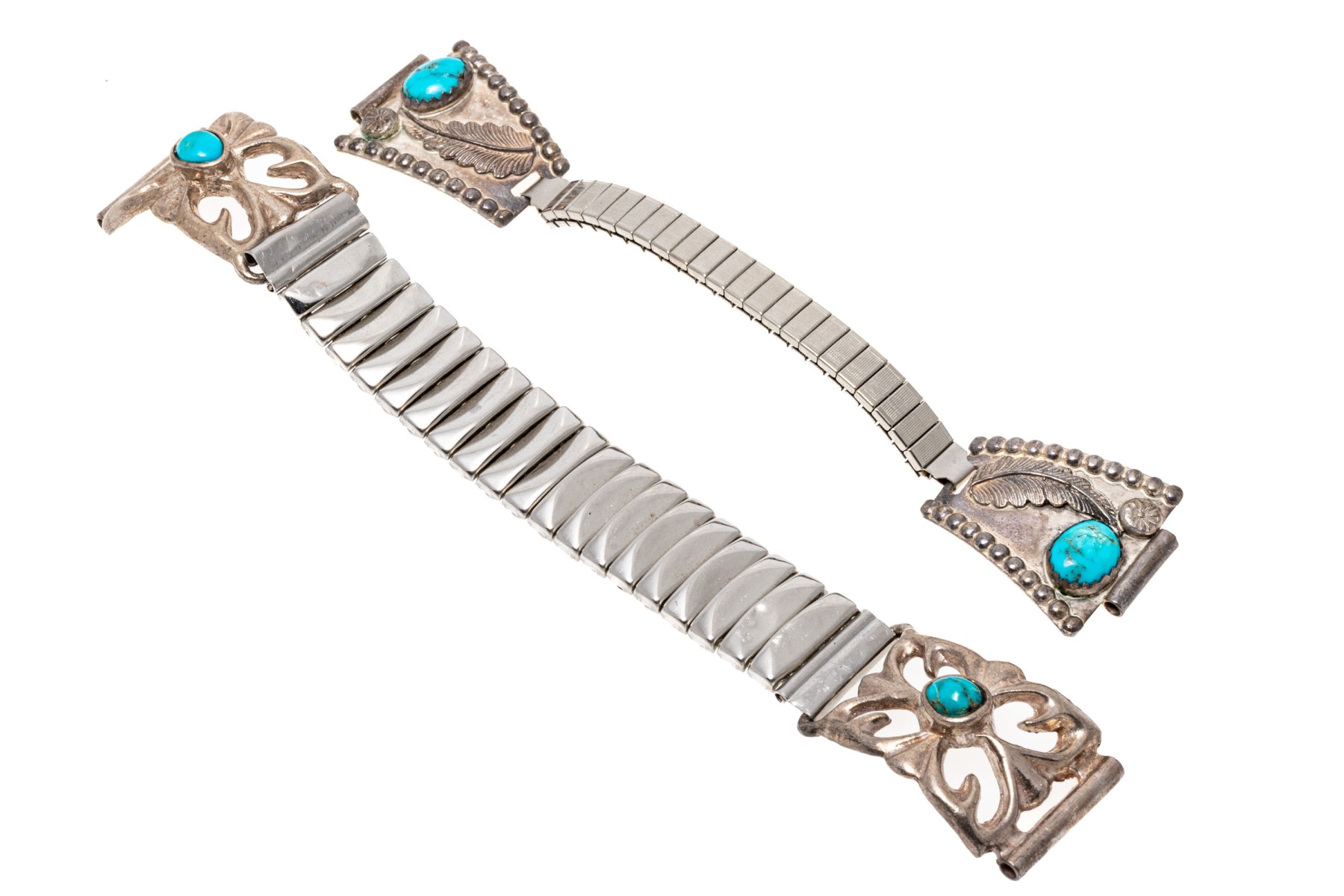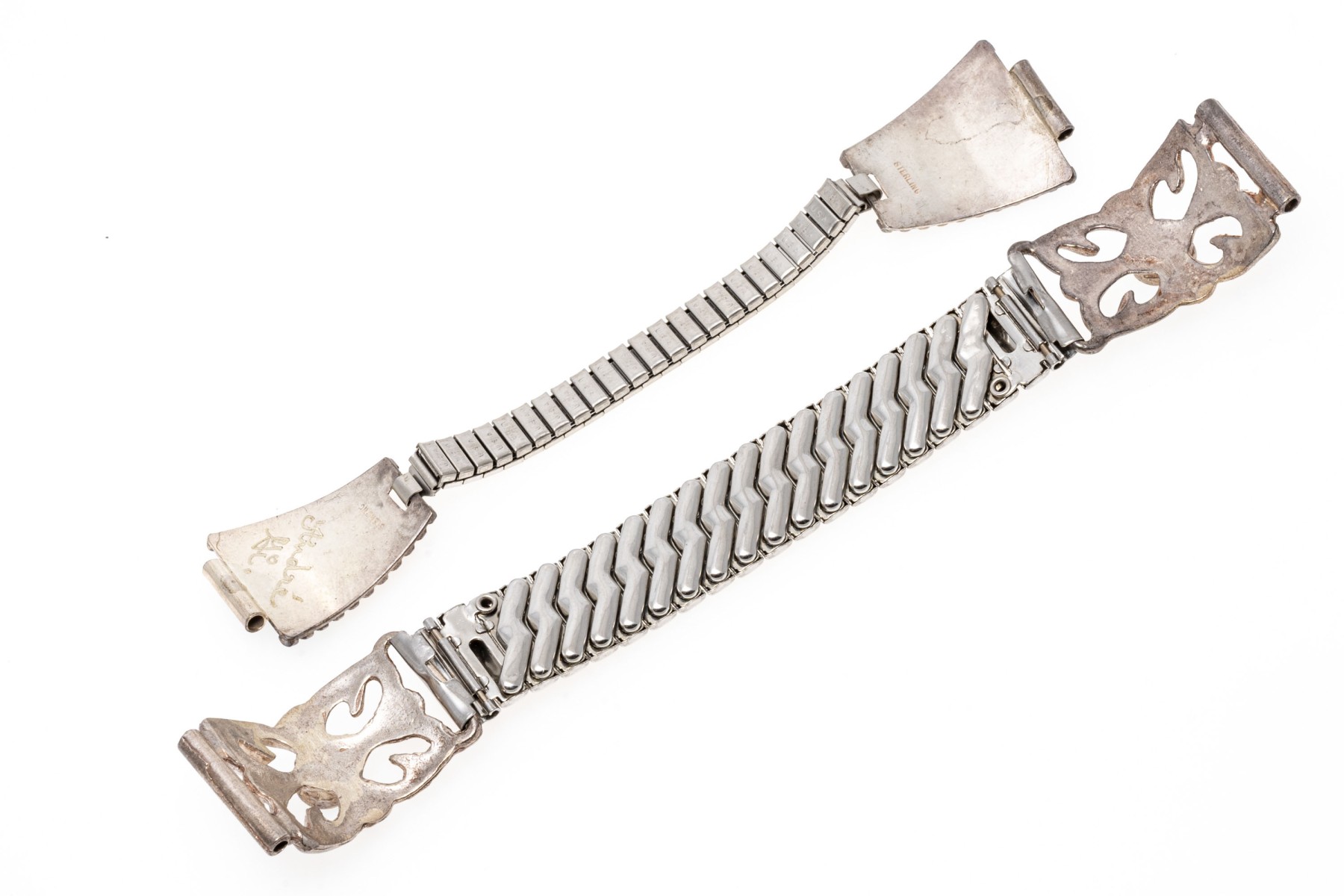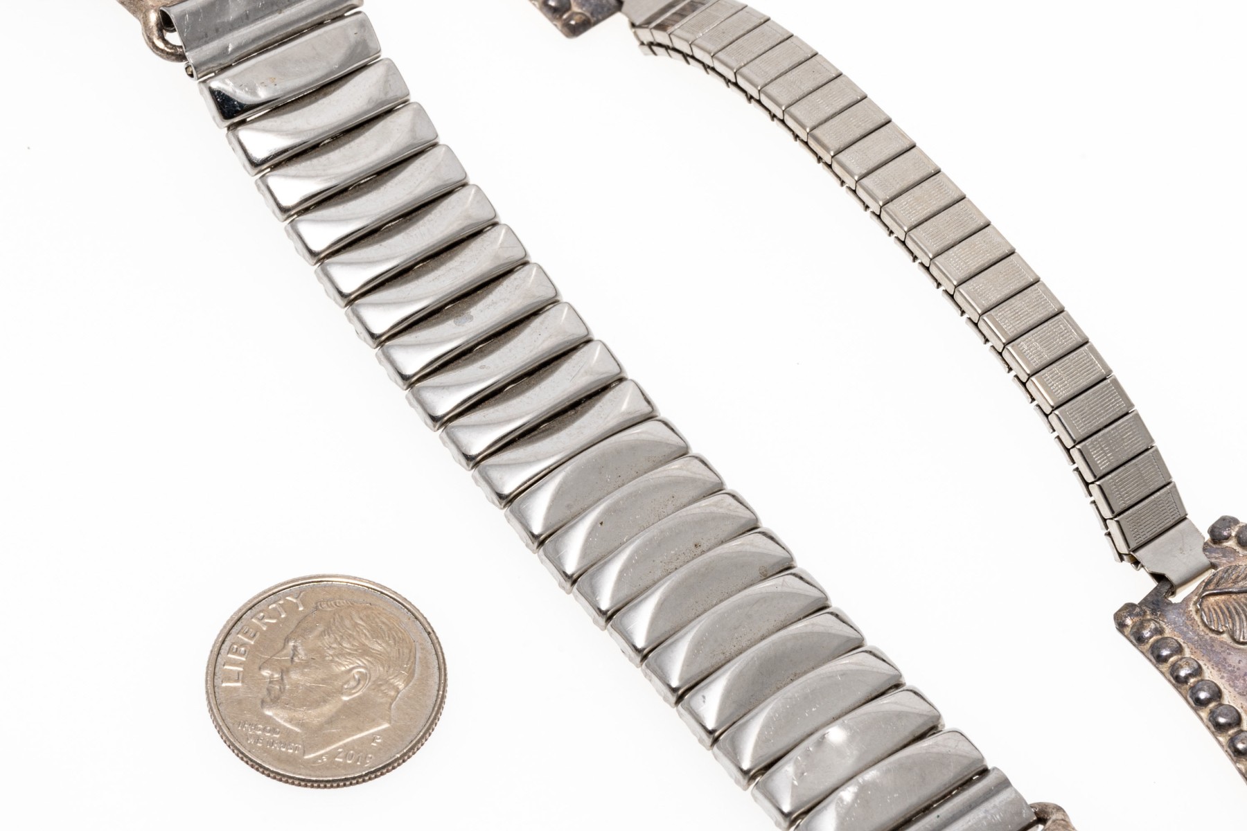 Lot of two Southwestern sterling silver ended expansion style watch bands, with steel expansion sections