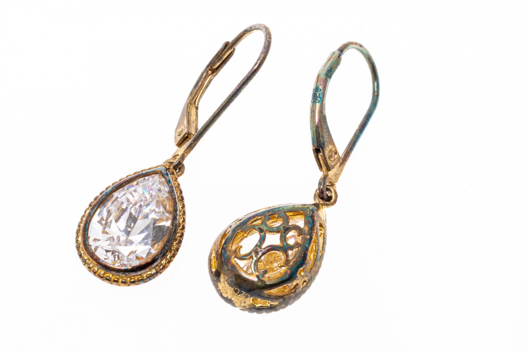 1. Pear shaped cz drop earring with lever backs