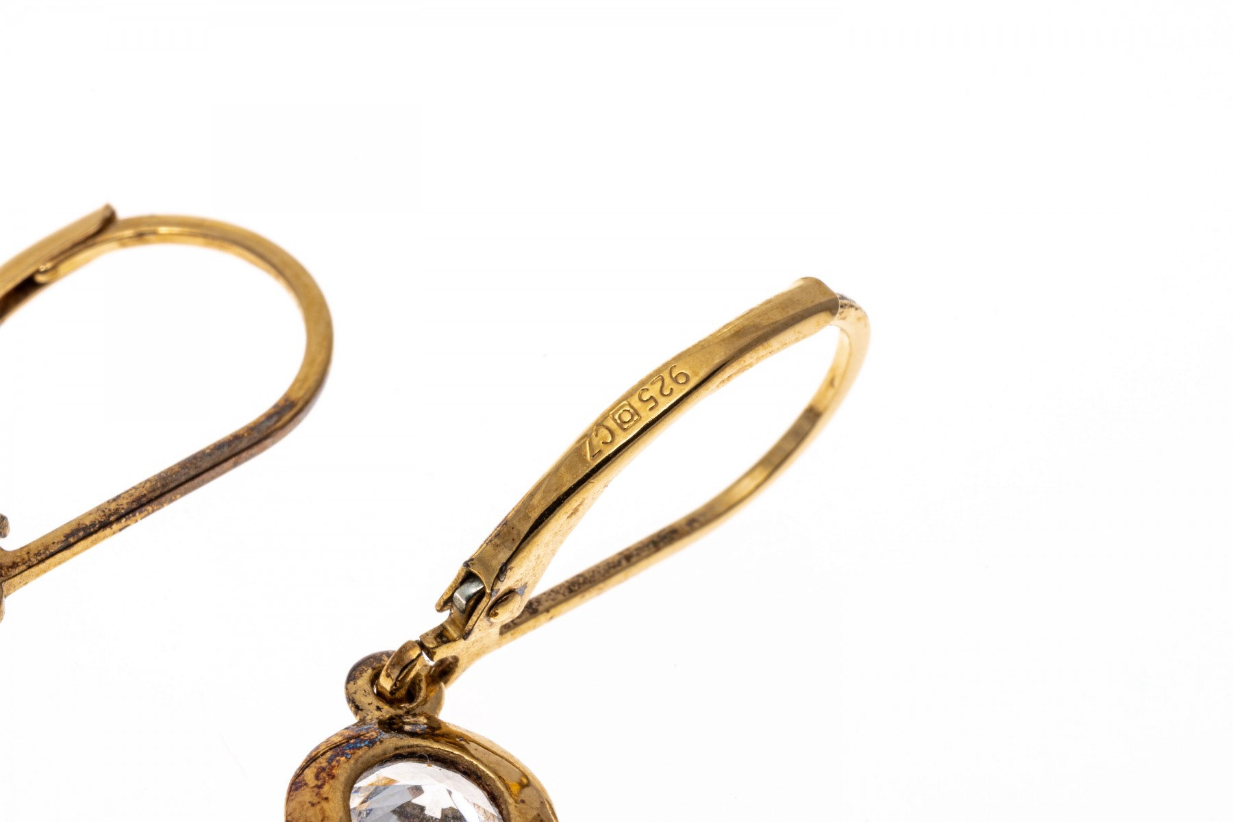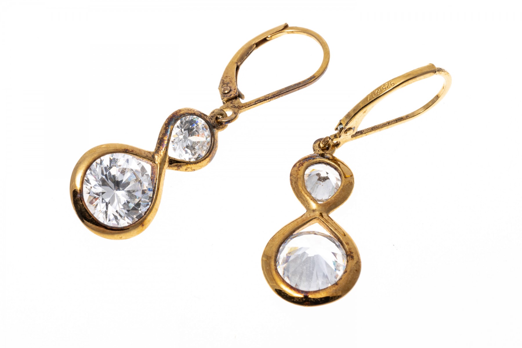Lot of two sterling silver vermeil and cz earrings. The lot includes:
