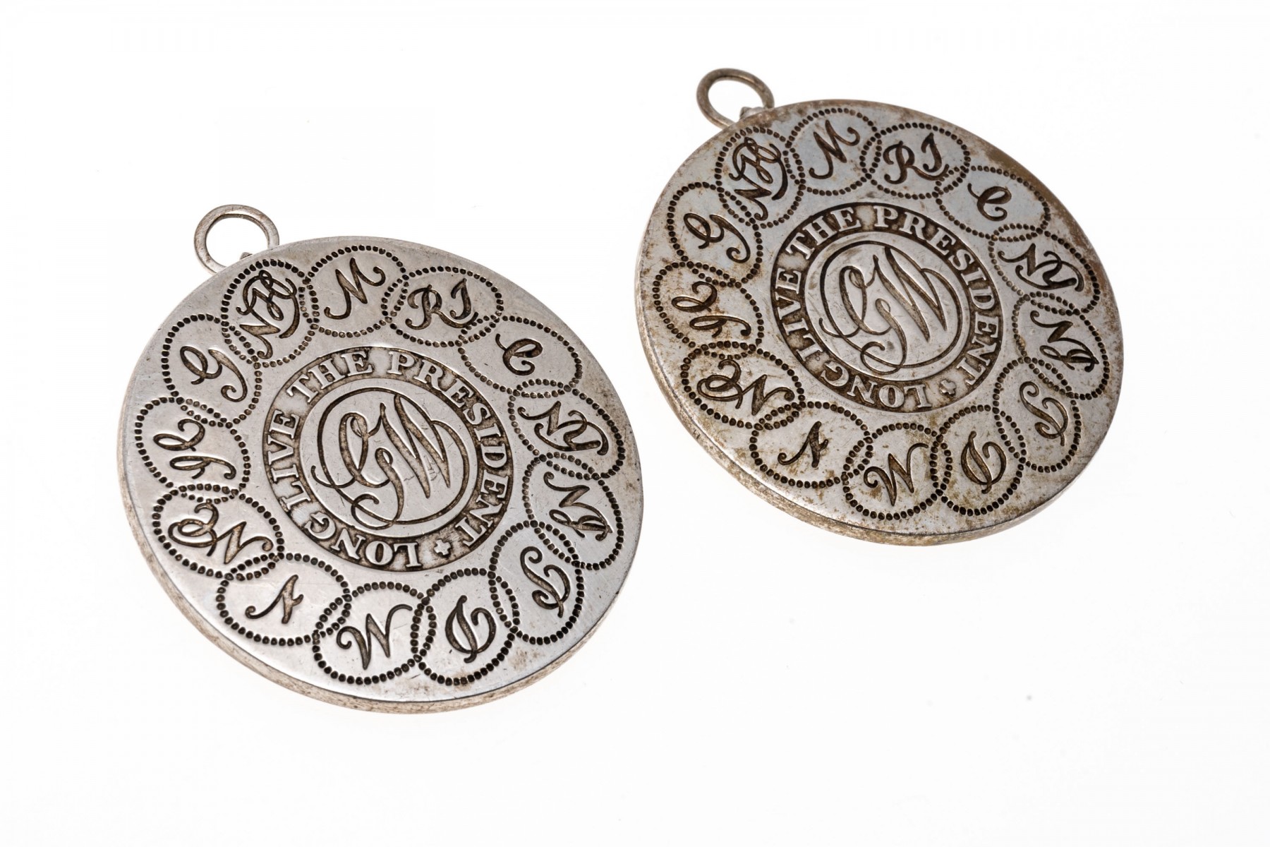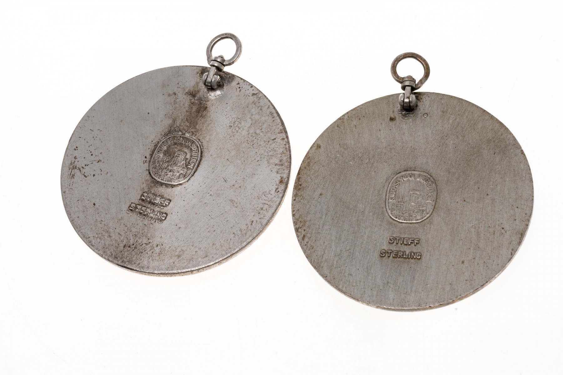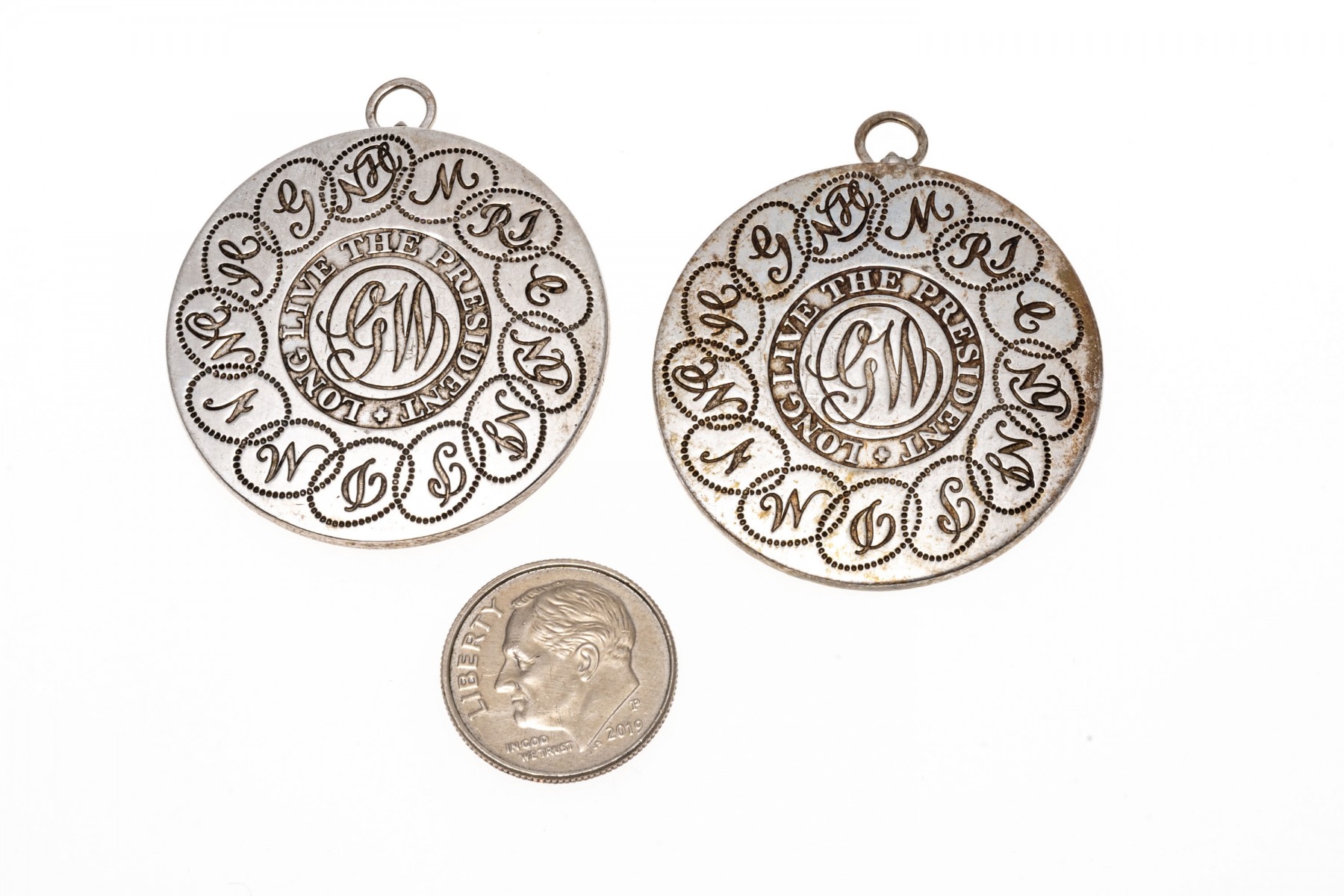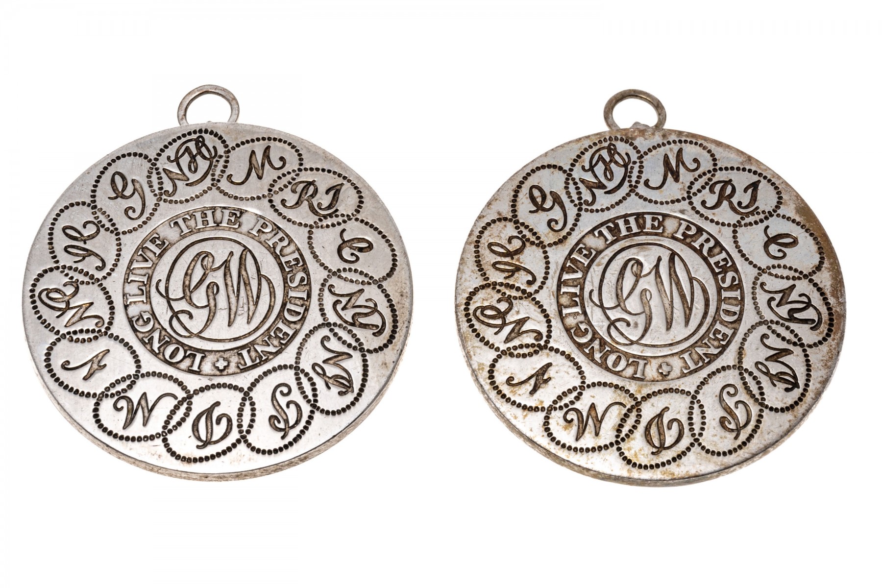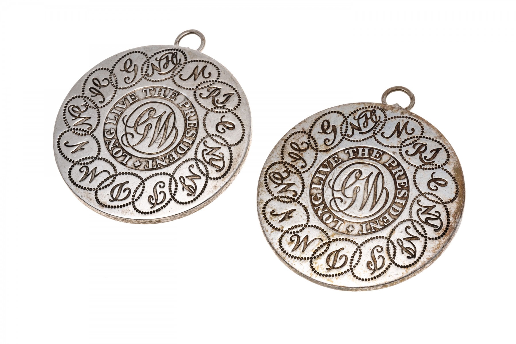 Lot of two Stieff sterling silver George Washington President replica pendants
