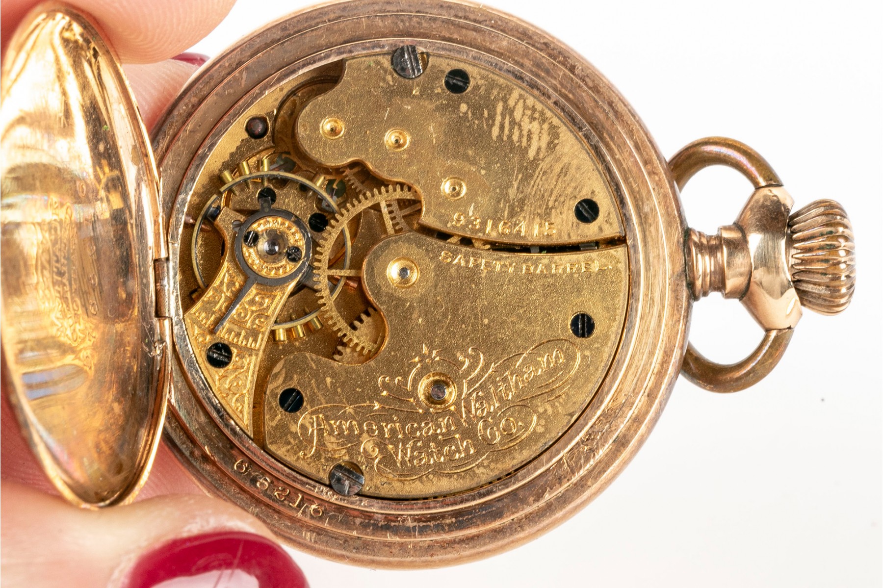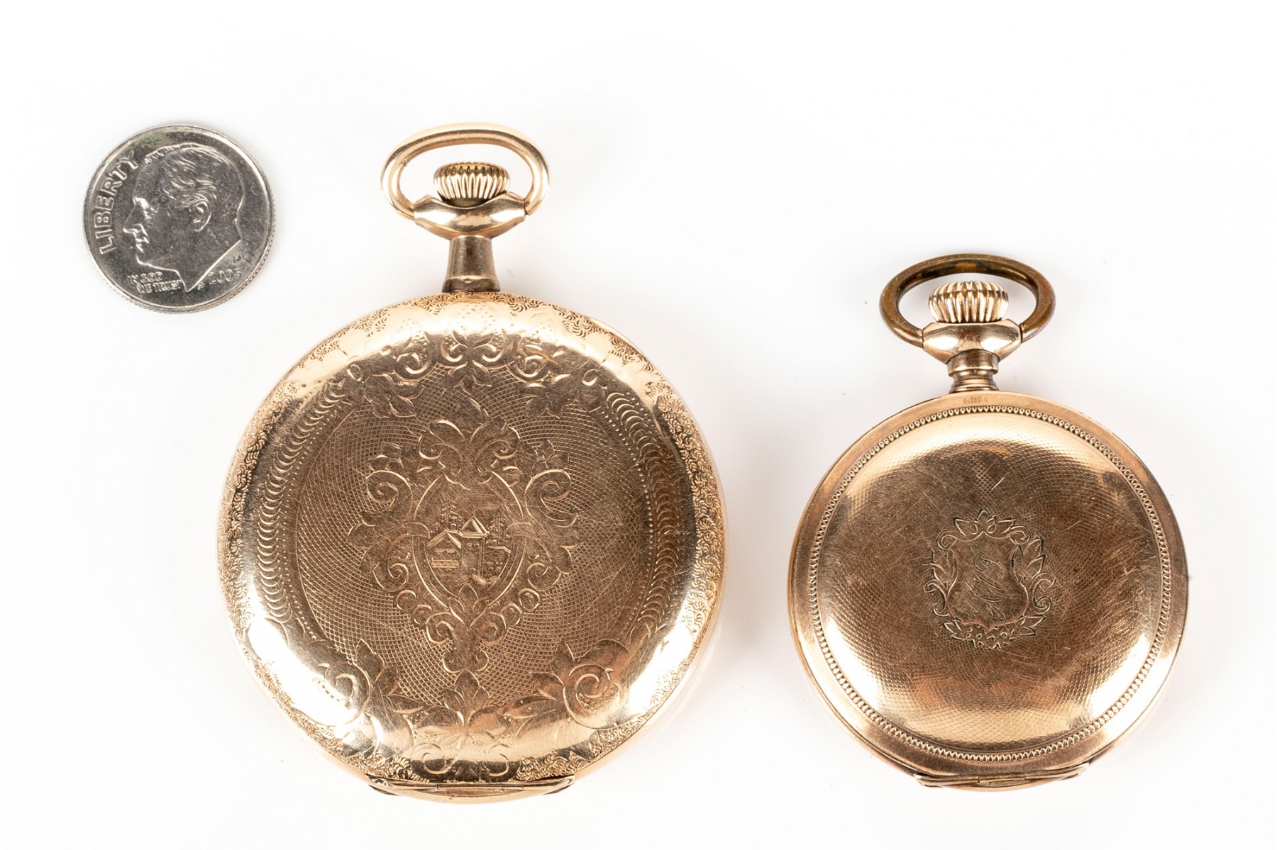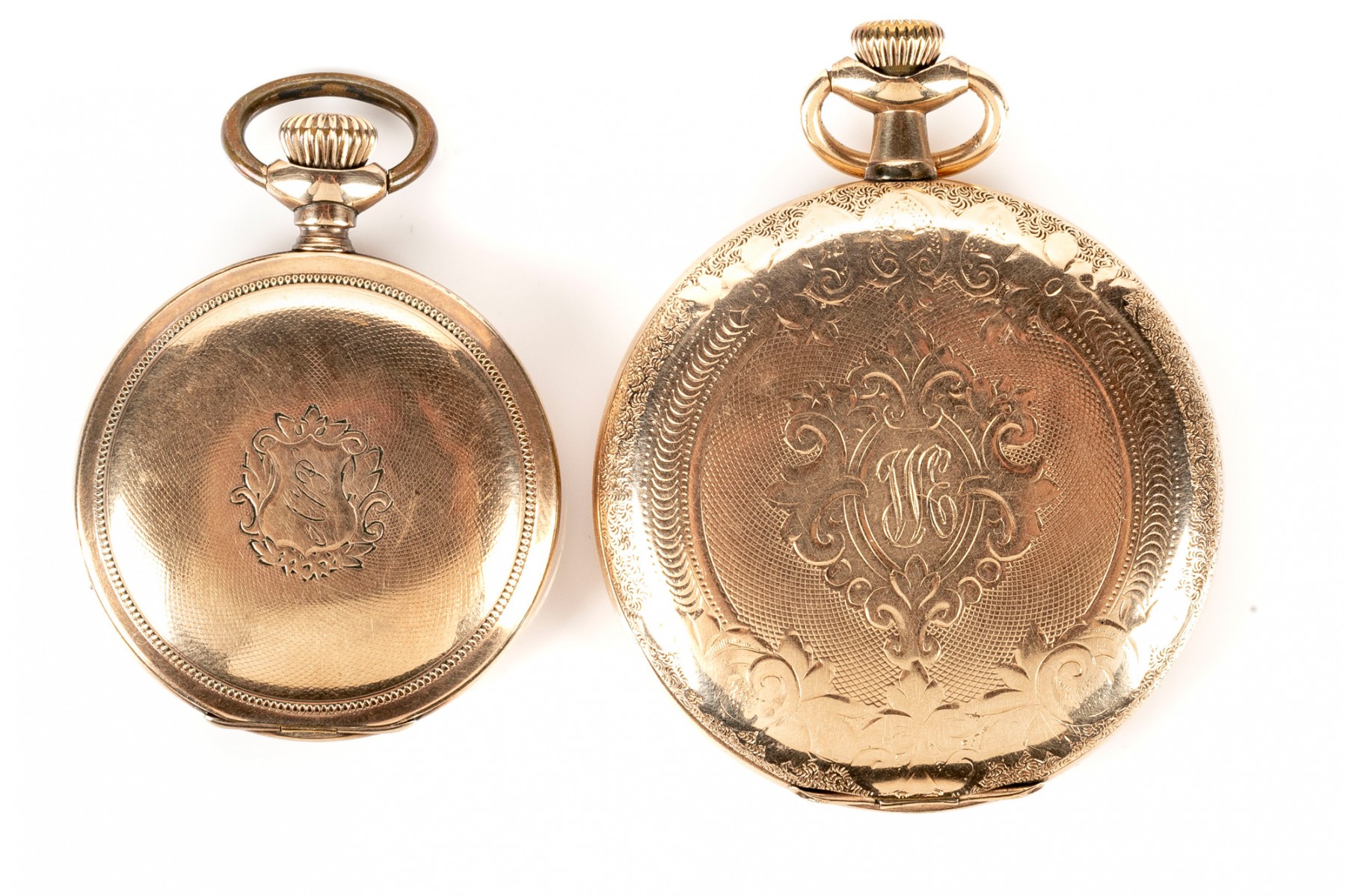 Lot of two vintage gold filled hunter pocketwatches, including Waltham