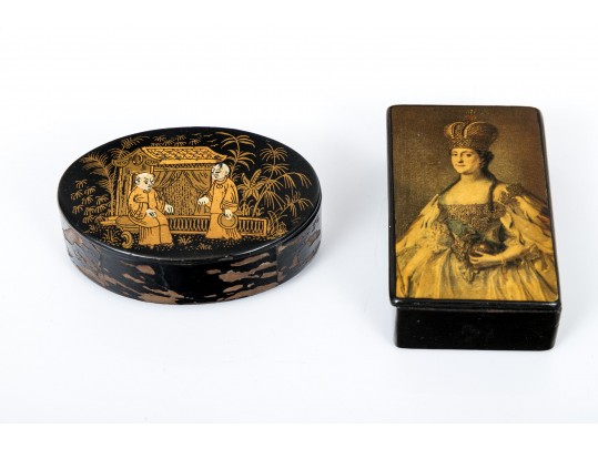 Lot Of Two Vintage Laquer Boxes, One Asian Motif And One With Regalia Motifs #265549. Black Rock Galleries provides high end estate liquidation services through online estate auctions and a 50,000 sq ft designer showroom. estate liquidator, estate sale, online auction, antiques, fine art, liquidation, clean outs, auction, consignment, interior design, fine jewelry, collectibles, appraisals, estate appraisals, estate services, decor, furniture, furniture consignment, antique center, consignment shop. We offer appraisal services and specialize in fine art, jewelry, antiques and decorative arts. Sell with us. Black Rock Galleries is the tri-state's largest estate liquidator serving New England and the greater New York City area. We are the trusted source for expert appraisals, auction services, estate sales, and consignments. Black Rock Galleries is the east coast's largest and most trusted estate liquidator, with locations in Connecticut, greater Boston, MA and Raleigh, NC, Fairfield, Southport, Apex, TX. We are the best source for expert appraisals, auction services, estate sales and consignments. We have served thousands of families and estates with compassion, professionalism and expertise. BRG works with attorneys, executors, realtors and families to bring the greatest return on personal and estate property in the current market. Our unique combination of services make us the easy choice to get the job done in a timely and stress-free manner. We are with you from the initial consultation to the final clean out. Our house-built online auction software platform offers clients a dynamic approach to liquidating their personal property. This venue is most successful in bringing the best return with the least amount of disruption for our clients. See our services page for a complete description of this offering. Lot Of Two Vintage Laquer Boxes, One Asian Motif And One With Regalia Motifs #265549
