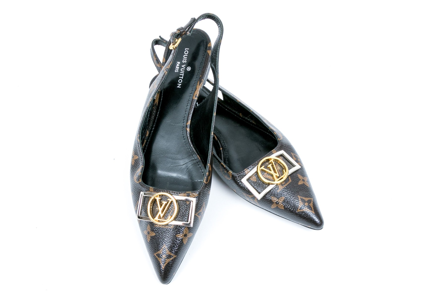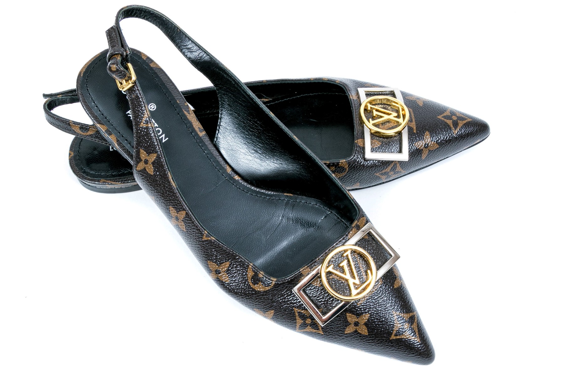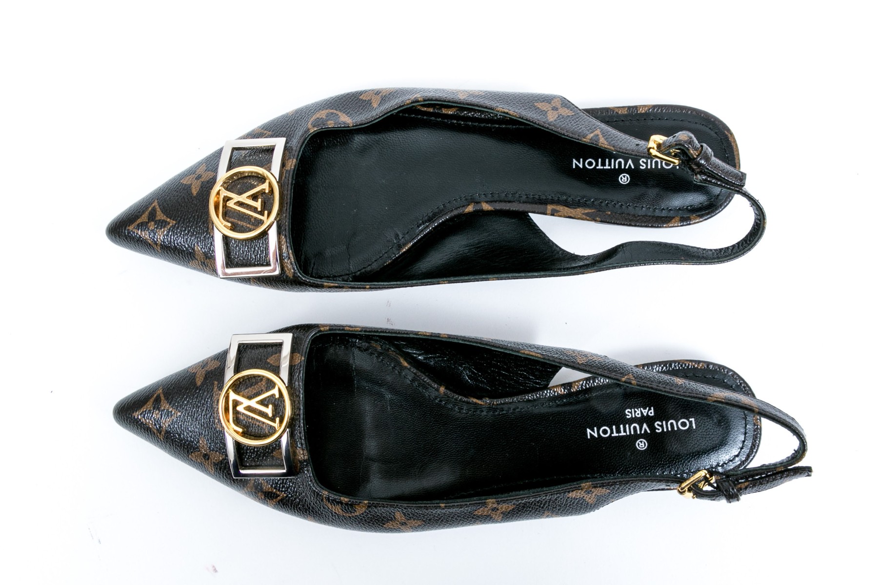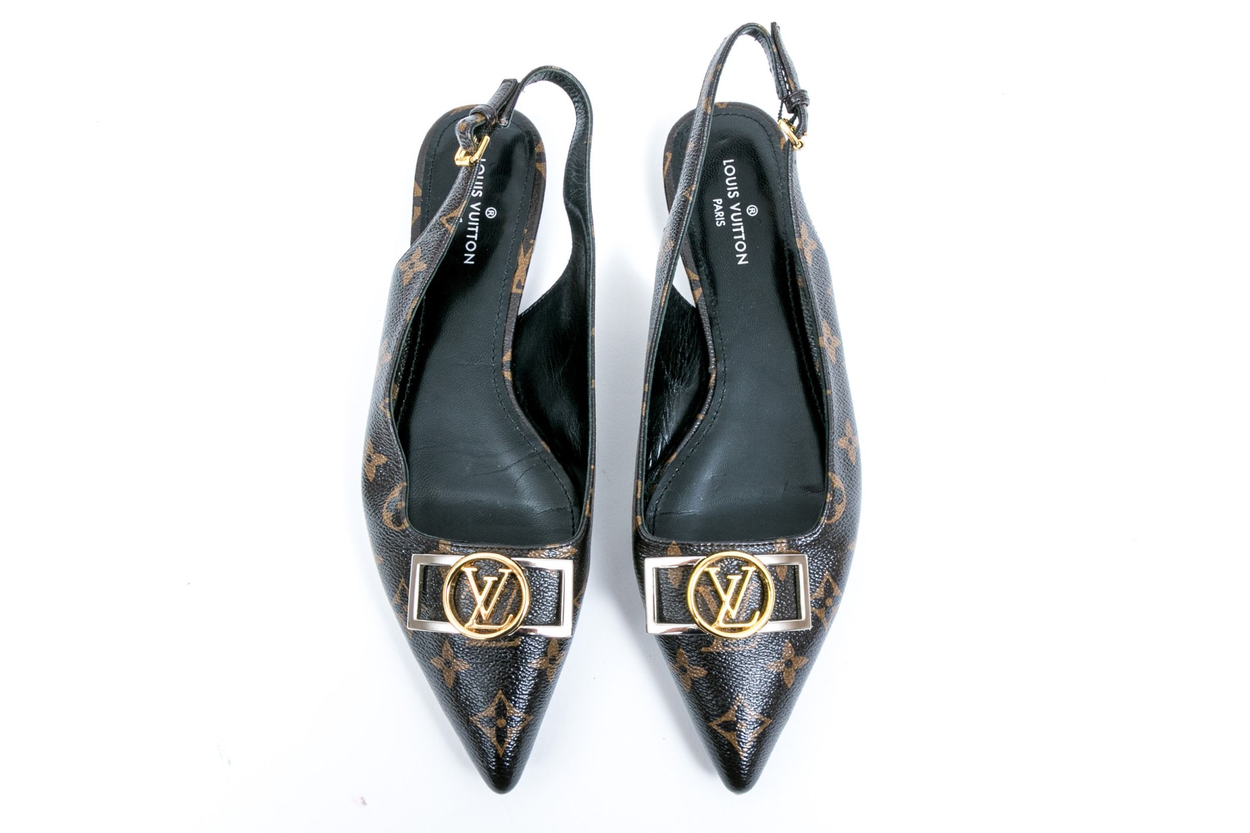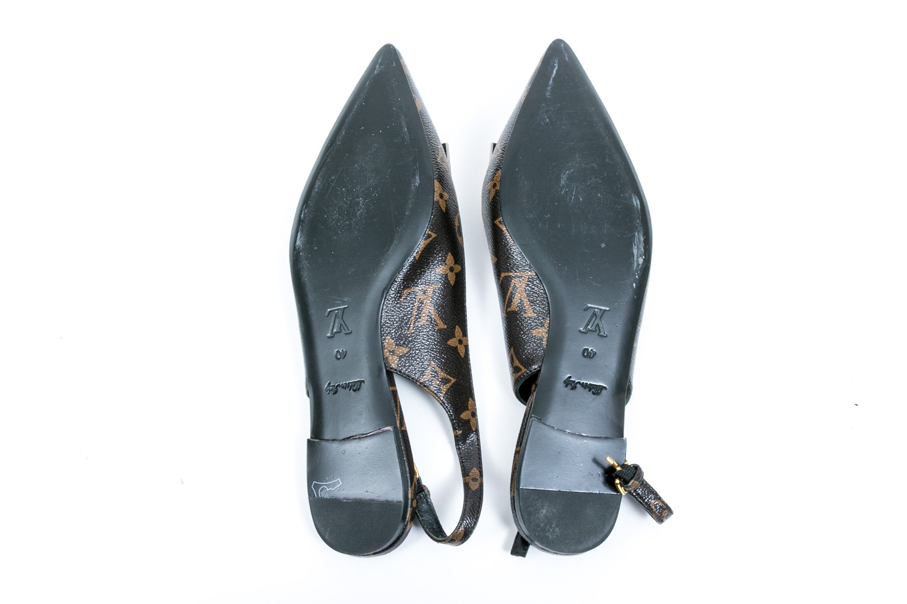 Louis Vuitton adorable flat logo slingback mules, size 40