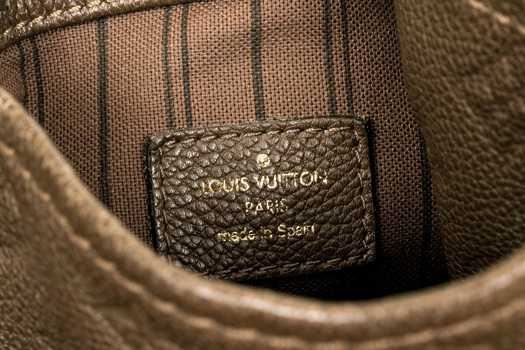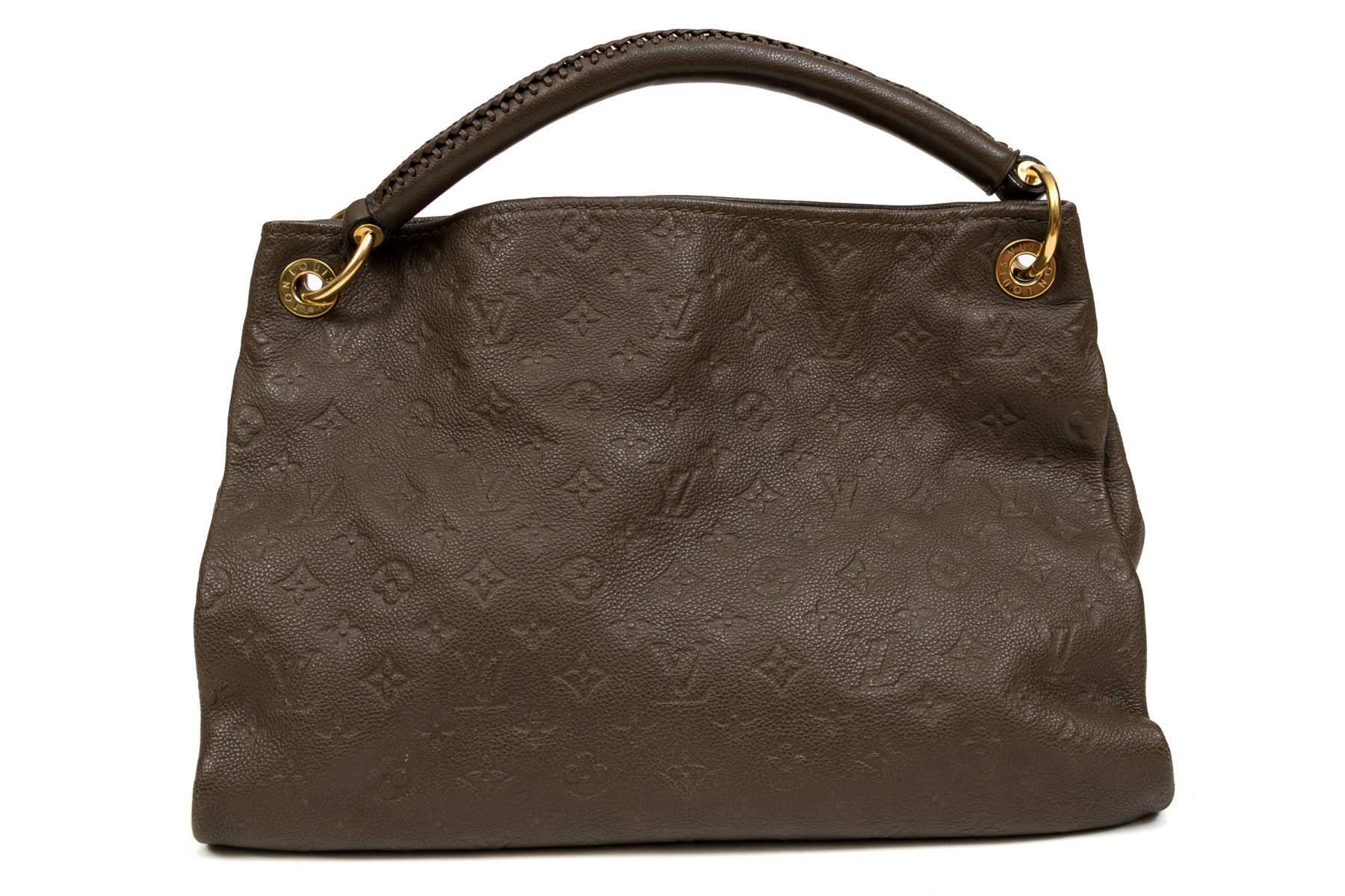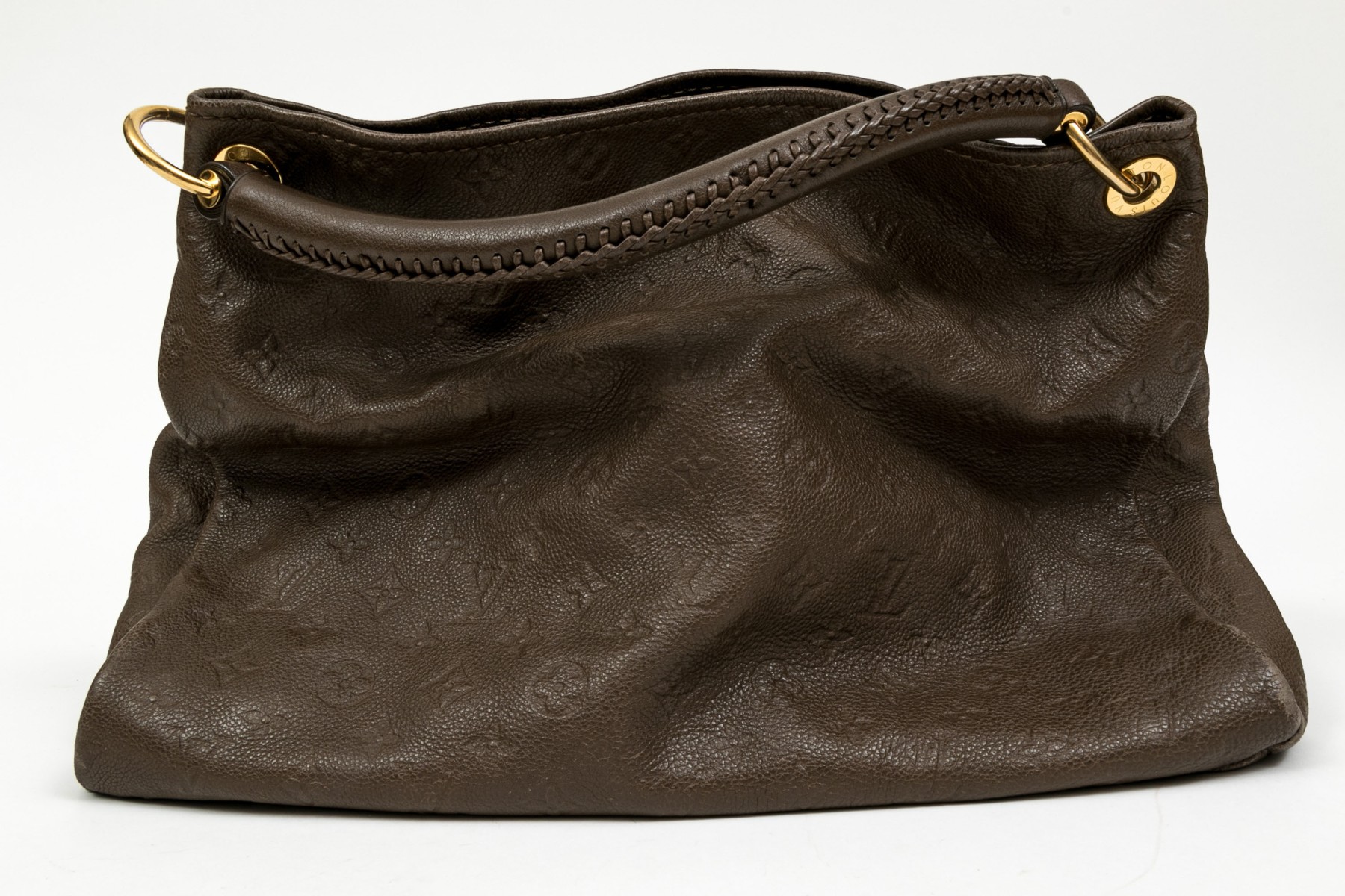 Louis Vuitton beautiful brown taupe embossed leather hobo bag, with rolled, stitched handle and canvas lining