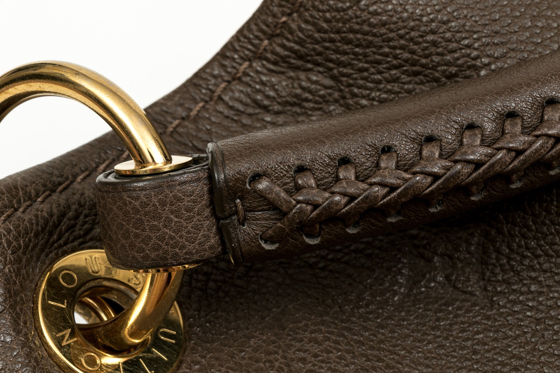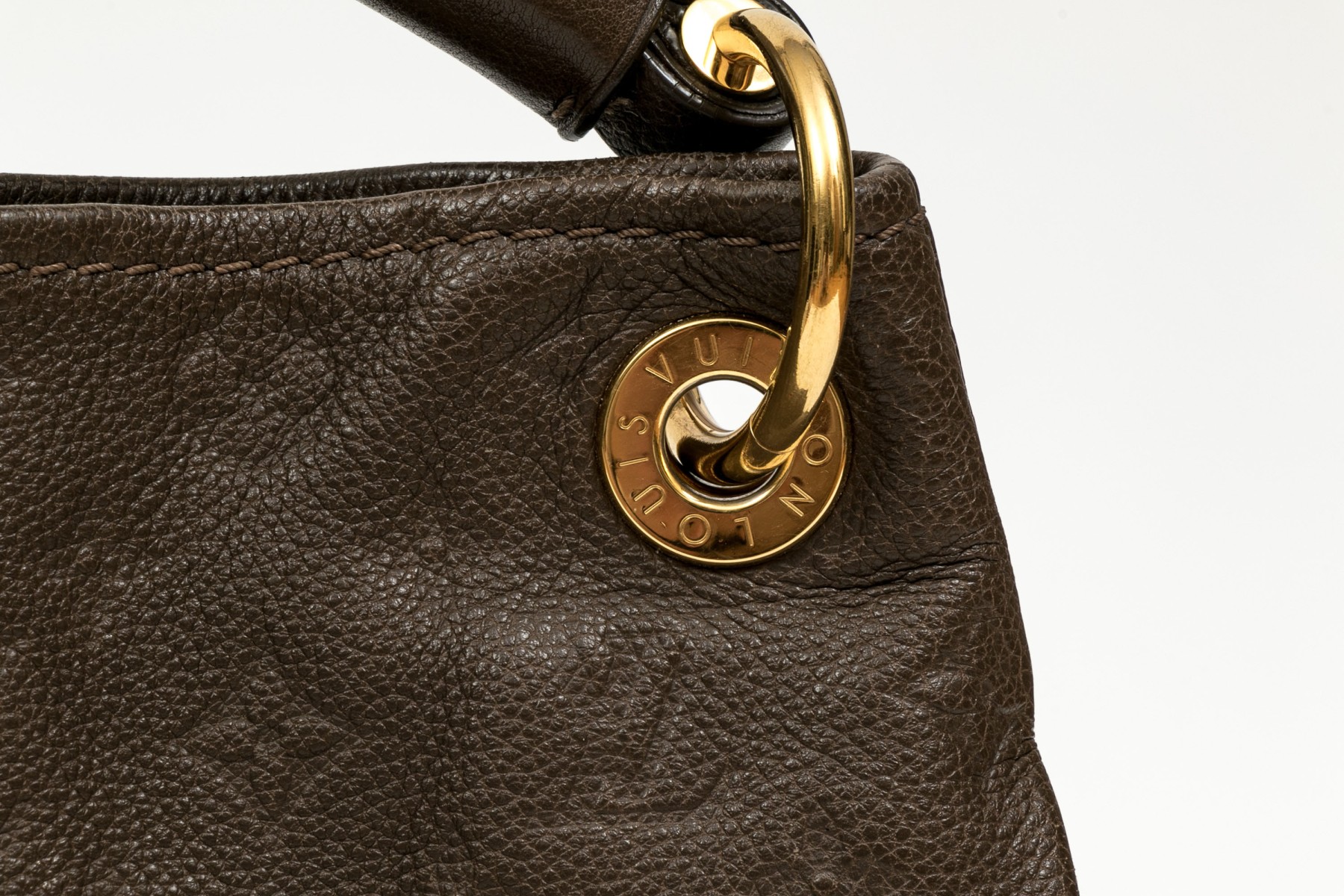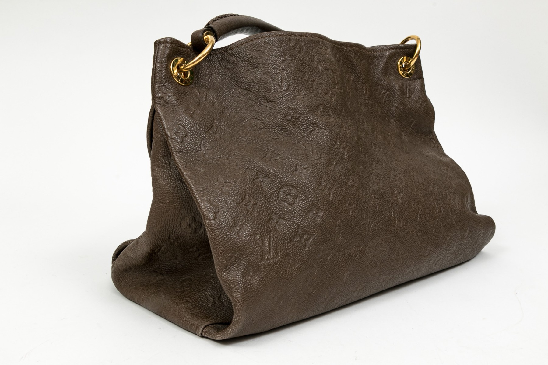 Louis Vuitton beautiful brown taupe embossed leather hobo bag, with rolled, stitched handle and canvas lining