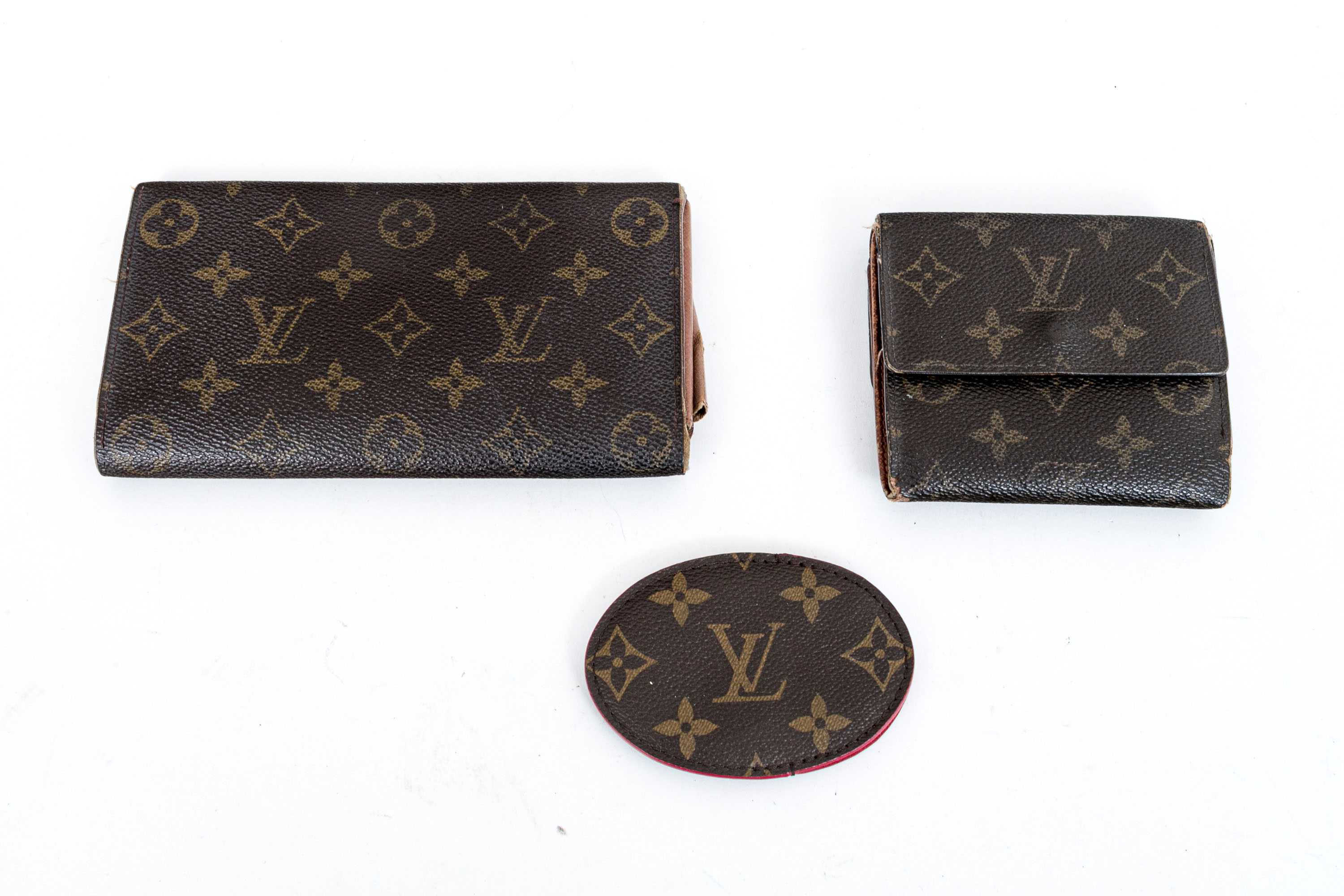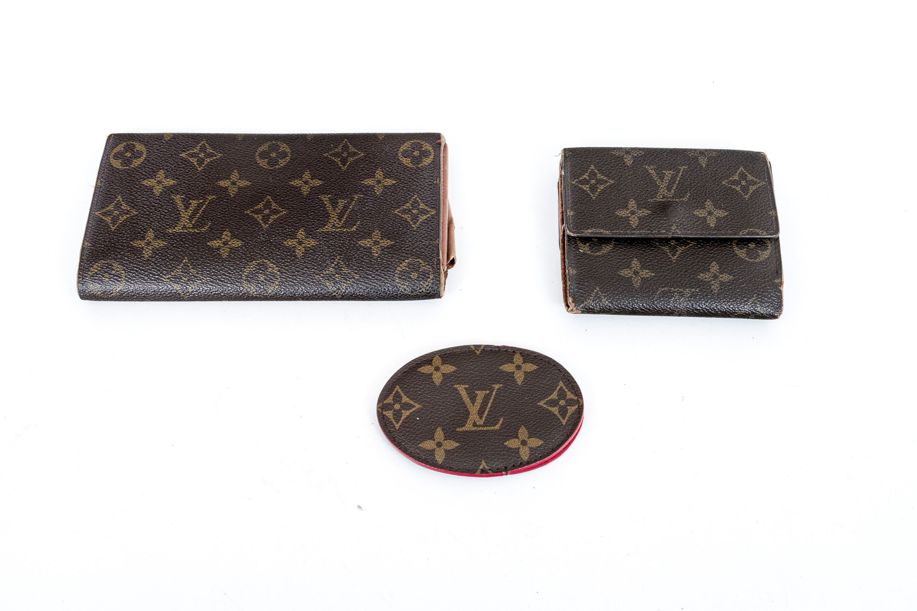 Louis Vuitton brown monogram lot of as is small leather goods, see conditions and photography