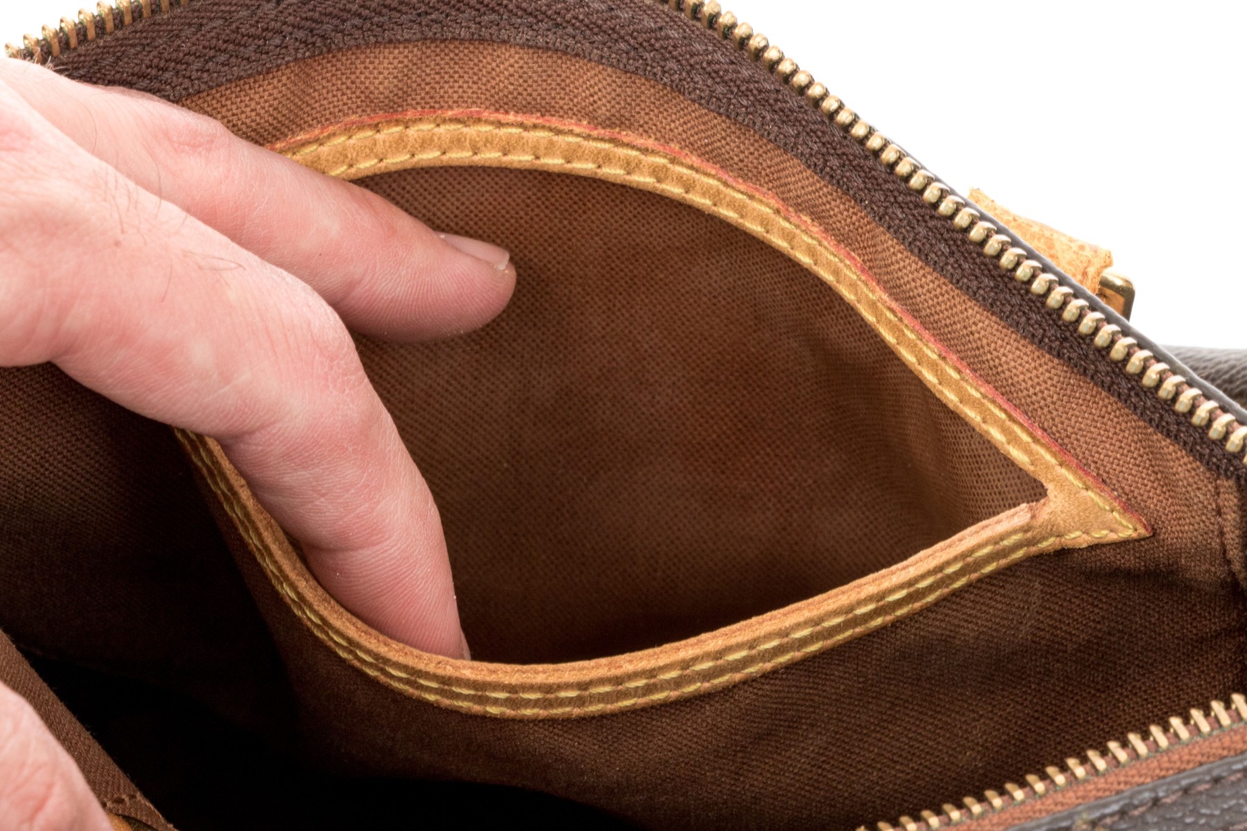 Condition: Stained, worn, interior pocket is decomposing; some surface scratches and wear. Please refer to photography for additional conditions information