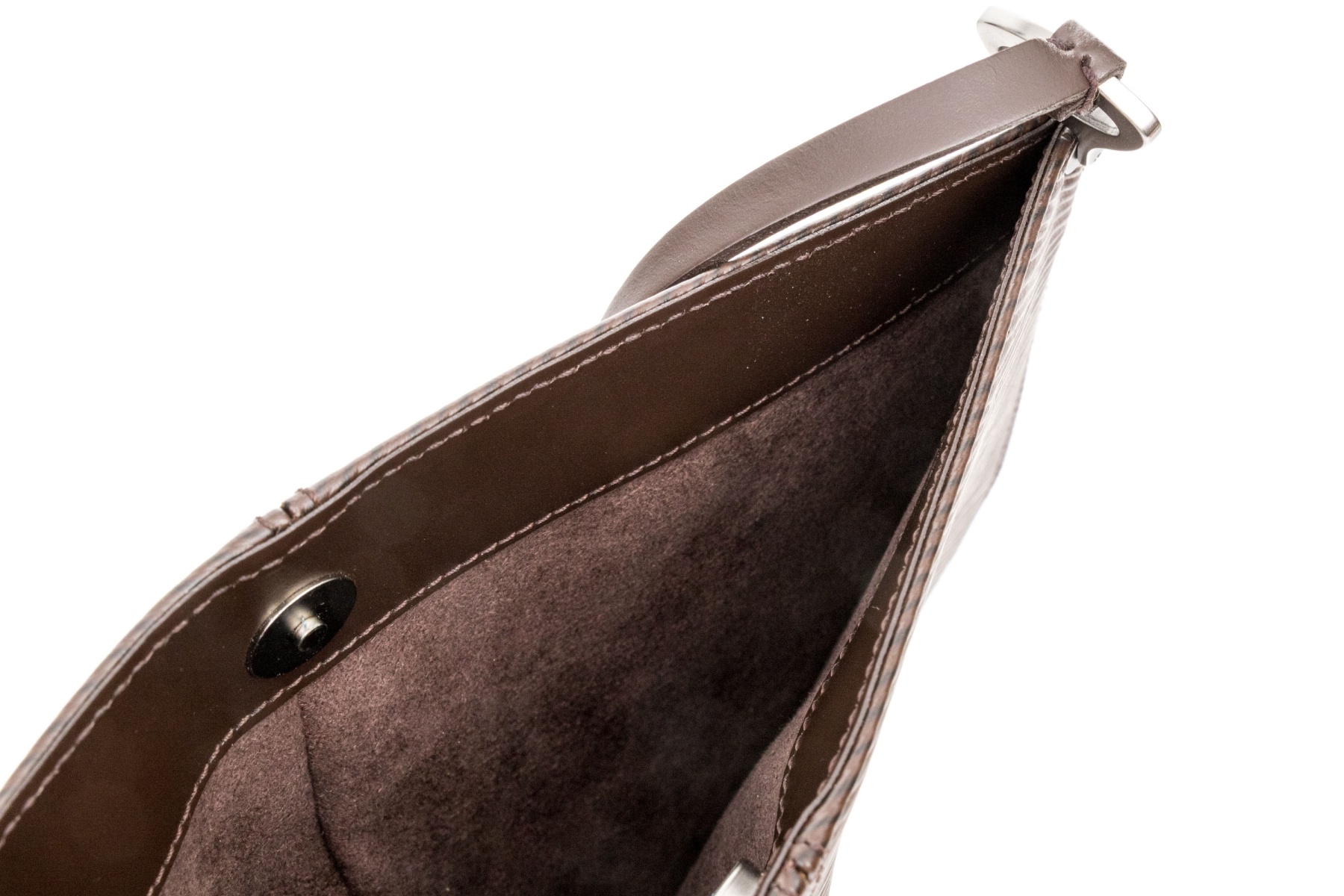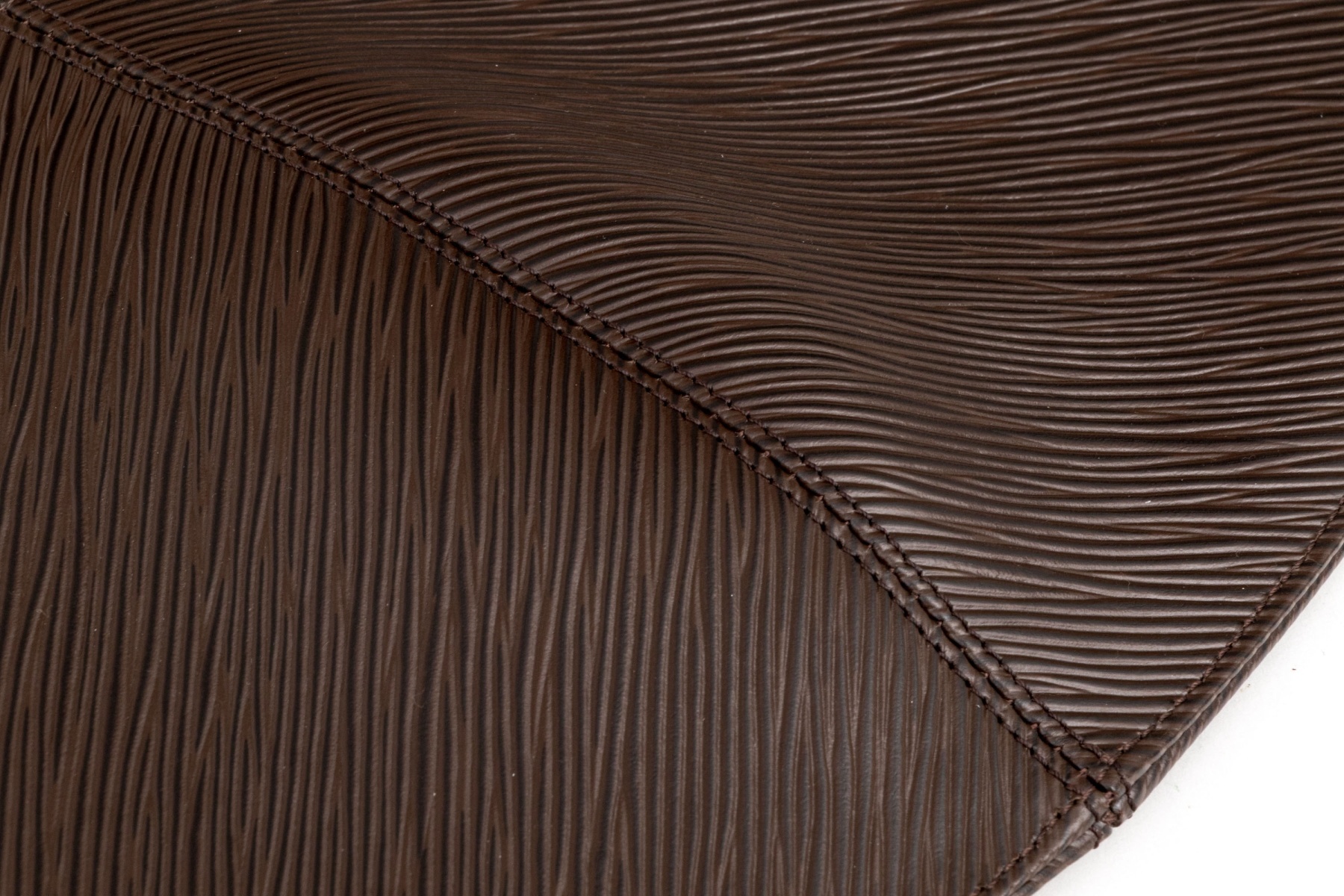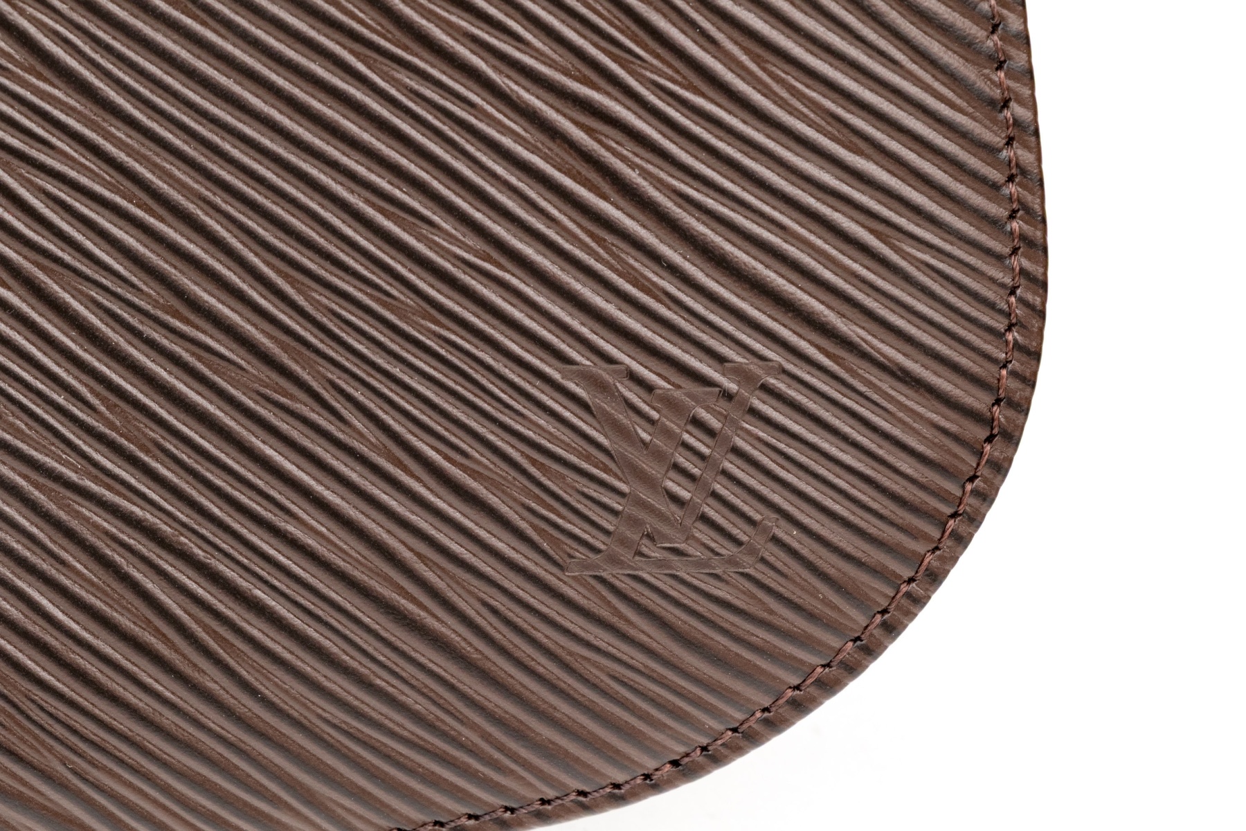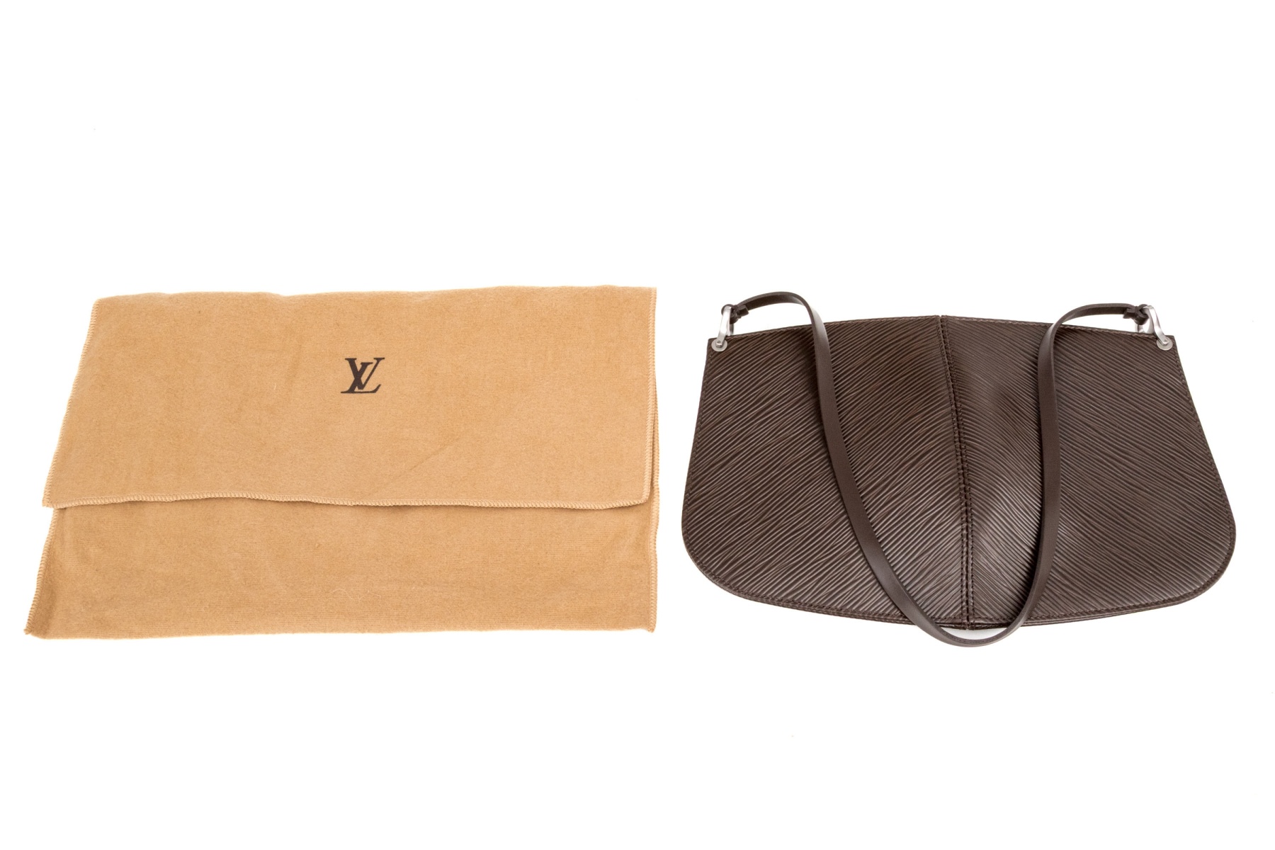 This great top handle bag by Louis Vuitton has a shallow, demi-lune profile, in dark brown epi style leather, decorated with a vertical center seam and finished with white hardware. With dust bag.