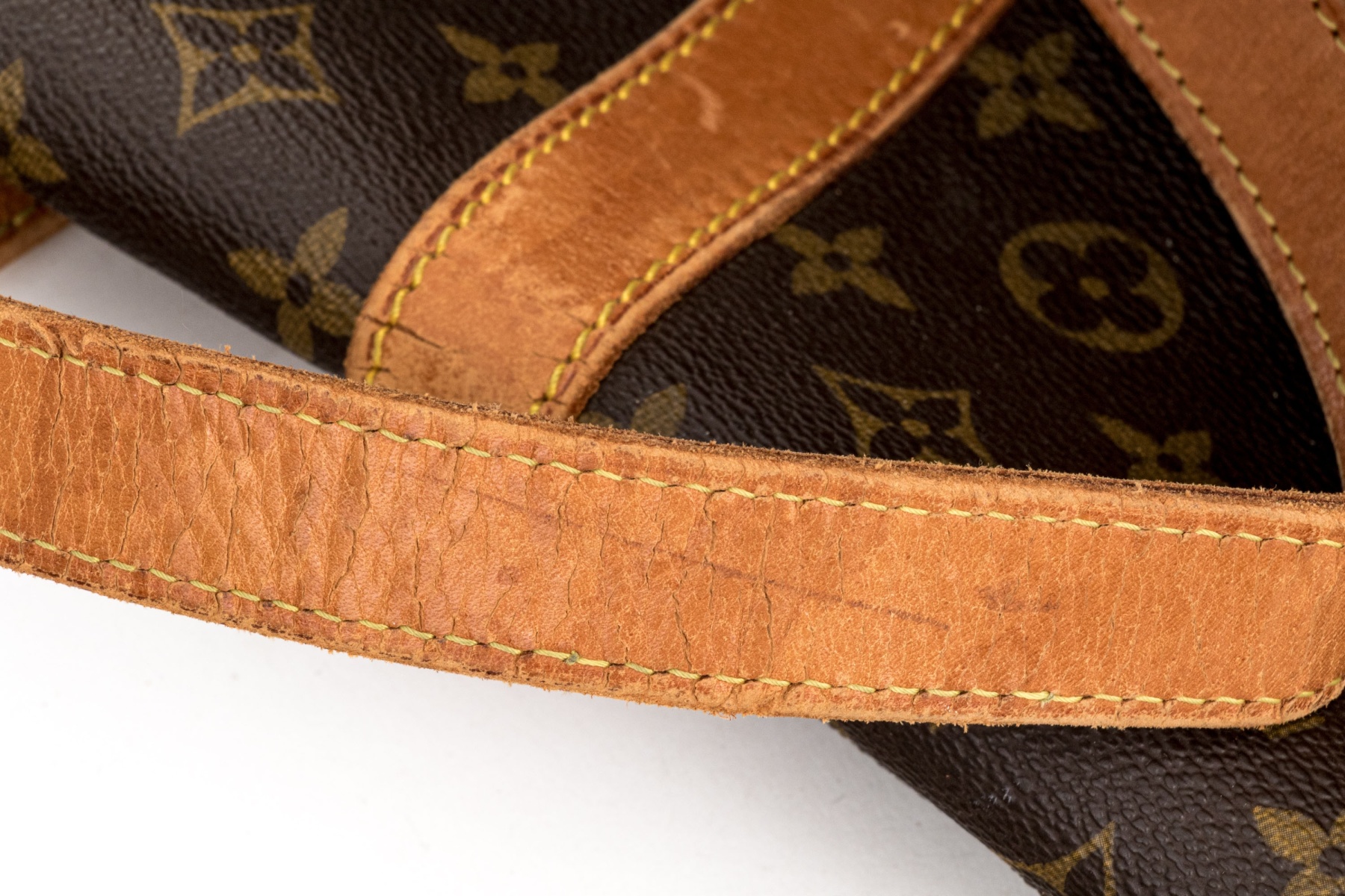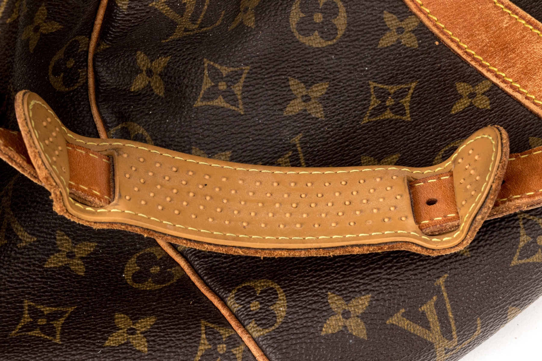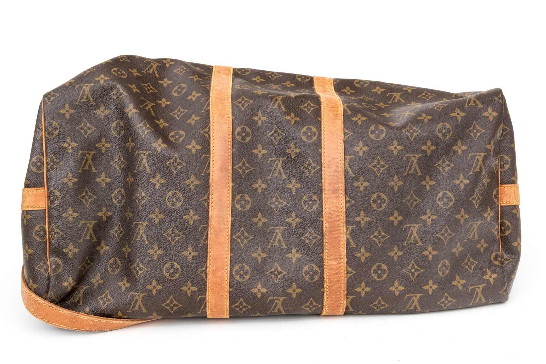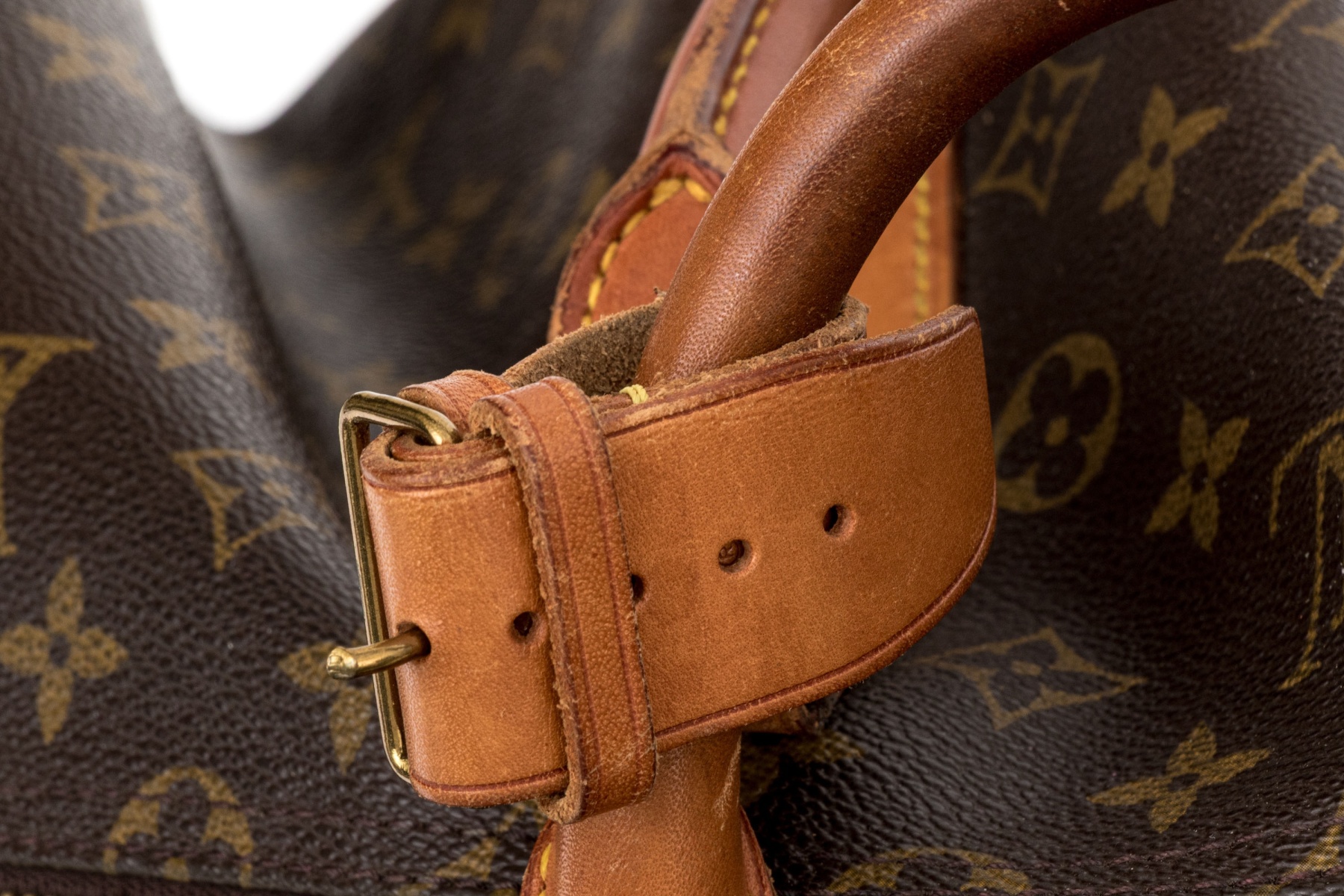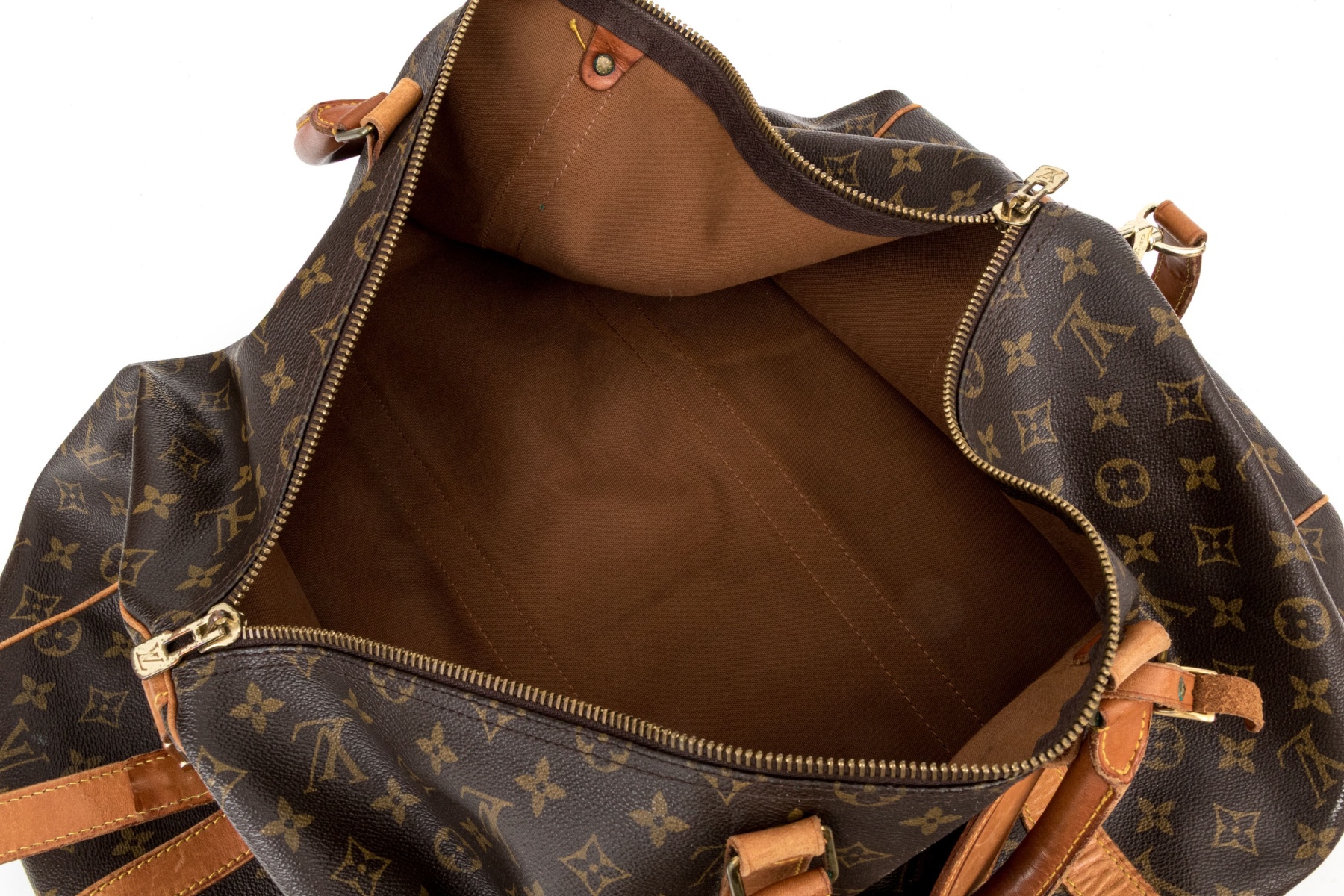 Louis Vuitton striking vintage brown monogram leather and canvas "Keepall 50", circa 1989. With lock, two keys and a luggage tag.