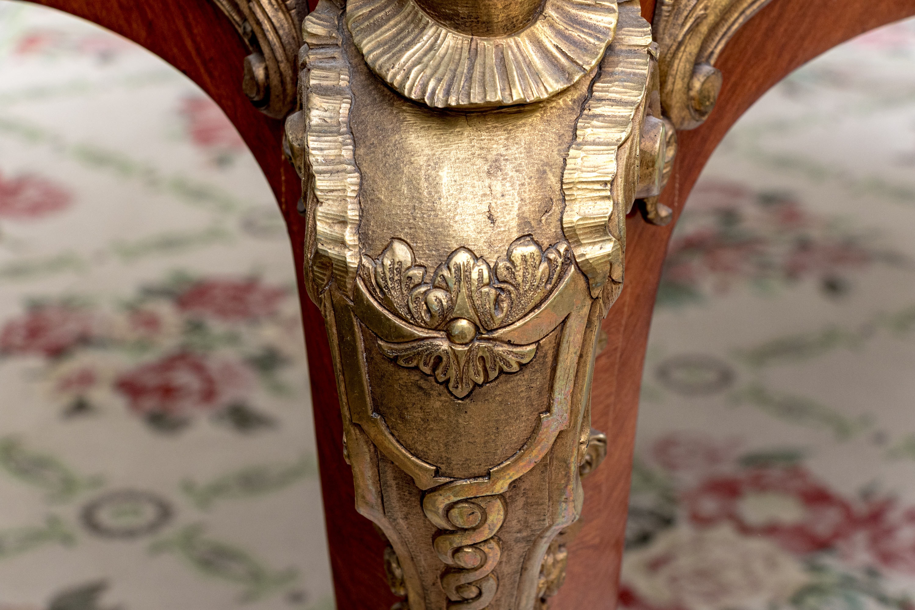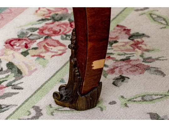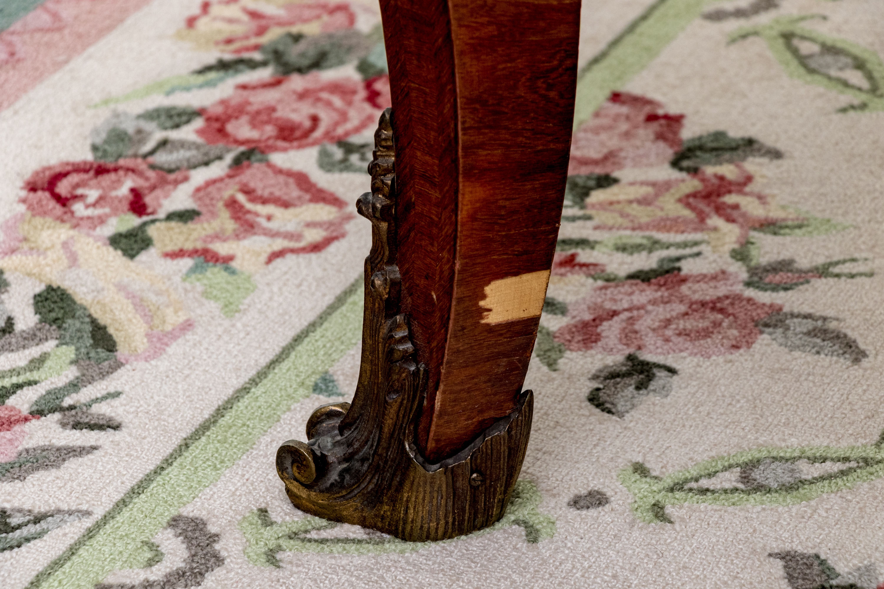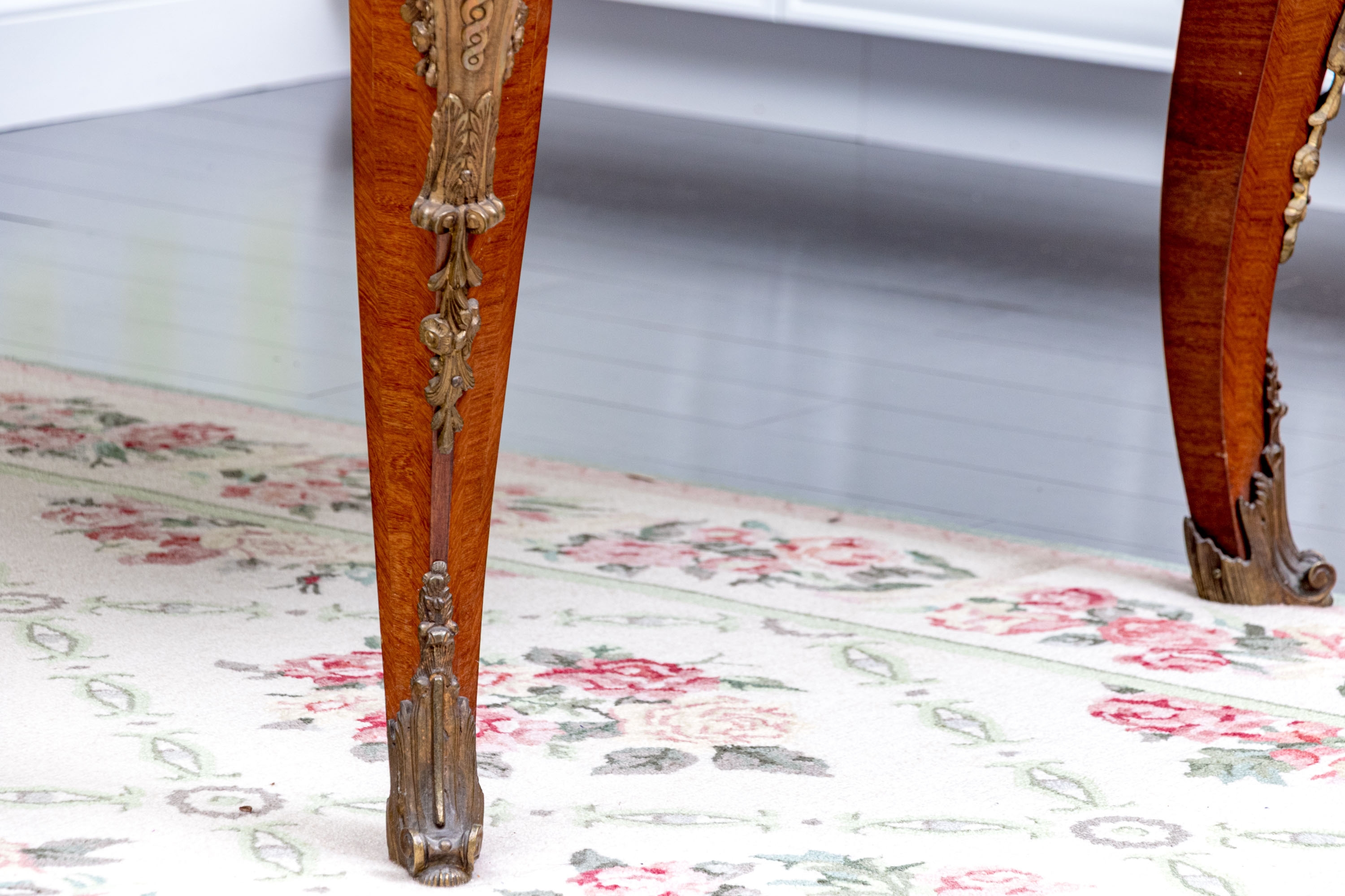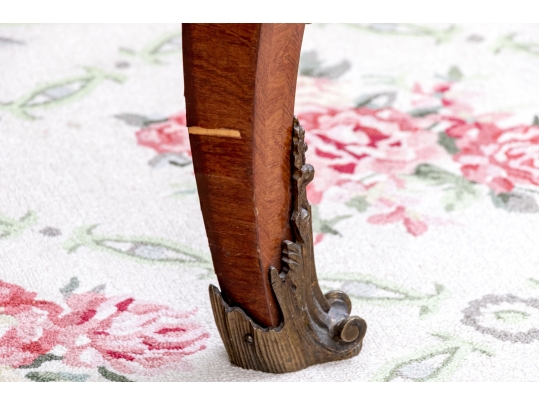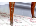 Condition: sporadic losses to the veneer especially at the legs, light ring mark on leather, wear and light scratches along the surround bordering the leather. Please see detail photos for condition.