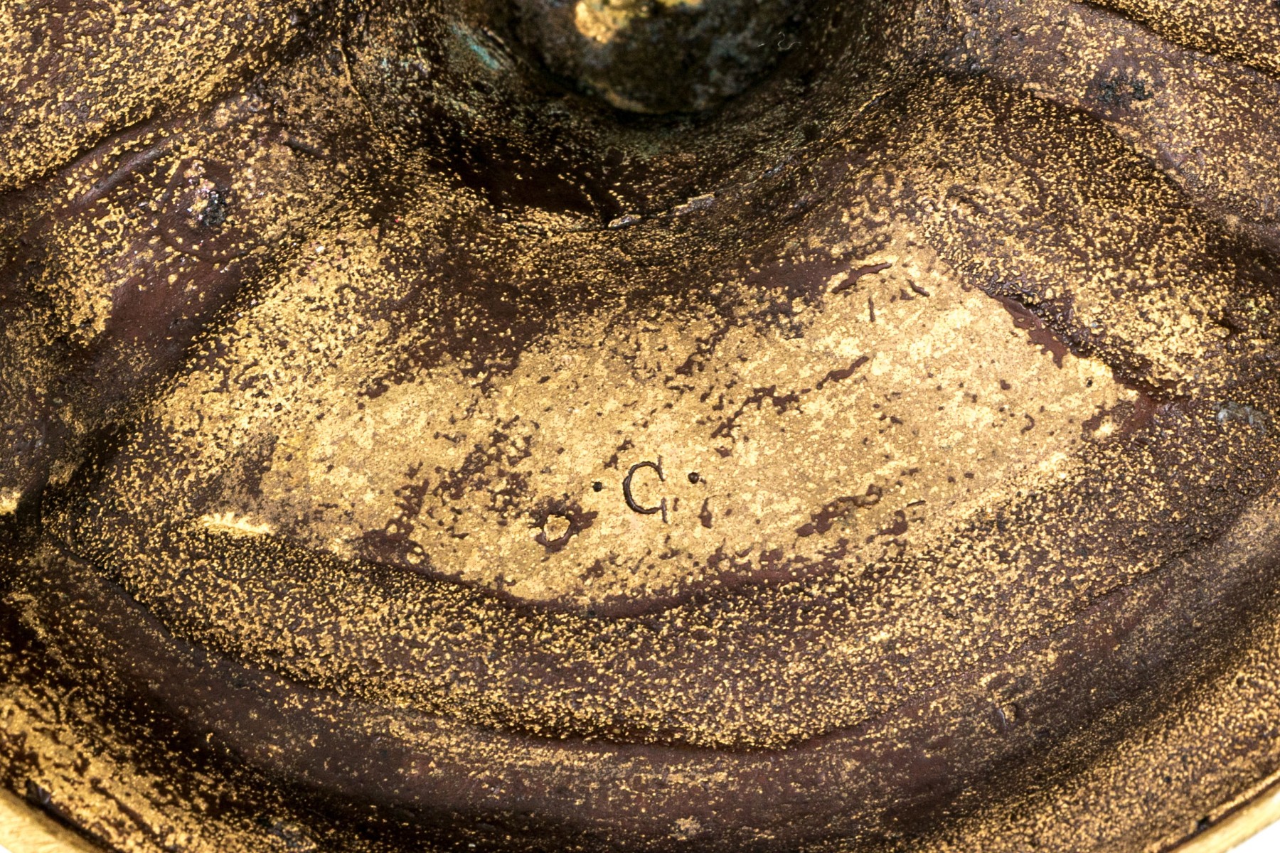 Wear to the gilding with minor oxidation and wax residue commensurate with age and use. Overall presents very well.