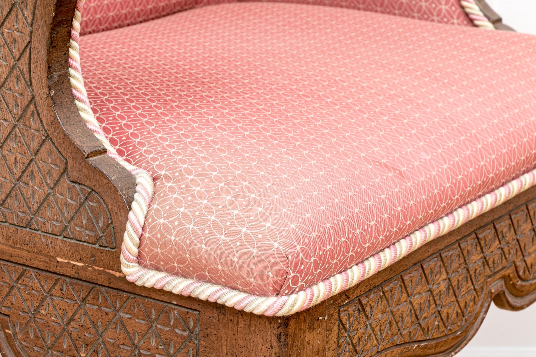 Condition: Wear commensurate with age and use with some nicks on frame. Upholstery is in good condition free of staining.