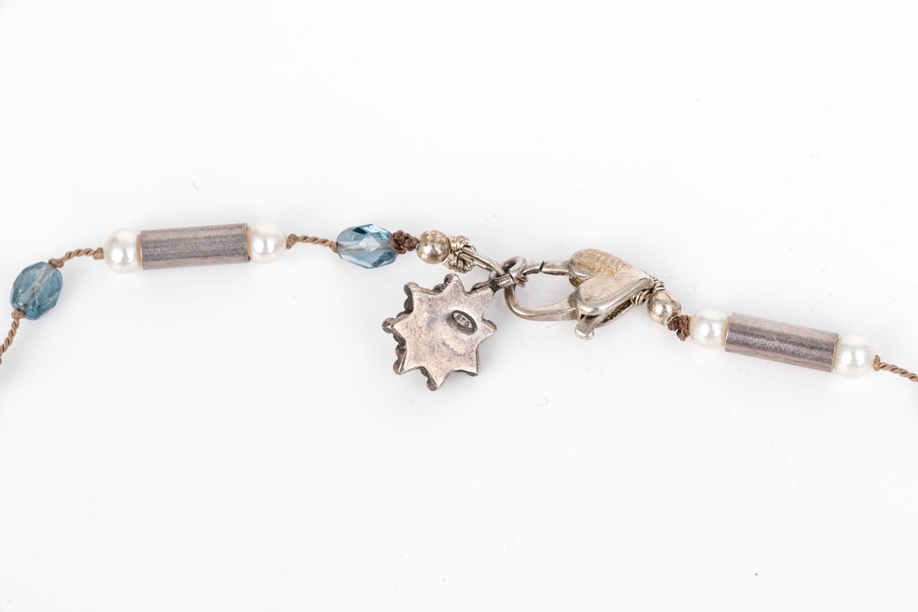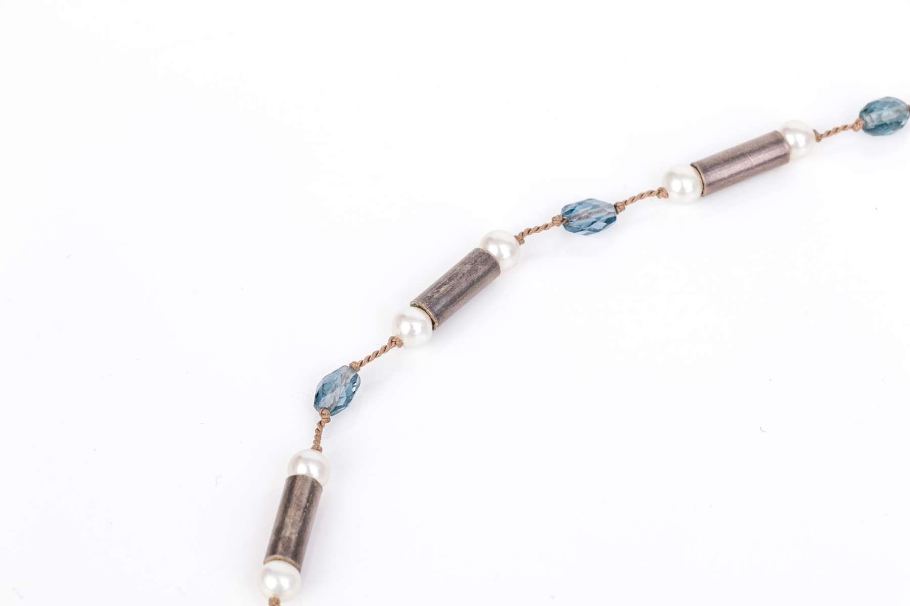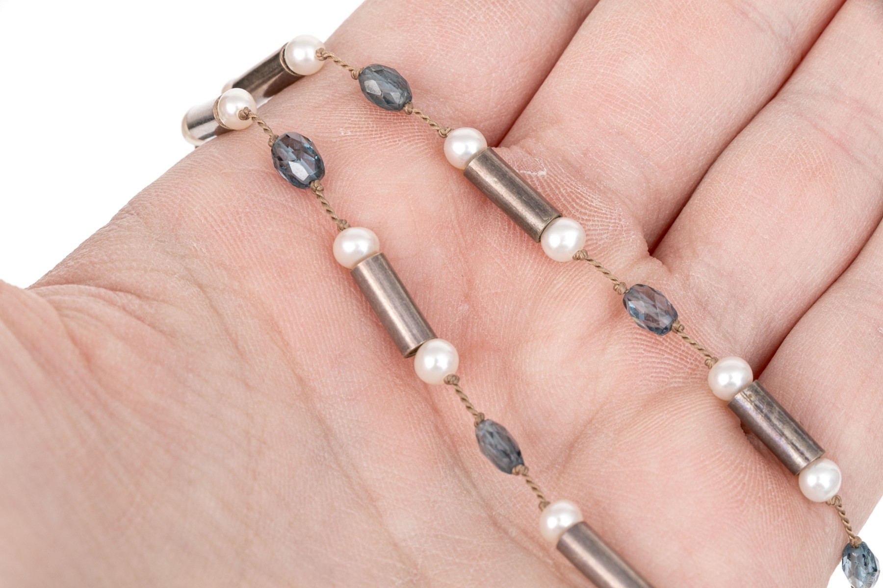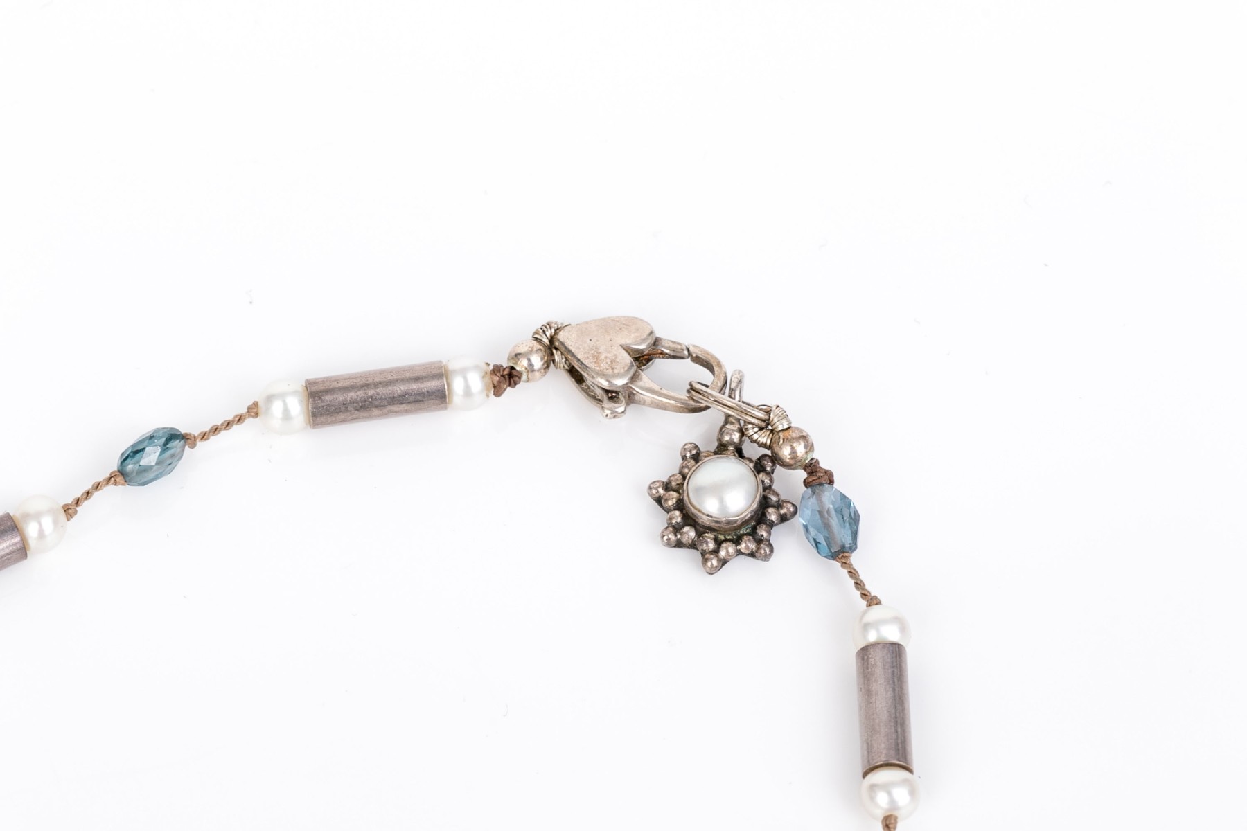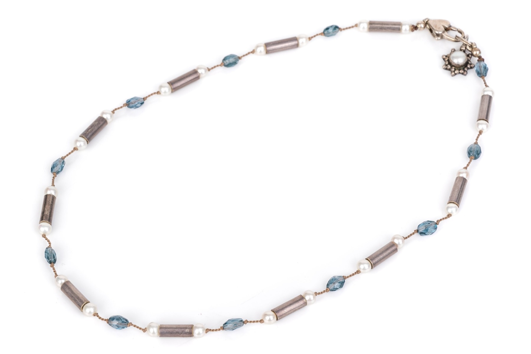 Lovely fluorite bead and cultured pearl necklace, sterling clasp, finished with a lobster claw style clasp