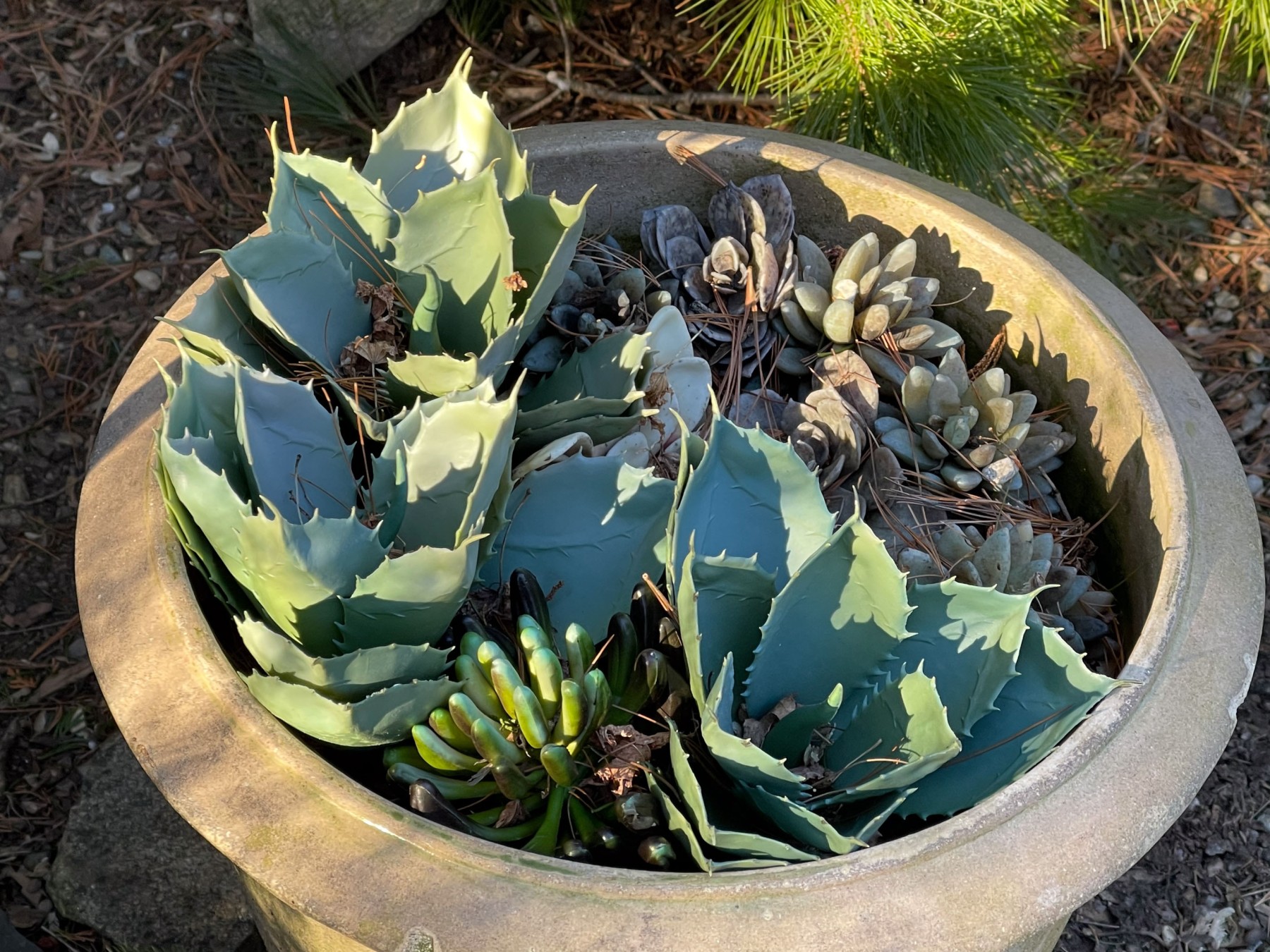 Condition: Wear including fractures and other wear related to outdoor use and display. Despite wear they are structurally stable and the pair presents well overall.