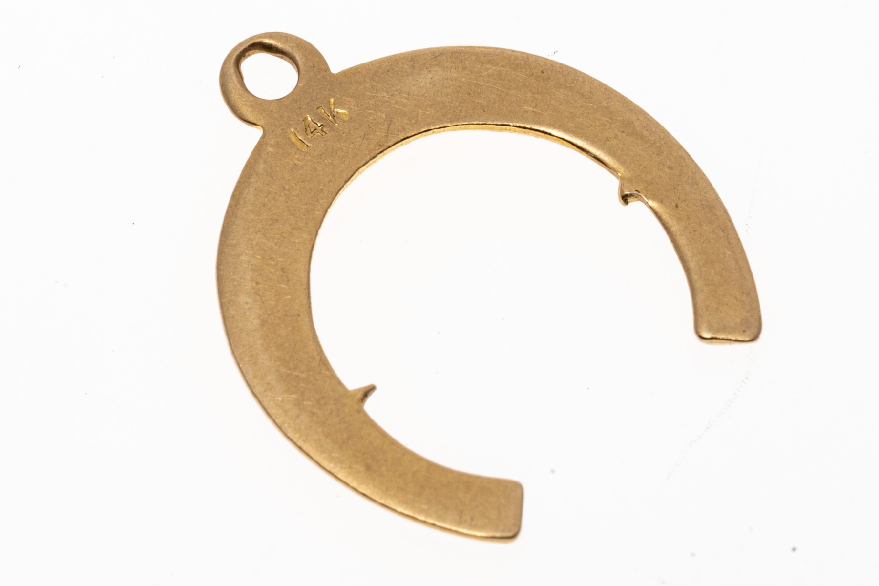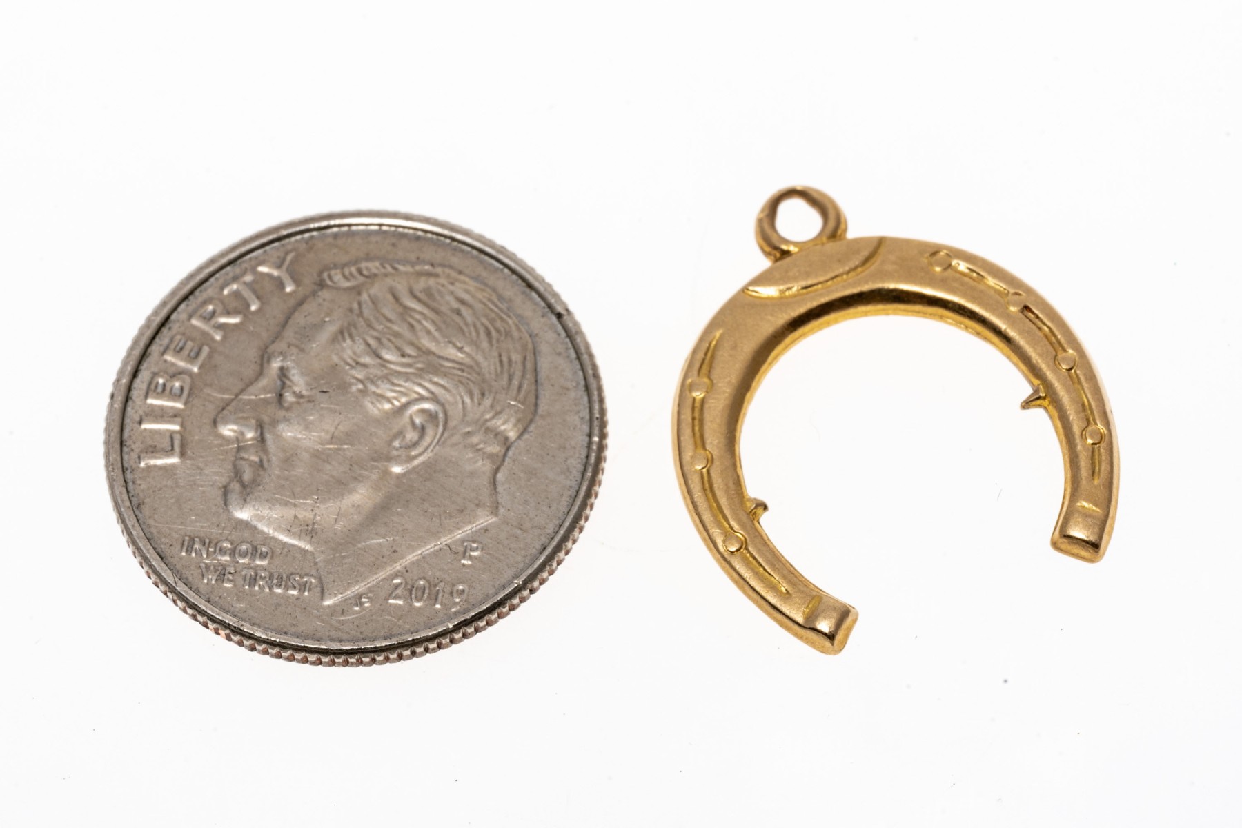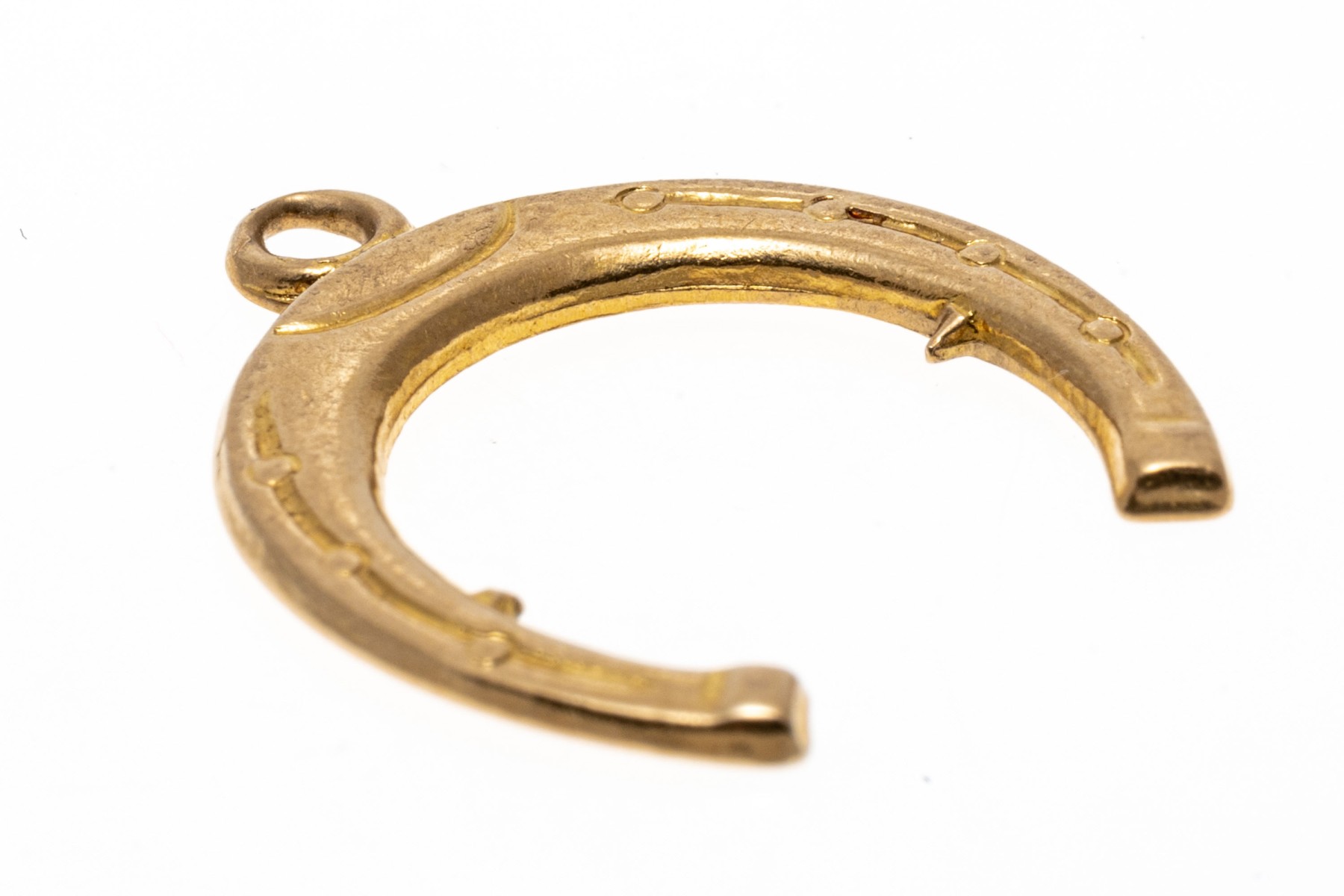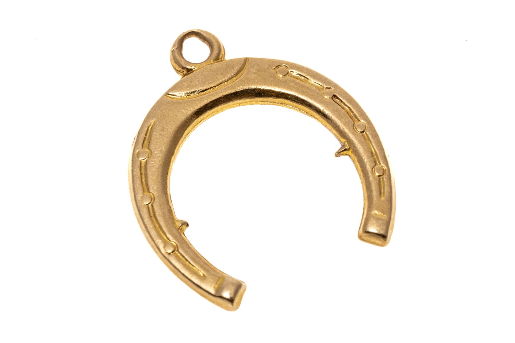 A yellow gold lucky horseshoe pendant or charm with a nicely polished finish.