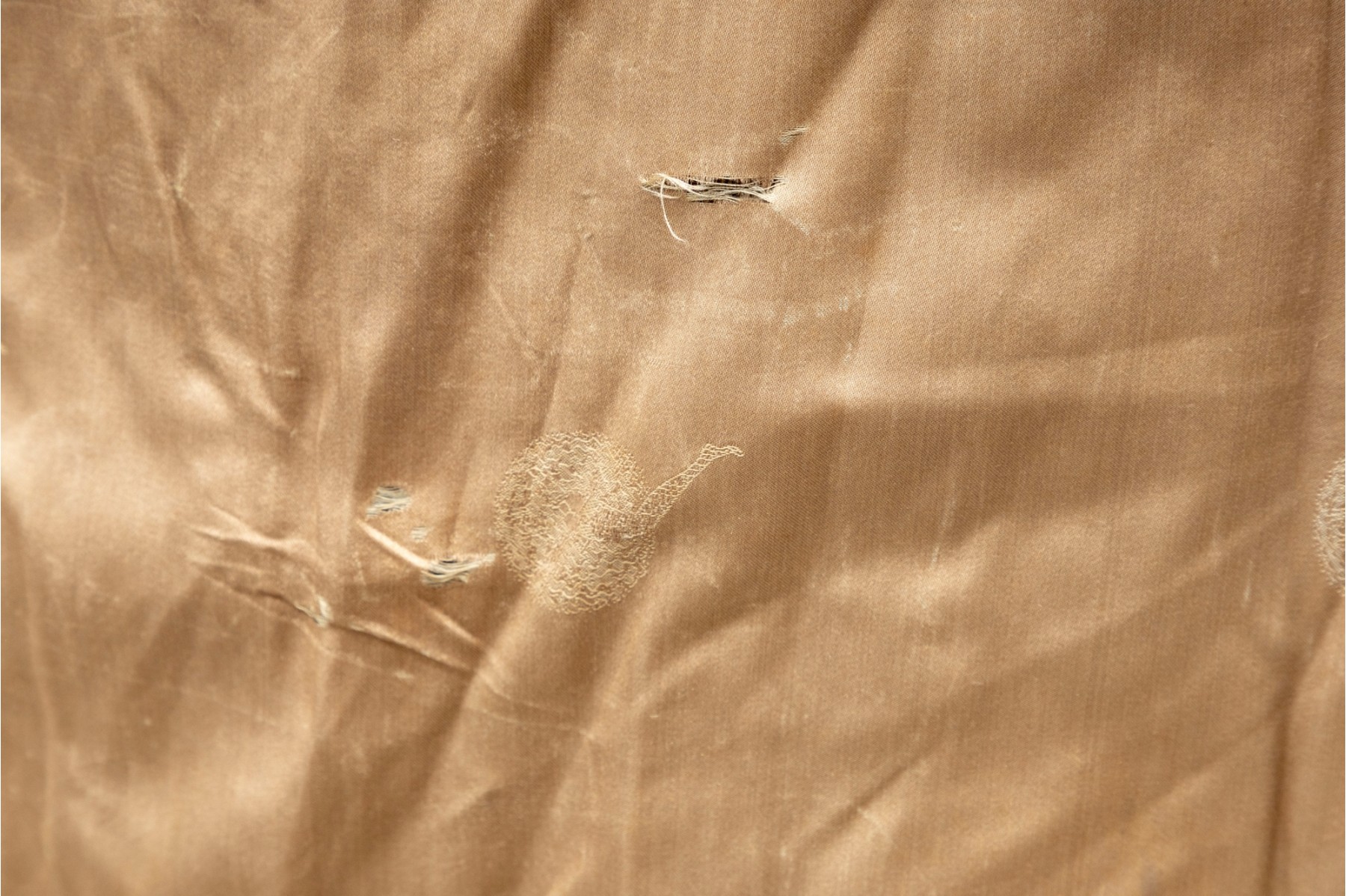 The liner is damaged with tears and holes, but the exterior is excellent.